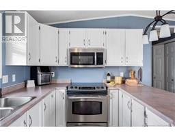 NEW ROOF // NEW SIDING // MINI SPLIT // PRIVATE FENCED BACKYARD .Welcome to 1 Ascona Street, Moncton. Located in the sought-after Pine Tree mini home park! This well-maintained 2-bedroom, 1-bathroom home has undergone some significant updates, including new siding and a roof in summer 2024. Step inside to discover a spacious, renovated kitchen and dining area, perfect for family meals and entertaining. The open-concept layout continues into the generously sized living room, creating a bright and welcoming atmosphere. Both bedrooms offer ample space, and the 5-piece bathroom includes dual sinks and a tub/shower combo for added convenience. Outside, enjoy a fenced and private backyard, ideal for kids, pets, or simply relaxing in your own space. Additional features include a mini-split heat pump for efficient heating and cooling, a shed at the end of the driveway for extra storage, and a covered canopy area perfect for outdoor use year-round. This home is move-in ready and offers comfort, space, and value in a great location. Leased land fees are $475/month Schedule your private showing today! (id:19018)