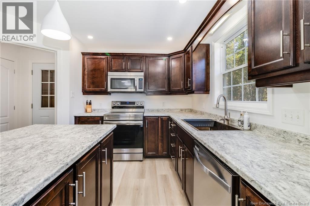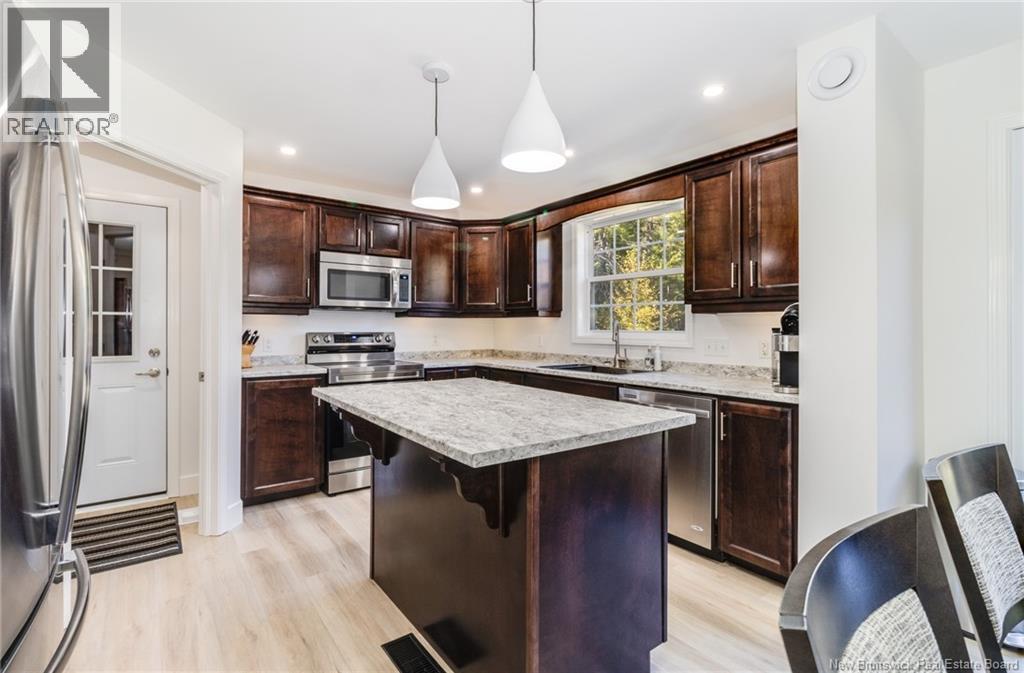 Welcome to 10 Riley Lane, a tucked-away gem in Lincoln offering privacy, space, and a fresh modern vibe while being only 15 minutes away from Oromocto and Fredericton. Step inside to a bright entry with a convenient coat closet that sets the tone for this thoughtfully designed home. The main living space flows effortlessly from the inviting living room to the dining area, and into a sleek kitchen featuring rich dark wood cabinets, an island with seating overhang, and plenty of prep space, perfect for gatherings and everyday living. The primary bedroom is a true retreat, complete with a private ensuite, while two additional bedrooms and a full main bath round out this level. Just off the kitchen, a mudroom area connects directly to the attached garage, ideal for keeping things organized in every season. Downstairs, youll find an additional bedroom (window not egress) and a generous unfinished area ready to be transformed into whatever you need, a rec room, gym, workshop, or storage. Set on a private lot with a peaceful setting, this home strikes the perfect balance between comfort and style. A wonderful opportunity to make it your own. (id:19018)