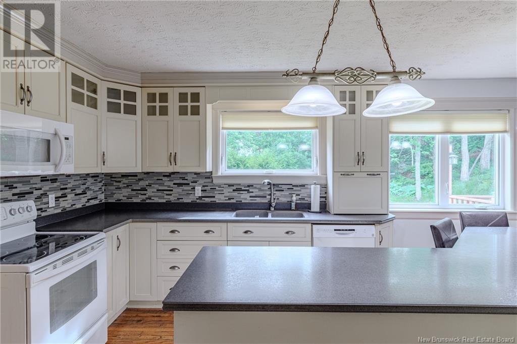 Welcome to 1001 Archer Drive a large and stunning 2-storey home with two-level double garages, nestled on over half an acre of private, treed property with captivating river views and deeded beach rights. This 4-bedroom, 3.5-bathroom residence offers the perfect blend of space, privacy, and modern living in one of Quispamsis most desirable neighbourhoods. Step inside to discover a bright, spacious layout designed for both family living and entertaining. The heart of the home is the expansive, contemporary kitchen featuring a center island, ample cabinetry, and abundant natural lightopen to a large family room with an electric fireplace and built-ins. Youll also find a separate living room and formal dining room for added versatility. Upstairs, four generously sized bedrooms await, including a serene primary suite with its own ensuite and an access door for a future balcony overlooking the river. The finished lower level adds even more living space with a family room, a 5-piece bathroom, and plenty of storage. Outside, relax on the double back decks or enjoy your morning coffee on the cozy front veranda, surrounded by the peaceful, tree-lined setting. With new roof shingles, a spacious yard for gardening, and deeded access to the beach just steps away, this home combines comfort, privacy, and lifestyle. Move-in ready and available for quick closingperfect for enjoying summer on the river! (id:19018)