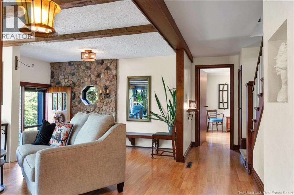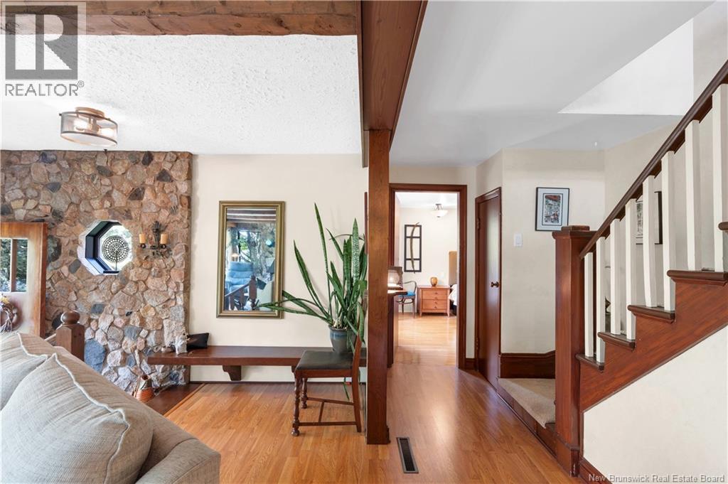 Truly one-of-a-kind, this extraordinary 2-storey home sits on 5.46 acres along the scenic Kouchibouguasis River in Saint-Louis-de-Kent, offering rare privacy while still within walking distance to all amenities. Extensively updated inside and out, the main floor features a spacious living room with stone accents and faux beams, plus a fully remodeled maple kitchen with custom cabinetry and dining area overlooking the incredible backyard oasis. A convenient 2-piece powder room and a primary bedroom complete the main level. Upstairs, youll find 3 generous bedrooms with ample storage and a beautifully upgraded 3-piece bath with heated floor and towel warmer. The mid-level basement includes a finished laundry, pantry, workshop, and utility room with geothermal heating/cooling and generator hookup. The lower level, fully renovated, offers a cozy family room and a large games room. Exterior highlights include a new roof, perennial gardens, stone walkways, outdoor fireplace, mature trees, pool area, and a spring-fed fountain with recirculating pump. Additional features include a double attached garage, Enercheck certification, and direct access to local walking trails. A property that seamlessly combines character, comfort, and natural beautythis isnt just a home, its a lifestyle! (id:19018)