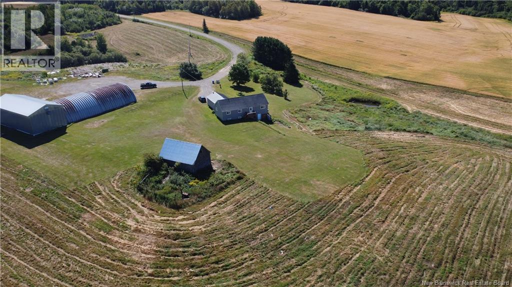 Tucked away at the end of a short gravel road, this private property offers 2.6 acres surrounded by picturesque farm fields just above the Meduxnekeag River. The main level features 3 bedrooms, a spacious kitchen, dining and living areas, plus a mudroom. Downstairs you'll find a family room, half bath, two bonus rooms (currently used as bedrooms; windows do not meet egress), and a large storage area with walkout access. Additional features include a 1.5-car garage, a smaller older barn, and two ductless heat pumps for year-round comfort. Note: The large adjacent barn is not included and is on a separate PID. (id:19018)