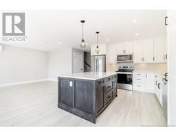 This brand new semi-detached two storey home is beautiful, offering exceptional space and smart design, perfect for todays family living. With over 2,000 sq. ft. of finished space, this home is almost double in size of nearby semis. Step inside to a large foyer with a coat closet and a convenient half bath, ideal for guests or quick family use. The main floor features a bright and open kitchen/dining/living room , complete with a ductless heat pump for year-round comfort. The kitchen is a standout with loads of custom cabinetry, under-cabinet lighting, quartz countertops, a pantry with pull-out drawers and brand-new stainless appliances. Theres plenty of space for a dining table and the patio doors lead to a deck, great for relaxing in the sun. Upstairs, youll find three generously sized bedrooms. The primary suite includes two walk-in closets and a private ensuite bath with a double vanity, custom tile corner shower, and a soaker tub, perfect for ending the day on a relaxing note. The laundry area is also upstairs, complete with overhead cabinets and a stainless sink for added convenience. A full main bath with a tub/shower combo serves the other bedrooms. The unfinished basement offers future potential, already roughed-in for a fourth bathroom and featuring a code-compliant window for a fourth bedroom, lots of room for a family room or rec area. Close to all Northside amenities including West Hills Golf Course. Landscaping and paved driveway INCLUDED in the price. (id:19018)