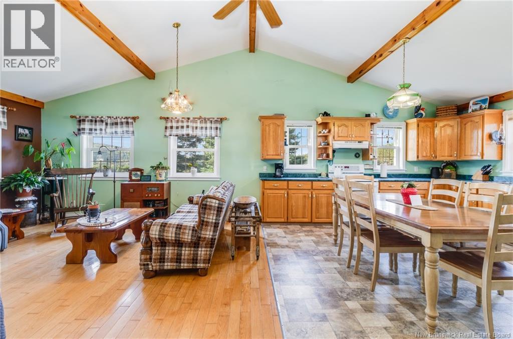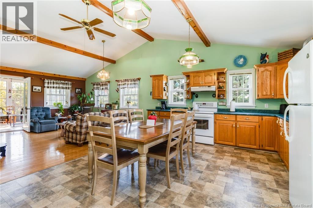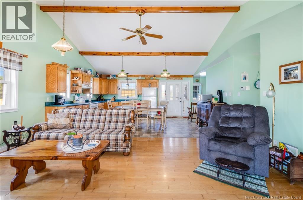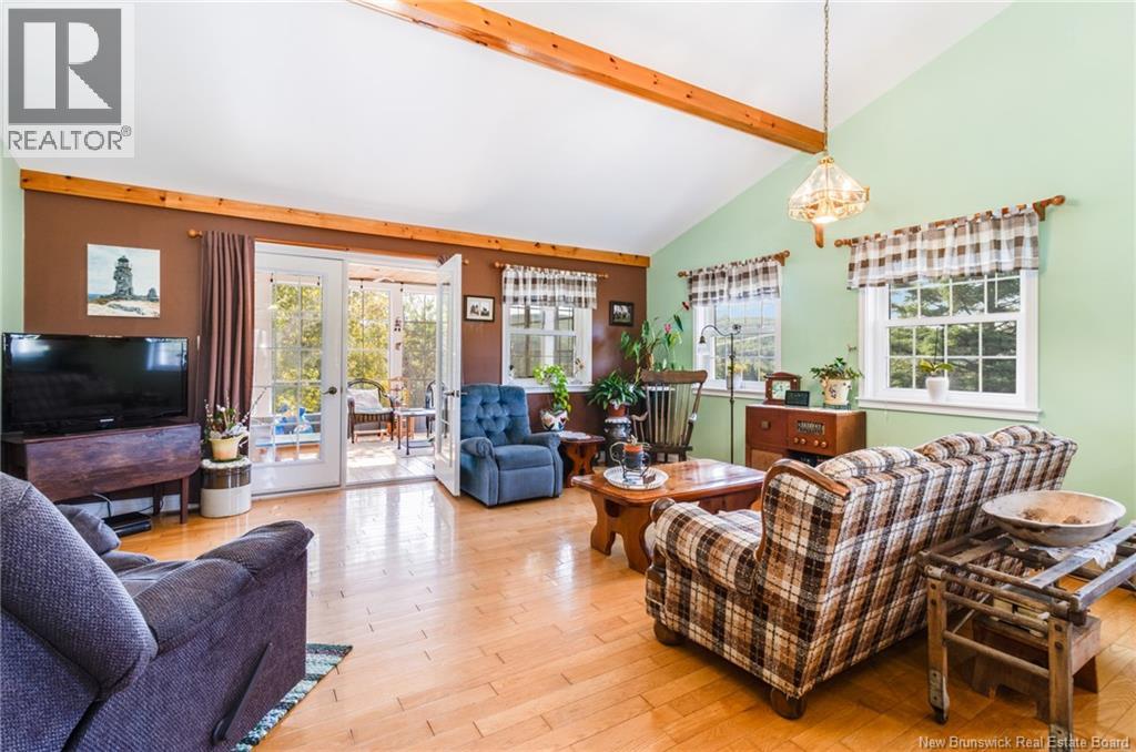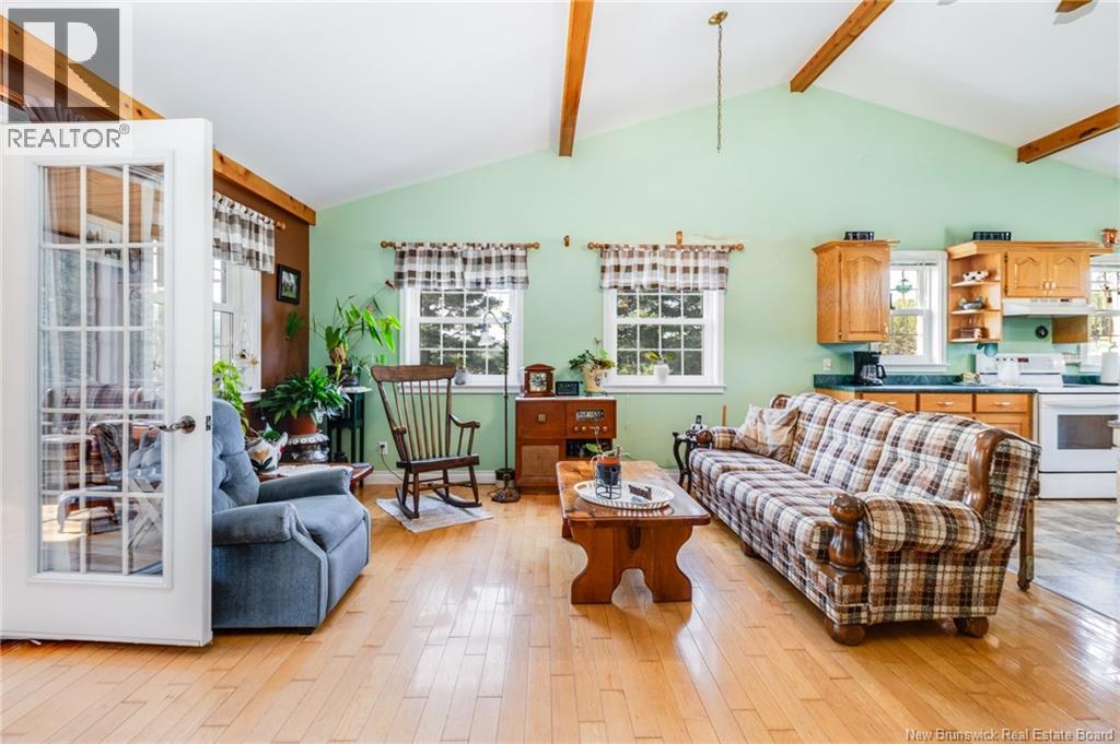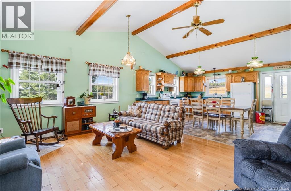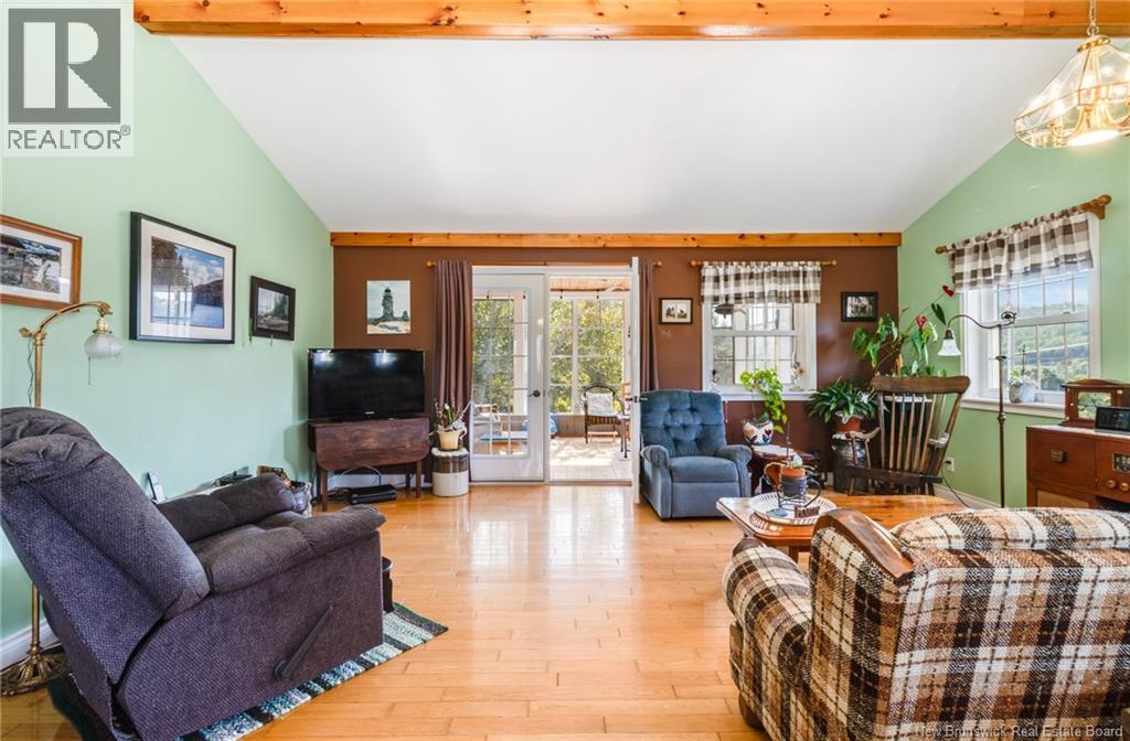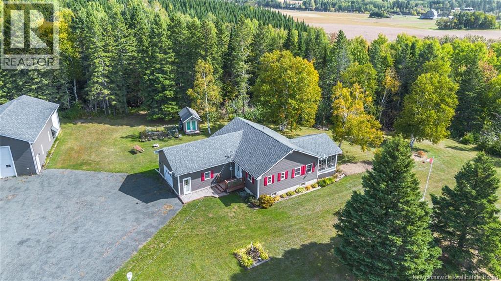Dreaming of country living with space to grow? This 3-bedroom, 2-bathroom bungalow sits on 4.9 acres just minutes from Perth-Andover, surrounded by beautifully landscaped grounds and endless lifestyle potential. The main level features an open-concept kitchen and living area with cathedral ceilings, wood beam accents, natural light, and patio doors leading to a 3-season sunroom overlooking the gorgeous scenery. A separate laundry room adds convenience, while the primary bath offers a large soaker tub and separate shower. Downstairs, youll find a spacious rec room, third bedroom, second full bathroom, and an oversized storage room. The home is equipped with a ducted heat pump for efficient heating and cooling. Theres also an attached garage plus a detached heated garage with its own heat pump, perfect for mechanics, hobbies, or easily converted into a barn for animals. With space for horses, cows, and chickens, this property is a hobby farm dream. The Tobique River is nearby for boating, with ATV and snowmobile trails close at hand, all while keeping you just minutes from town amenities. Attached garage (21 x 21) is insulated. Detached garage measures 28 x 40 with a 16 door and includes a 4 x 8 warm room. At the back, youll find a heated workshop measuring 28 x 14. As a bonus, the garage is wired for a 40 amp welder and a 30 amp RV outlet. (id:19018)