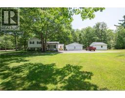 Step into this immaculately maintained 4-level split home sitting on a beautifully manicured property with paved driveway, detached double garage, large shed, and an additional lot offering space and privacy surrounded by mature trees and easy access to the ATV/snowmobile trails. The tiled entryway welcomes you into a bright kitchen with hardwood floors and hardwood cabinets, flowing seamlessly into the formal living room on the main level. Upstairs, youll find three spacious bedrooms and a full 4-piece bathroom, perfect for family living. The lower finished level provides a warm and inviting rec room with propane fireplace, ideal for cozy evenings, along with a versatile bedroom or office, a half bath with shower and laundry for added convenience. The lowest level remains unfinished, offering ample storage space to suit your needs. From the well-manicured landscaping to the privacy provided by mature trees, this home and property have been meticulously cared fora rare find in todays market. With plenty of room for the whole family and extra space inside and out, this property is ready to welcome its next owners. Bonus is the on-demand hot water heater. No more waiting forever for hot water! (id:19018)
