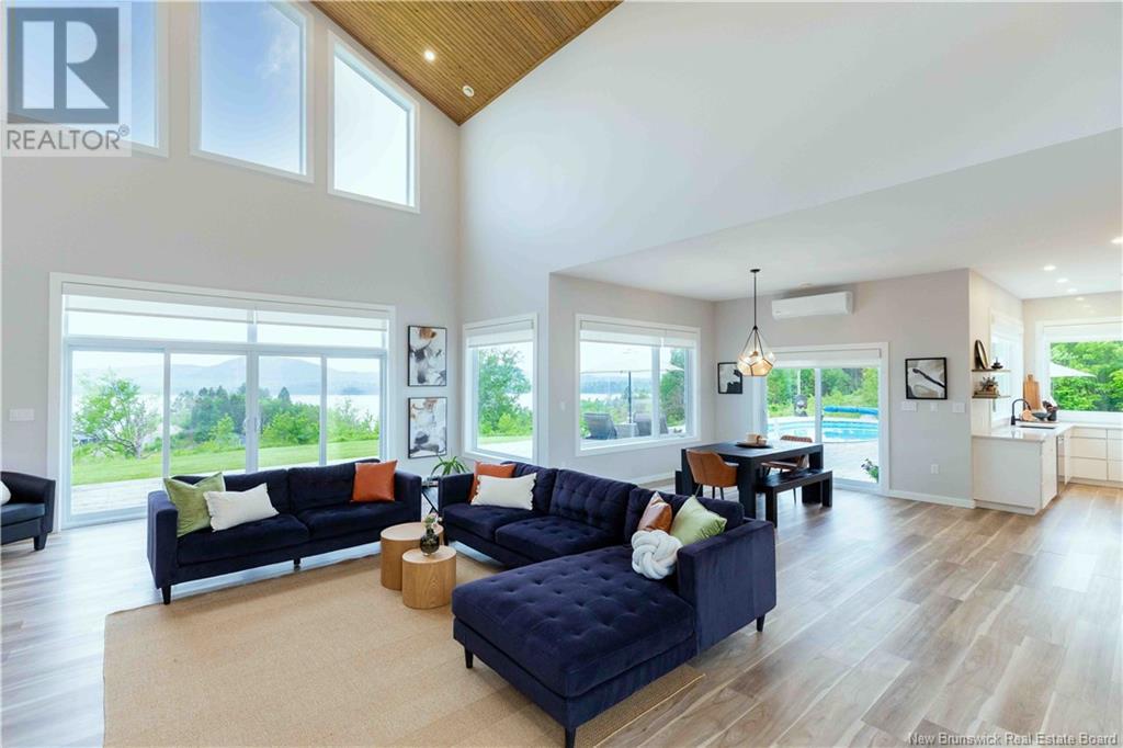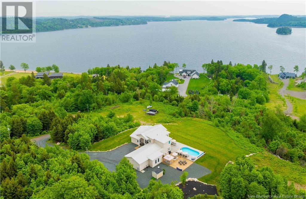 Tucked away in an exclusive community on the shores of Lake Utopia. This extraordinary estate panoramic views with a lifestyle of luxury and serenity Set high on 6 pristine acres with panoramic lake views and breathtaking sunsets, this rare property includes a private boat launchoffering complete privacy in one of the regions most stunning natural settings. A sparkling pool surrounded by expansive entertaining areas provides the perfect backdrop for unforgettable moments with family and friends. Designed to harmonize with its surroundings, the home features an open-concept layout, soaring ceilings, and oversized windows that fill the space with natural light. At its heart is a gourmet kitchen with high-end appliances, a generous island, walk-in pantry, and ample workspaceideal for daily living and elegant entertaining. The kitchen flows seamlessly into the great room, creating a warm, inviting space that connects effortlessly to the outdoors. The main-level primary suite offers sweeping lake views and a spa-inspired ensuite with a custom walk-in closet. A home theatre on this level easily serves as a second bedroom or flexible living area. Upstairs, two additional bedrooms and a full bathroom provide comfort and privacy for family or guests. A two-car garage with a sleek epoxy floor adds both style and utility. Rule your own domain from this breathtaking elevated piece of haven where it never grows old. (id:19018)