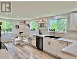 This extravagant three-bedroom home has been extensively renovated and is located in a scenic country setting, minutes from town.Upon entering the dwelling, you'll find yourself in the bright and airy foyer. From the foyer you can go left to the kitchen, forward to the lower level, or to a bedroom at your right. The kitchen is modern and tasteful, boasting new cabinetry and hardware, new countertops, new tiled backsplash and new Wi-Fi enabled appliances. At the far end of the kitchen, you can proceed right at the hallway leading to a second bedroom and full bath. The bathroom is also entirely new, offering double sinks, LED mirrors, beautiful hardware and hookups for a full-sized stackable laundry system. The third bedroom is located to the back of the living-room. Recent renovations include but are not limited to: new doors and windows, two new decks, a new 24000 BTU heat pump, all new plumbing, new insulation(R64 in ceiling), all new lights, plugs and fixtures, all new flooring, wood stove installation, and a freshly painted interior and exterior. The property is conveniently located 10 minutes from Canal beach and the Lake Utopia boat launch. (id:19018)