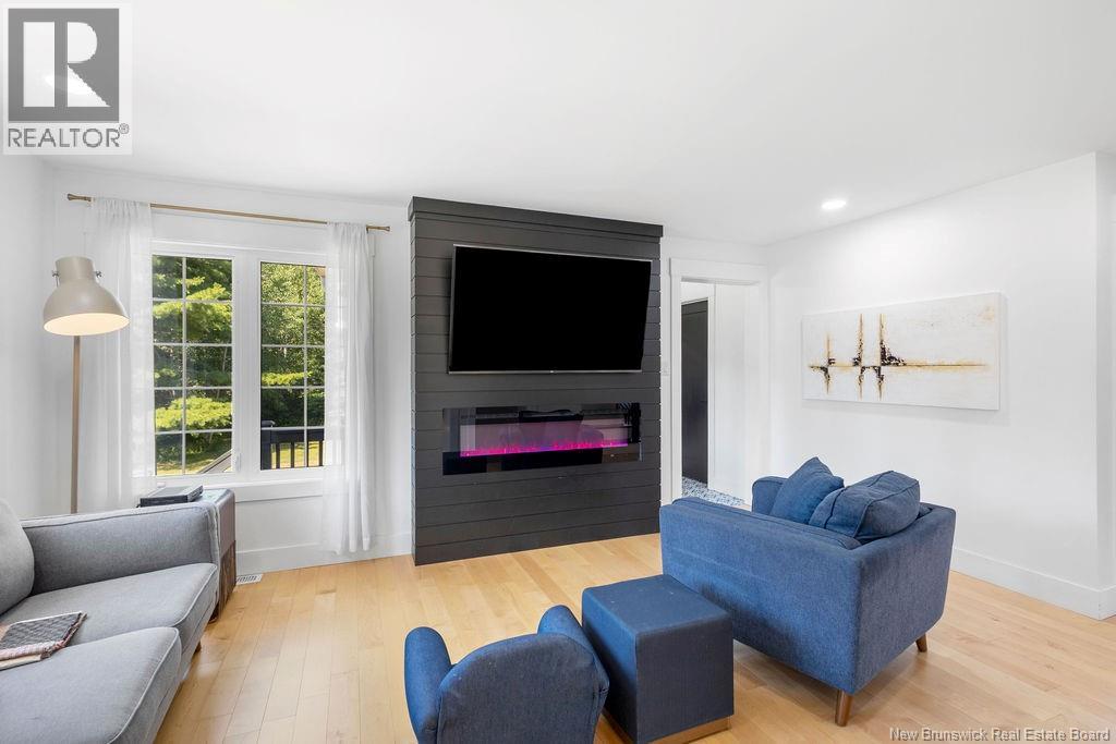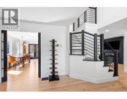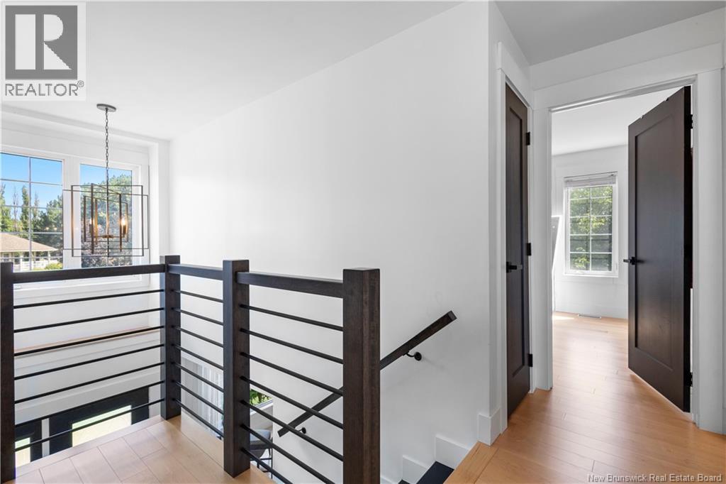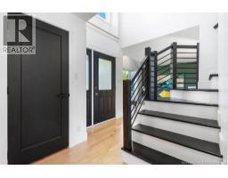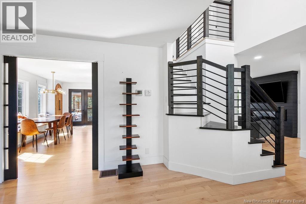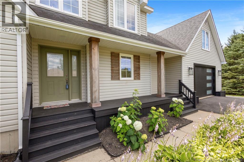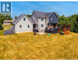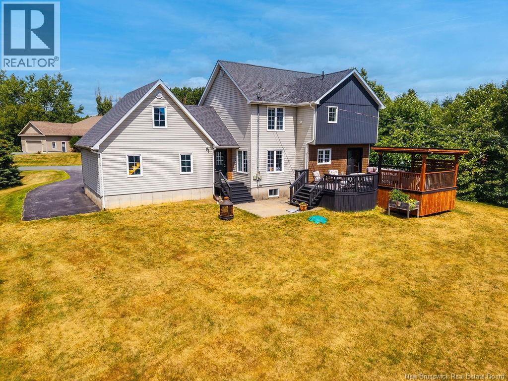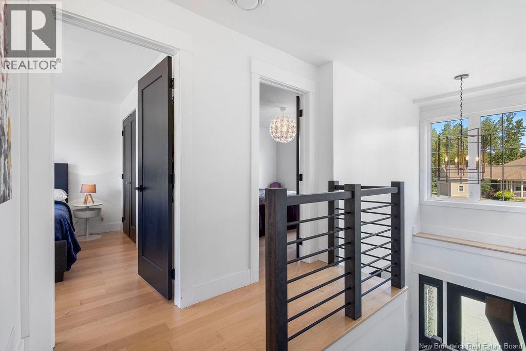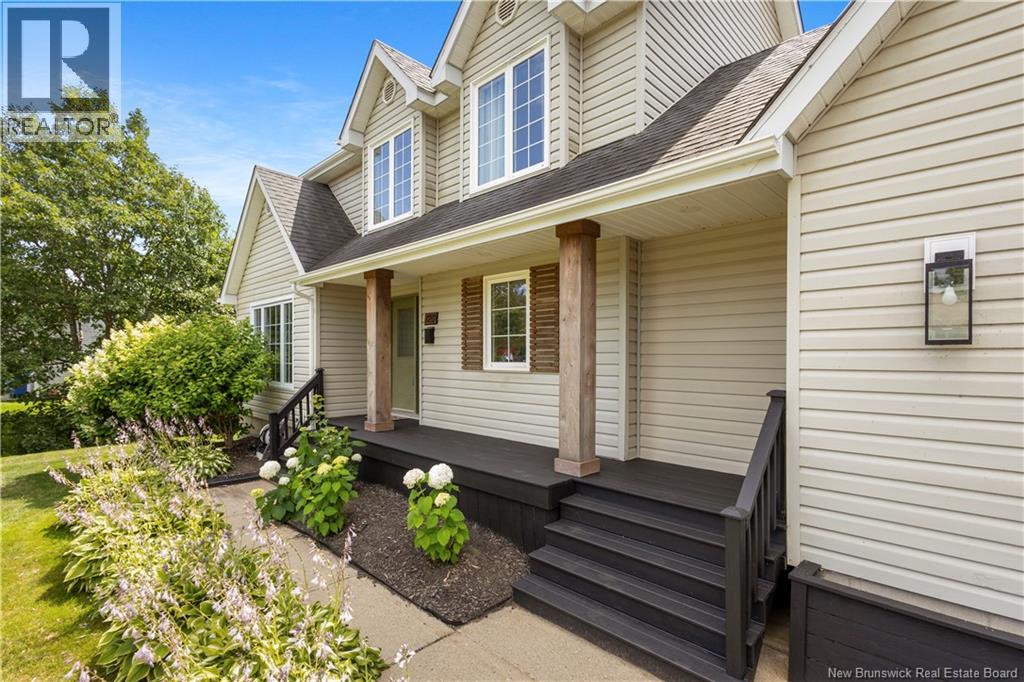 Welcome to this stunning executive two-storey home on a large, beautifully landscaped lot in one of the citys most desirable neighbourhoods. Surrounded by mature trees and elegant homes, the property offers exceptional curb appeal and privacy. Step inside the grand front entry and be greeted by a captivating staircase, beautiful lighting, and a fresh, modern color palette. The main floor includes a formal living room with vaulted ceilings and a cozy second living area with a fireplaceperfect for relaxing or entertaining. The custom kitchen features crisp white cabinetry, convenient coffee area, a spacious island with a quartz countertop, and a generous dining area with views of the private backyard. Enjoy direct access to the multi-tiered deck, a covered hot tub retreat, and a serene lower patio designed for ultimate outdoor enjoyment. Also on the main level: a stylish half bath, a large walk-in closet off the garage entry, and unfinished loft space above the garage for storage or future use. The home is filled with natural light and heated/cooled efficiently by a geothermal heat pump. Upstairs are two generous bedrooms and a beautiful primary suite with a walk-in closet with custom organizers and a private ensuite. A second full bath with laundry completes this level. The finished basement offers a large rec room, office/gym area, bathroom, and a fourth non-conforming bedroomideal for guests. Also, amenities and the Miramichi River are only minutes away. Call now to view! (id:19018)