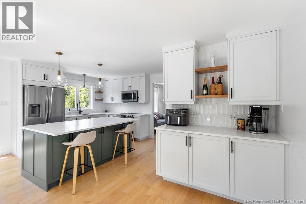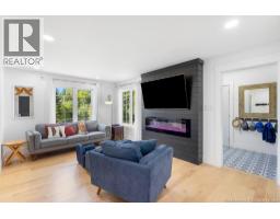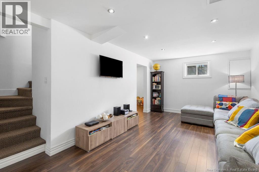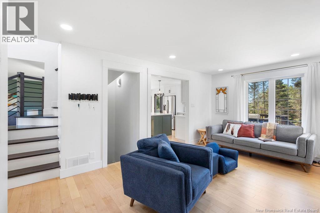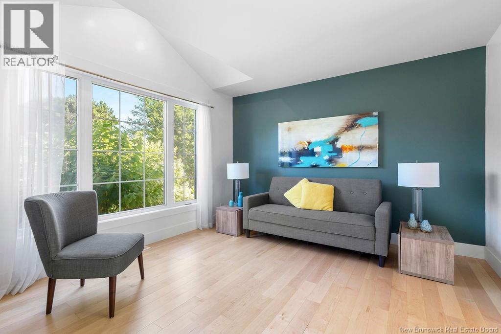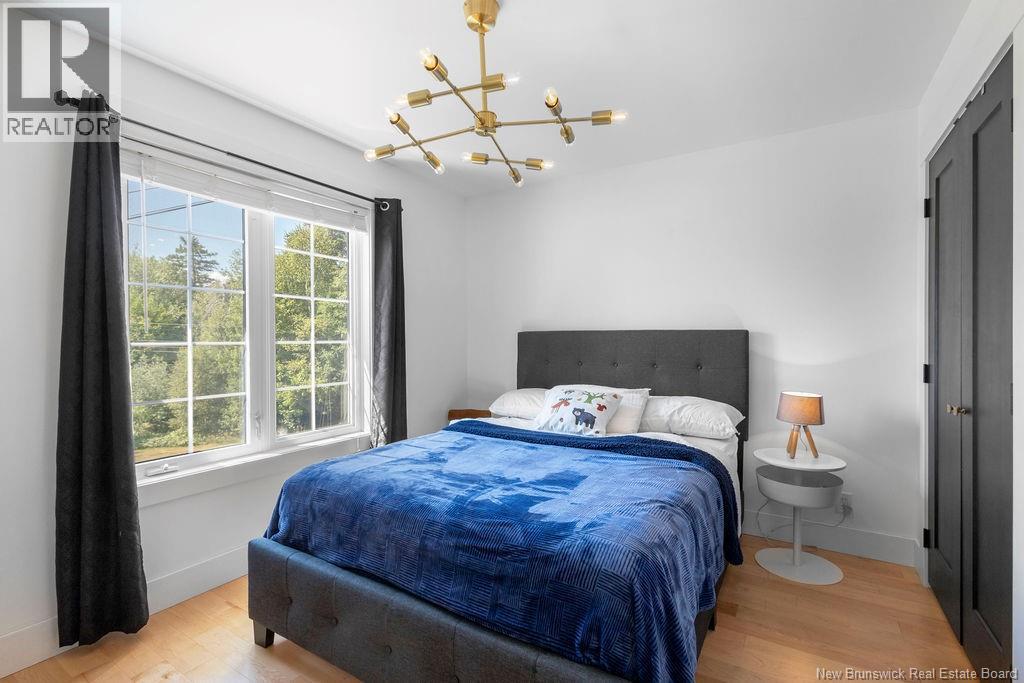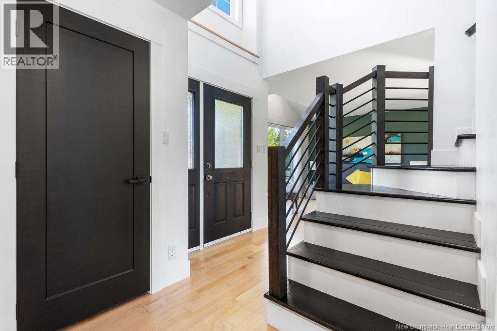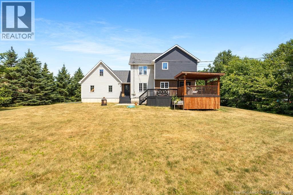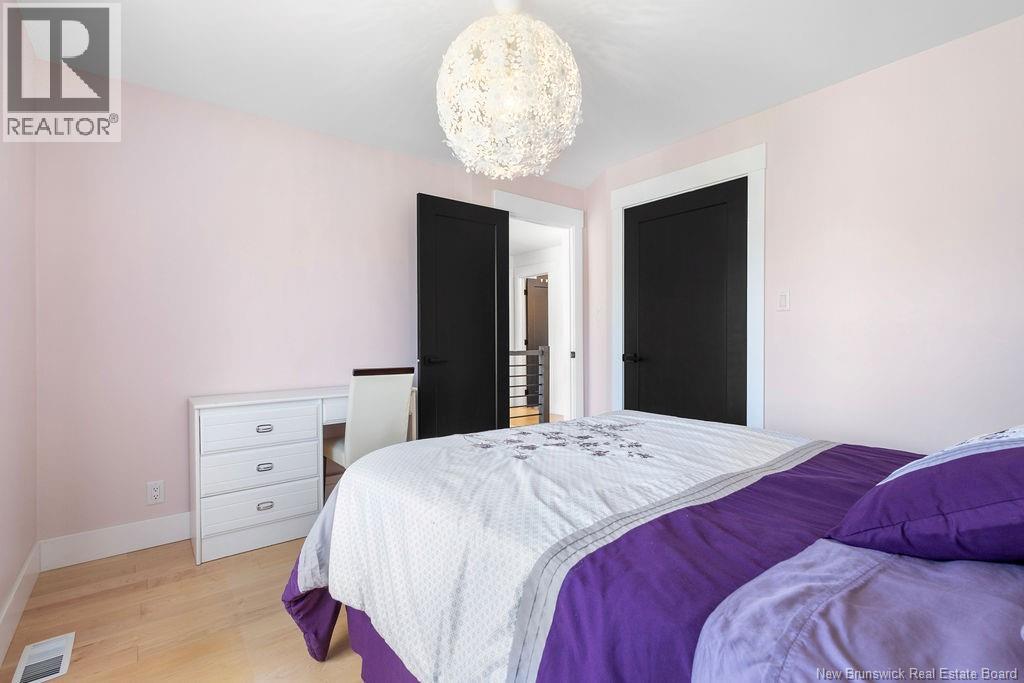 Welcome to this stunning executive two-storey home on a large, beautifully landscaped lot in one of the citys most desirable neighbourhoods. Surrounded by mature trees and elegant homes, the property offers exceptional curb appeal and privacy. Step inside the grand front entry and be greeted by a captivating staircase, beautiful lighting, and a fresh, modern color palette. The main floor includes a formal living room with vaulted ceilings and a cozy second living area with a fireplaceperfect for relaxing or entertaining. The custom kitchen features crisp white cabinetry, convenient coffee area, a spacious island with a quartz countertop, and a generous dining area with views of the private backyard. Enjoy direct access to the multi-tiered deck, a covered hot tub retreat, and a serene lower patio designed for ultimate outdoor enjoyment. Also on the main level: a stylish half bath, a large walk-in closet off the garage entry, and unfinished loft space above the garage for storage or future use. The home is filled with natural light and heated/cooled efficiently by a geothermal heat pump. Upstairs are two generous bedrooms and a beautiful primary suite with a walk-in closet with custom organizers and a private ensuite. A second full bath with laundry completes this level. The finished basement offers a large rec room, office/gym area, bathroom, and a fourth non-conforming bedroomideal for guests. Also, amenities and the Miramichi River are only minutes away. Call now to view! (id:19018)