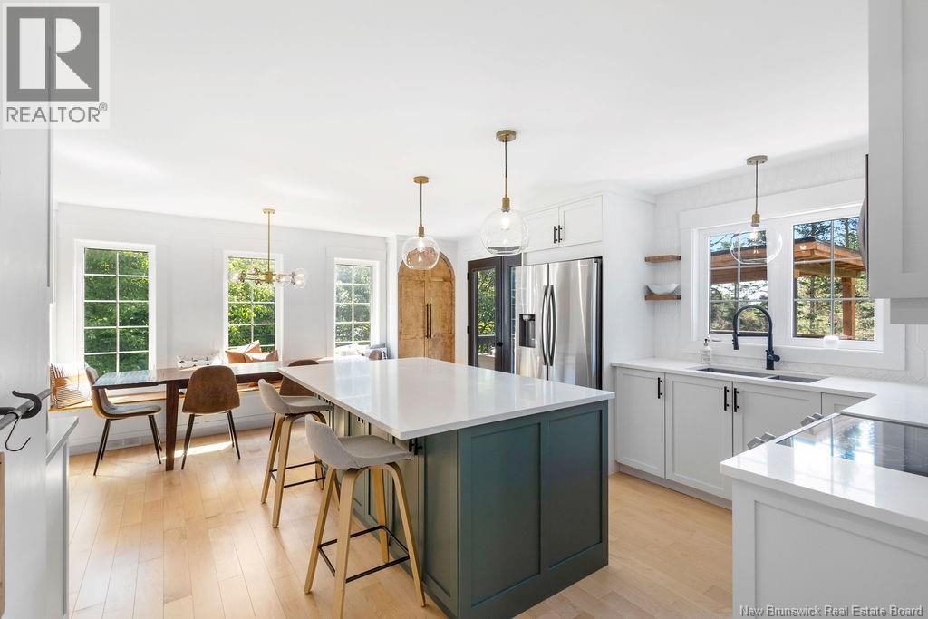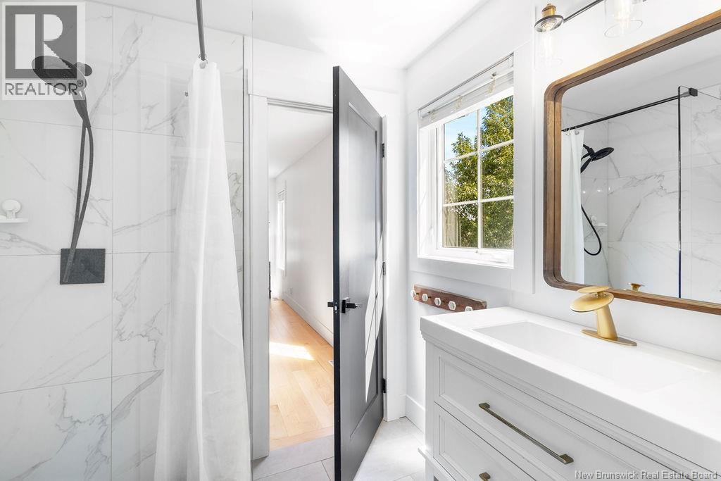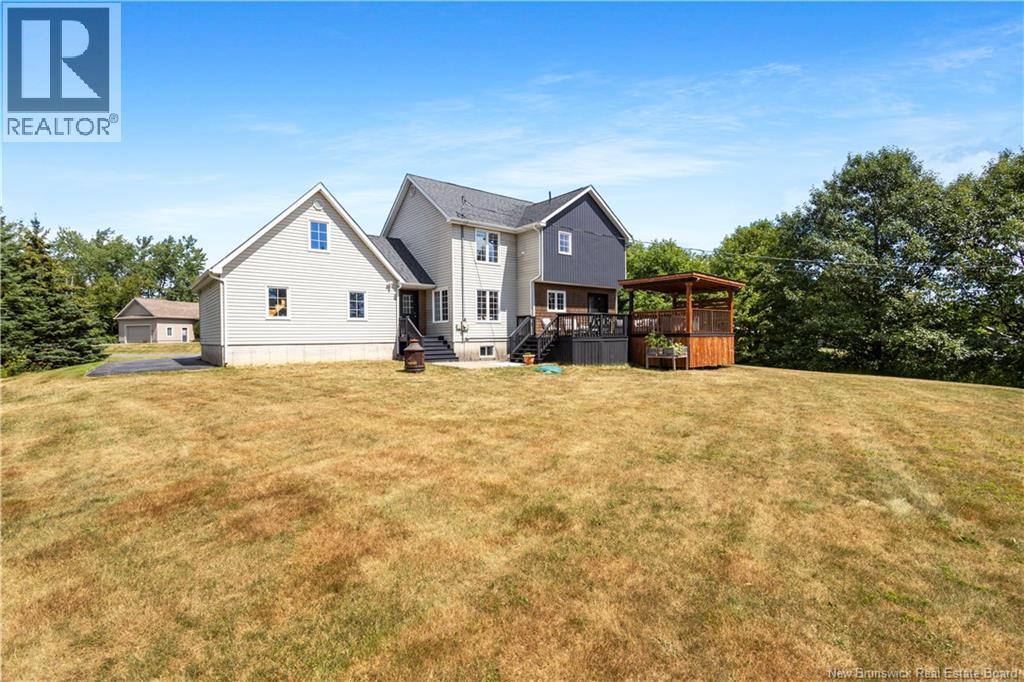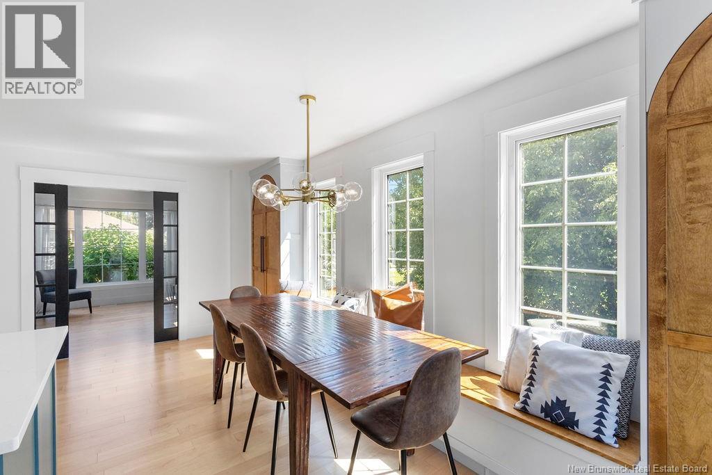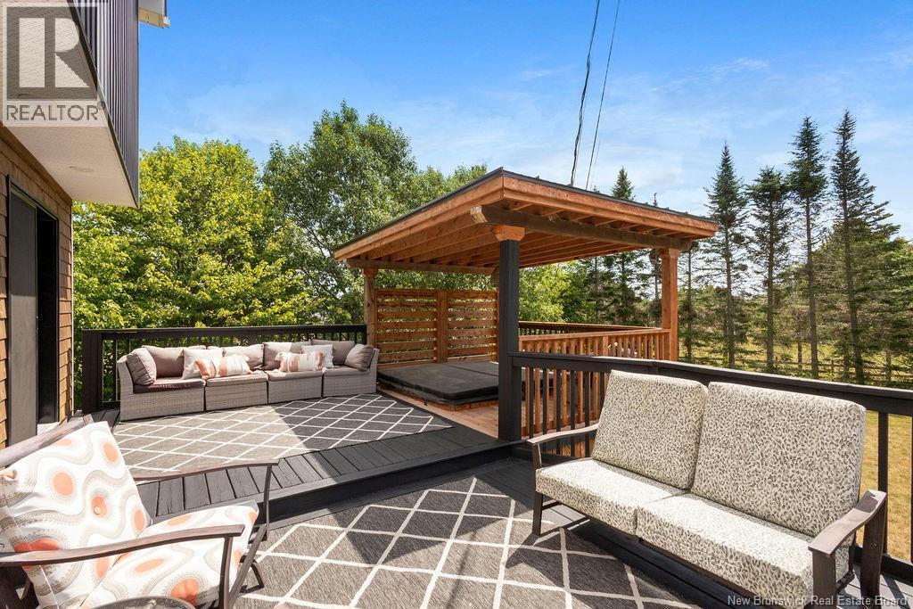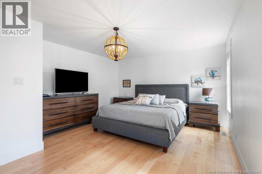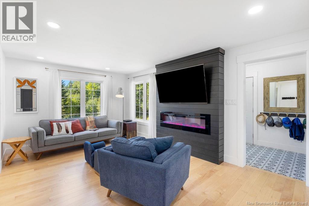 Welcome to this stunning executive two-storey home on a large, beautifully landscaped lot in one of the citys most desirable neighbourhoods. Surrounded by mature trees and elegant homes, the property offers exceptional curb appeal and privacy. Step inside the grand front entry and be greeted by a captivating staircase, beautiful lighting, and a fresh, modern color palette. The main floor includes a formal living room with vaulted ceilings and a cozy second living area with a fireplaceperfect for relaxing or entertaining. The custom kitchen features crisp white cabinetry, convenient coffee area, a spacious island with a quartz countertop, and a generous dining area with views of the private backyard. Enjoy direct access to the multi-tiered deck, a covered hot tub retreat, and a serene lower patio designed for ultimate outdoor enjoyment. Also on the main level: a stylish half bath, a large walk-in closet off the garage entry, and unfinished loft space above the garage for storage or future use. The home is filled with natural light and heated/cooled efficiently by a geothermal heat pump. Upstairs are two generous bedrooms and a beautiful primary suite with a walk-in closet with custom organizers and a private ensuite. A second full bath with laundry completes this level. The finished basement offers a large rec room, office/gym area, bathroom, and a fourth non-conforming bedroomideal for guests. Also, amenities and the Miramichi River are only minutes away. Call now to view! (id:19018)