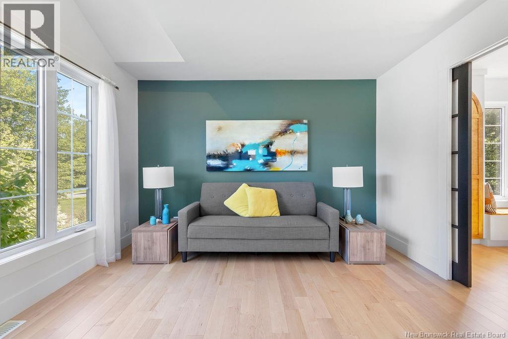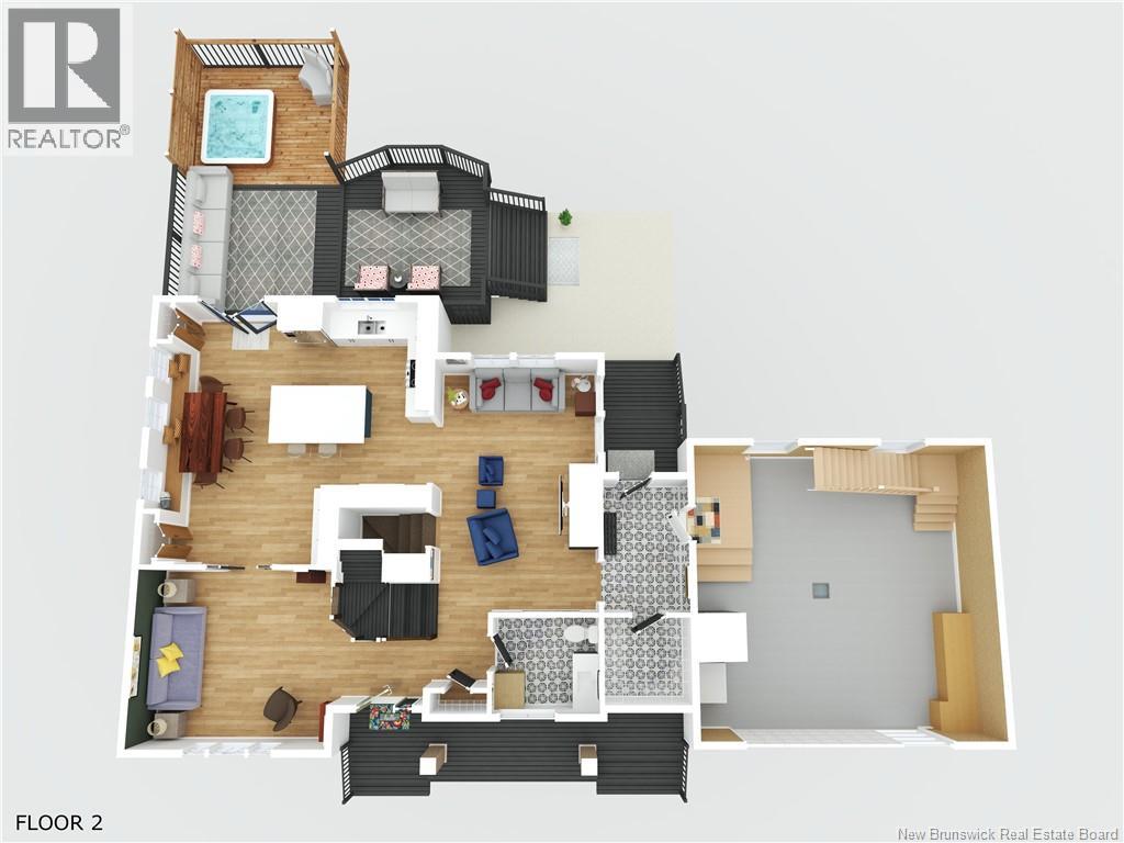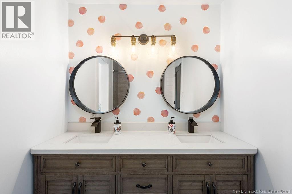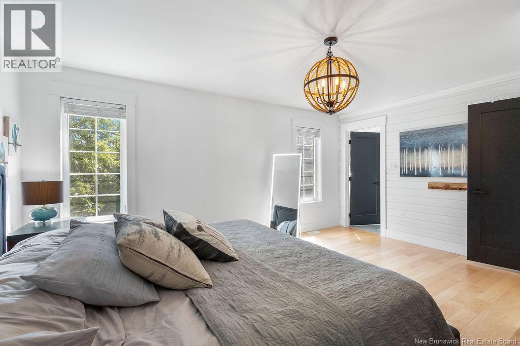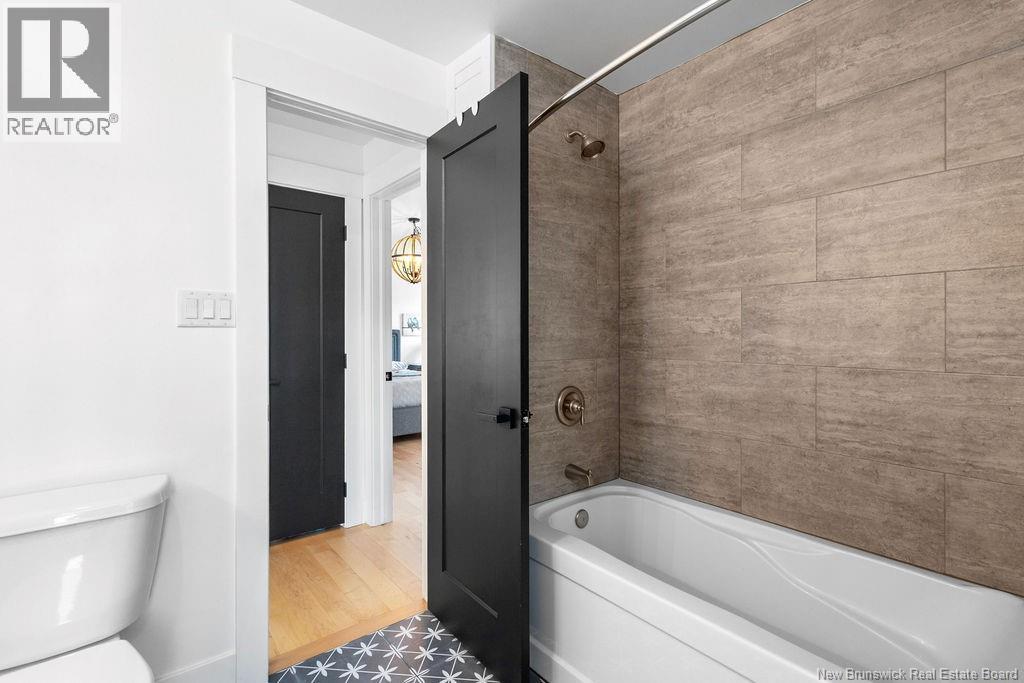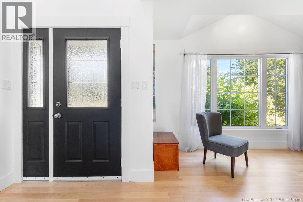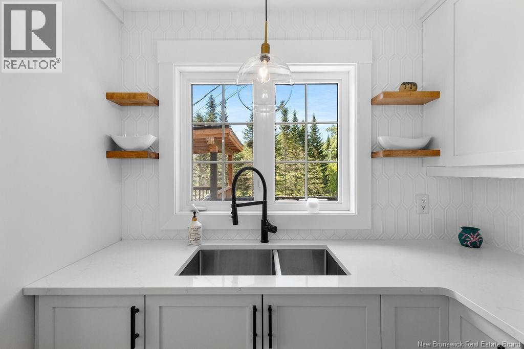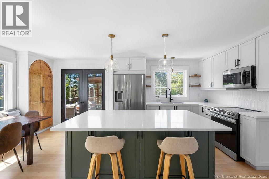 Welcome to this stunning executive two-storey home on a large, beautifully landscaped lot in one of the citys most desirable neighbourhoods. Surrounded by mature trees and elegant homes, the property offers exceptional curb appeal and privacy. Step inside the grand front entry and be greeted by a captivating staircase, beautiful lighting, and a fresh, modern color palette. The main floor includes a formal living room with vaulted ceilings and a cozy second living area with a fireplaceperfect for relaxing or entertaining. The custom kitchen features crisp white cabinetry, convenient coffee area, a spacious island with a quartz countertop, and a generous dining area with views of the private backyard. Enjoy direct access to the multi-tiered deck, a covered hot tub retreat, and a serene lower patio designed for ultimate outdoor enjoyment. Also on the main level: a stylish half bath, a large walk-in closet off the garage entry, and unfinished loft space above the garage for storage or future use. The home is filled with natural light and heated/cooled efficiently by a geothermal heat pump. Upstairs are two generous bedrooms and a beautiful primary suite with a walk-in closet with custom organizers and a private ensuite. A second full bath with laundry completes this level. The finished basement offers a large rec room, office/gym area, bathroom, and a fourth non-conforming bedroomideal for guests. Also, amenities and the Miramichi River are only minutes away. Call now to view! (id:19018)