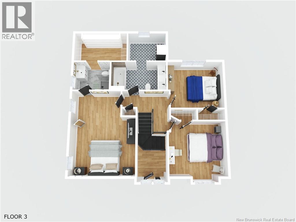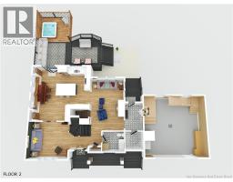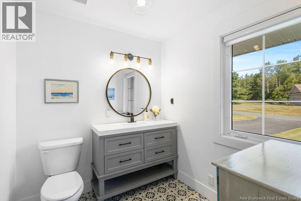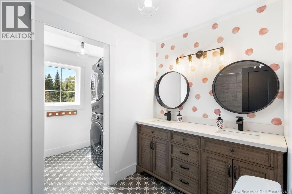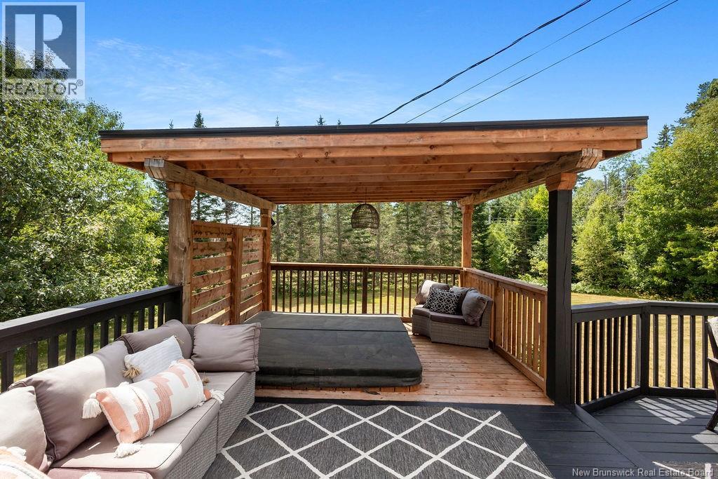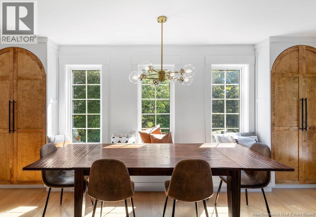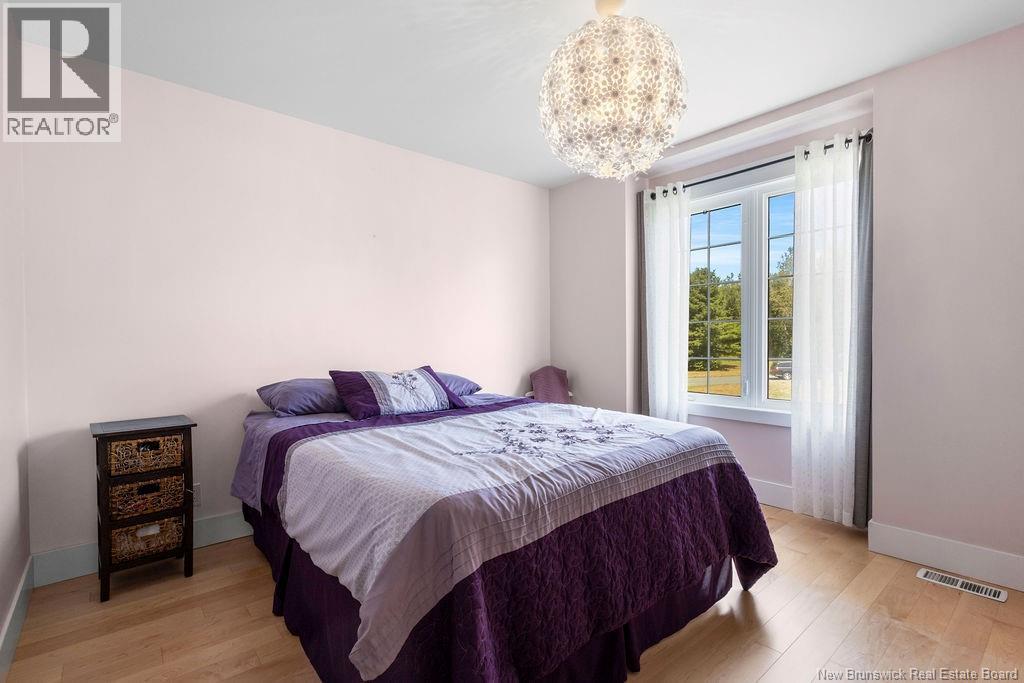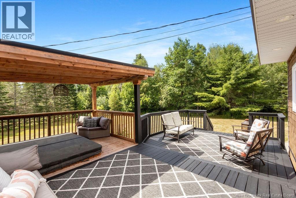 Welcome to this stunning executive two-storey home on a large, beautifully landscaped lot in one of the citys most desirable neighbourhoods. Surrounded by mature trees and elegant homes, the property offers exceptional curb appeal and privacy. Step inside the grand front entry and be greeted by a captivating staircase, beautiful lighting, and a fresh, modern color palette. The main floor includes a formal living room with vaulted ceilings and a cozy second living area with a fireplaceperfect for relaxing or entertaining. The custom kitchen features crisp white cabinetry, convenient coffee area, a spacious island with a quartz countertop, and a generous dining area with views of the private backyard. Enjoy direct access to the multi-tiered deck, a covered hot tub retreat, and a serene lower patio designed for ultimate outdoor enjoyment. Also on the main level: a stylish half bath, a large walk-in closet off the garage entry, and unfinished loft space above the garage for storage or future use. The home is filled with natural light and heated/cooled efficiently by a geothermal heat pump. Upstairs are two generous bedrooms and a beautiful primary suite with a walk-in closet with custom organizers and a private ensuite. A second full bath with laundry completes this level. The finished basement offers a large rec room, office/gym area, bathroom, and a fourth non-conforming bedroomideal for guests. Also, amenities and the Miramichi River are only minutes away. Call now to view! (id:19018)