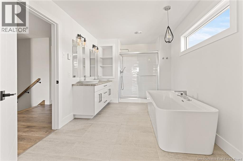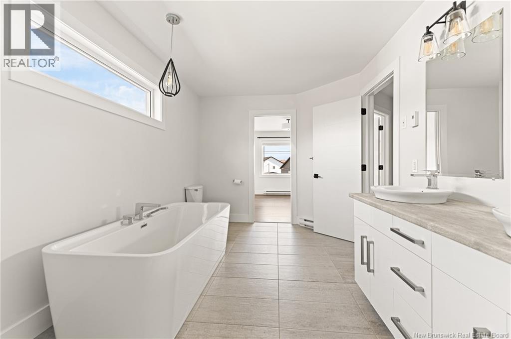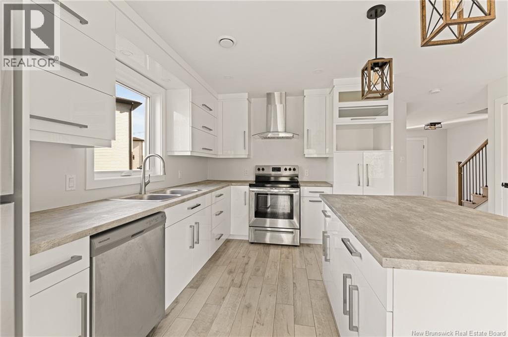 *** QUICK CLOSING AVAILABLE // MODERN 2 STOREY SEMI-DETACHED // PIE-SHAPED LOT // 2 MINI-SPLIT HEAT PUMPS // ATTACHED SINGLE GARAGE *** Welcome to 122 Francfort, located in the desirable Evergreen Park area of Moncton North, this well-maintained, modern-style 2 storey semi is only a few years old and is ready for its new lucky owner! A nice foyer with large double door closet and garage entrance welcomes you to the main floor which is FLOODED WITH NATURAL LIGHT and features an open concept kitchen/dining/living area complete with a mini-split for your cooling and heating comfort. The living room with SHIPLAP ACCENT and ELECTRIC FIREPLACE flows into the kitchen featuring WHITE CABINETRY, BEAUTIFUL COUNTERTOPS and CENTRE ISLAND, and a nice, bright dining area with patio doors to your back deck with PRIVACY WAL. A 2pc powder room completes this floor. The second floor includes a primary bedroom with walk-in closet and cheater door to the GORGEOUS 5pc SPA-LIKE bathroom, 2 additional good size bedrooms and a linen closet. The laundry room with sink is also conveniently located on this floor along with a second mini-split. The basement is unfinished and ready for you to create your ideal dream space. This home offers modern fixtures and features throughout and an attached single garage and is close to all amenities. NOTE: Lot size is approximate as entire lot to be subdivided prior to closing. PID and PAN subject to change. Current taxes and assessment are for both units on lot. (id:19018)