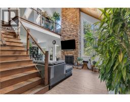 Nestled on a private 1.1-acre lot in one of Ammons most sought-after neighbourhoods, this climate-controlled home combines modern comfort with timeless charm just minutes from the city center. Step inside the inviting living room, where soaring cathedral ceilings and a propane fireplace surrounded by real stone creates a warm elegant focal point. The kitchen is beautifully appointed with dark-stained cabinetry, quartz countertops, backsplash, pantry, china cabinet, and a center island with lunch counter. The dining room opens to an outdoor screened gazebo, deck, and interlocking patio, perfect for entertaining while overlooking the private, fenced yard. The main level also offers a bedroom, full bath, and laundry area for added convenience. Upstairs, discover two more bedrooms and a full bath, including the primary suite with walk-in closet and a 3-pc ensuite featuring a ceramic shower. The finished basement extends your living space with a cozy family room with electric fireplace, a den, and an additional full bath. Other highlights include: Stone & wood exterior with timeless curb appeal, Central heat pump & climate control, Central vacuum system, Attached garage in a Quiet cul-de-sac location. This property delivers privacy, style, and convenience all in one package. Don't delay and call today for more information. (id:19018)