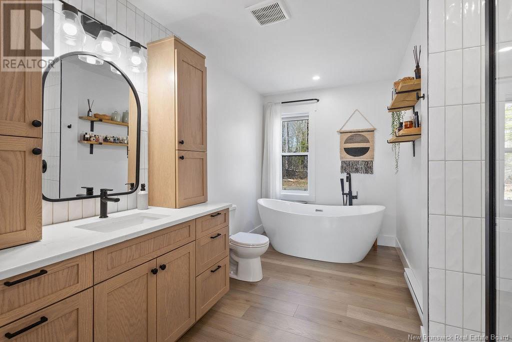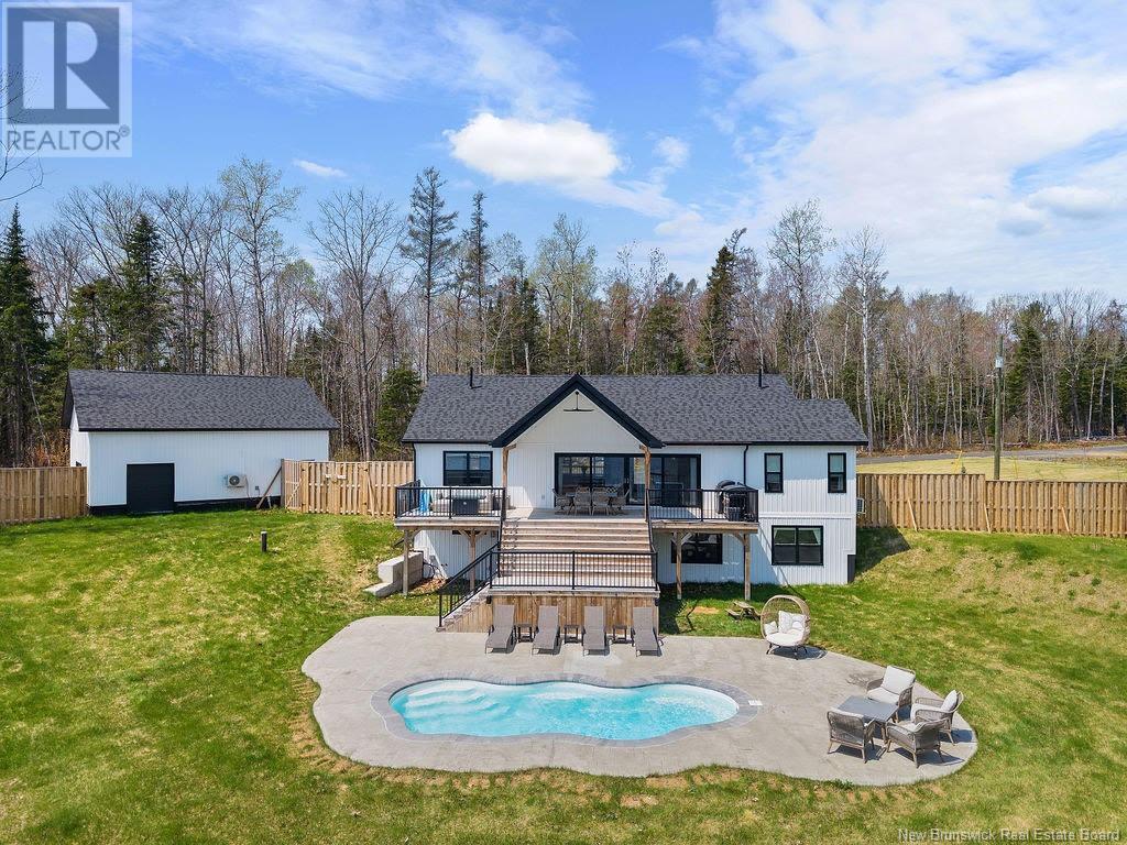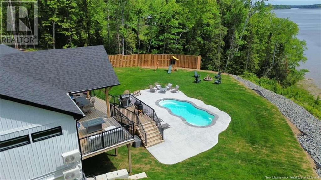 Welcome to your dream retreatan exquisite 5-bedroom, 3-bathroom executive-style home nestled on a stunning 8.8-acre waterfront property. Offering the perfect blend of luxury, privacy, and modern comfort, this meticulously designed residence features high-end finishes throughout and an elegant, contemporary aesthetic. Step inside to find an open-concept layout flooded with natural light, highlighting a gourmet kitchen with stainless steel appliances, a walk in pantry, and an oversized island. The spacious living and dining areas are ideal for both everyday living and entertaining. The home is climate-controlled with five mini-split systems strategically placed throughout, ensuring year-round comfort. The fully developed walk-out basement adds exceptional functionality and space, featuring a large, open rec room perfect for family gatherings or entertaining. It includes a kitchenette, ideal for hosting guests Outside, you'll be captivated by expansive yard, and a private, paved driveway leading to your own peaceful haven. Enjoy summer days by the heated in-ground pool or host unforgettable gatherings with friends and family against the backdrop of serene Northwest Miramichi River. Whether you're relaxing indoors or enjoying the beautiful outdoors, this home offers the ultimate lifestyle. A rare opportunity to own a slice of paradisewhere luxury meets tranquility. (id:19018)