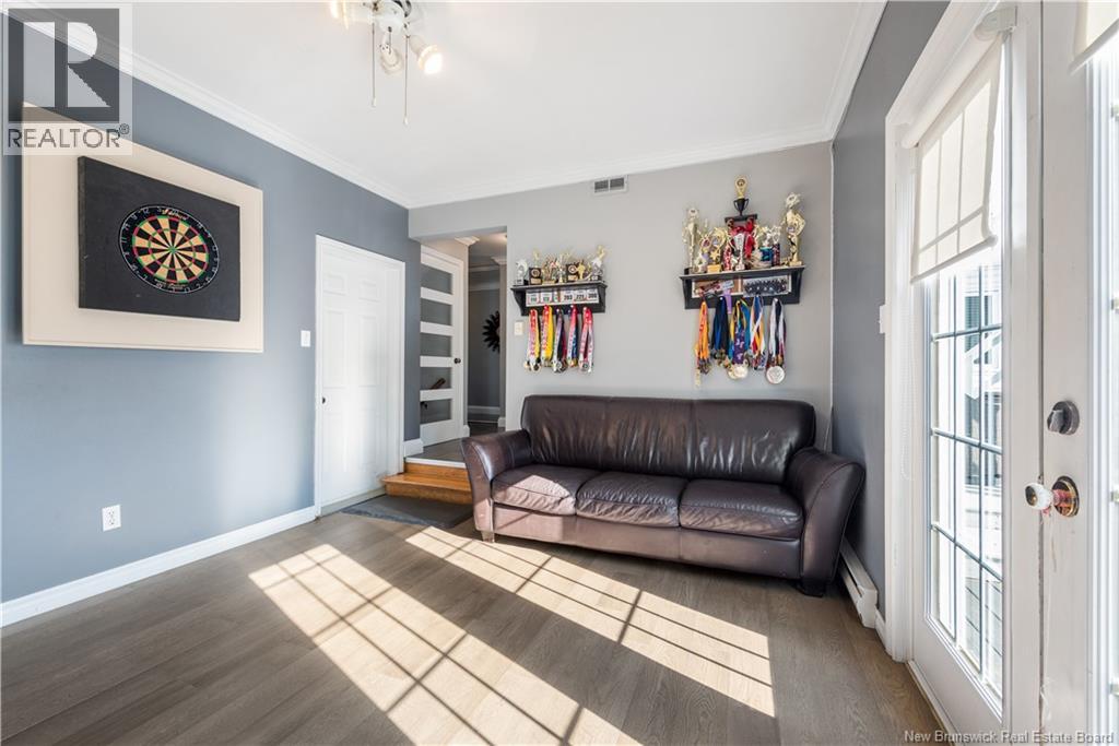 Welcome to 150 Shannon Drive, a warm and inviting two-storey family home located in one of Monctons most desirable and established neighbourhoods. This beautifully maintained property offers 3 bedrooms, 2.5 bathrooms, an attached single-car garage, and a fully finished basement. From the moment you enter, youll notice the attention to detail, starting with the elegant crown moulding that flows throughout the main living spaces. The main floor features a bright living room, a custom-built fireplace wall, and French doors that open into the dining area. The spacious kitchen is outfitted with modern appliances, tile flooring, and a stylish backsplash. A dedicated home office just off the kitchen is ideal for remote work, featuring vaulted ceilings, large windows, and direct access to the backyard. Upstairs youll find three generously sized bedrooms and an updated full bathroom with contemporary finishes. The finished basement provides extra living space with a versatile rec room, a second full bathroom, and a fourth non-conforming bedroom or flex room. Outside, enjoy summer days in your private fenced yard featuring a large above-ground pool, mature trees, and space for entertaining. Additional updates include a newer roof, upgraded flooring, and bathroom additions in the basement. Dont miss your chance to view this exceptional property. (id:19018)