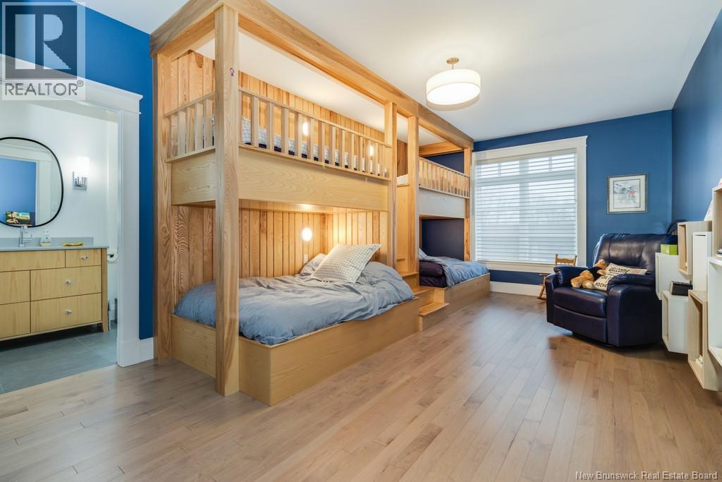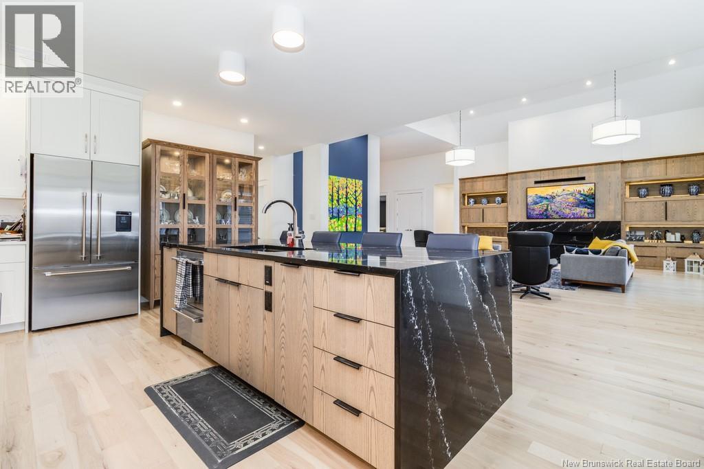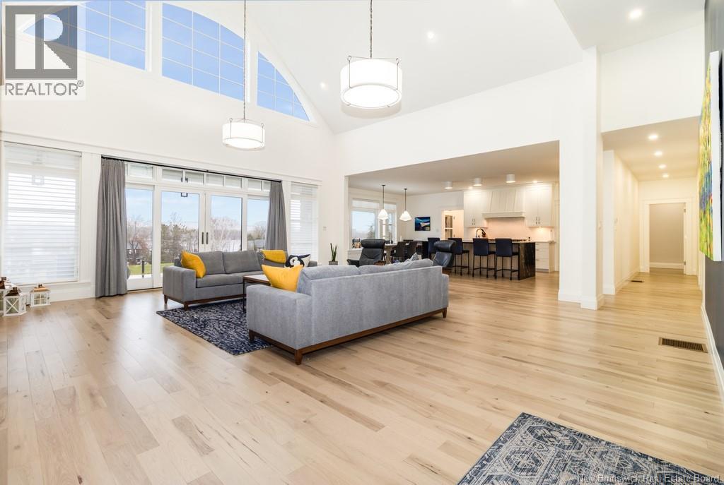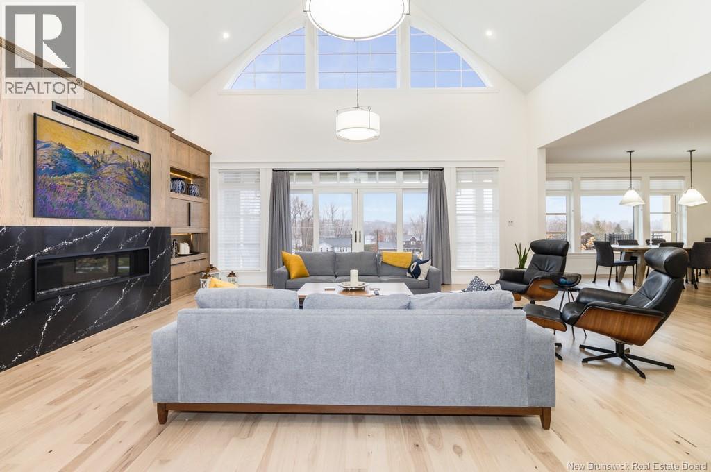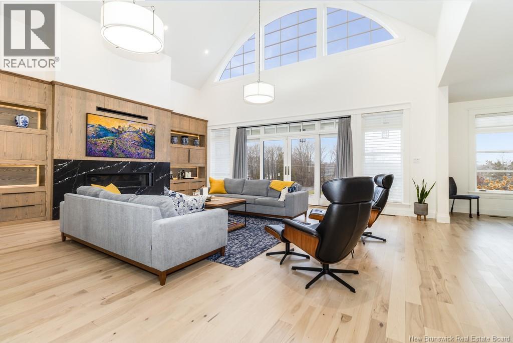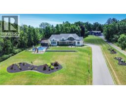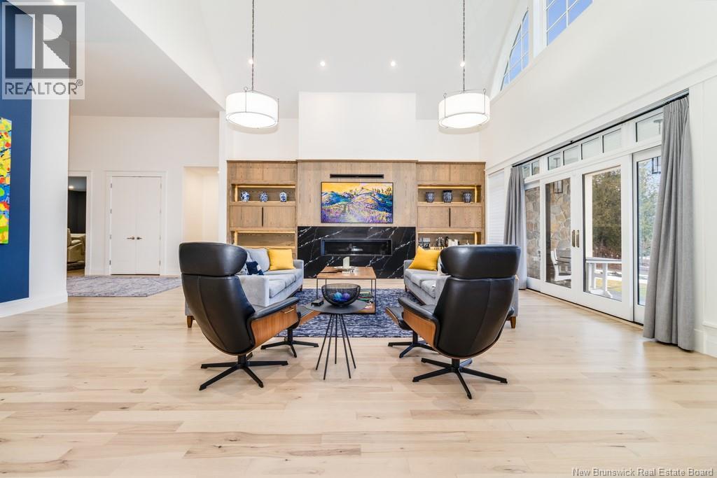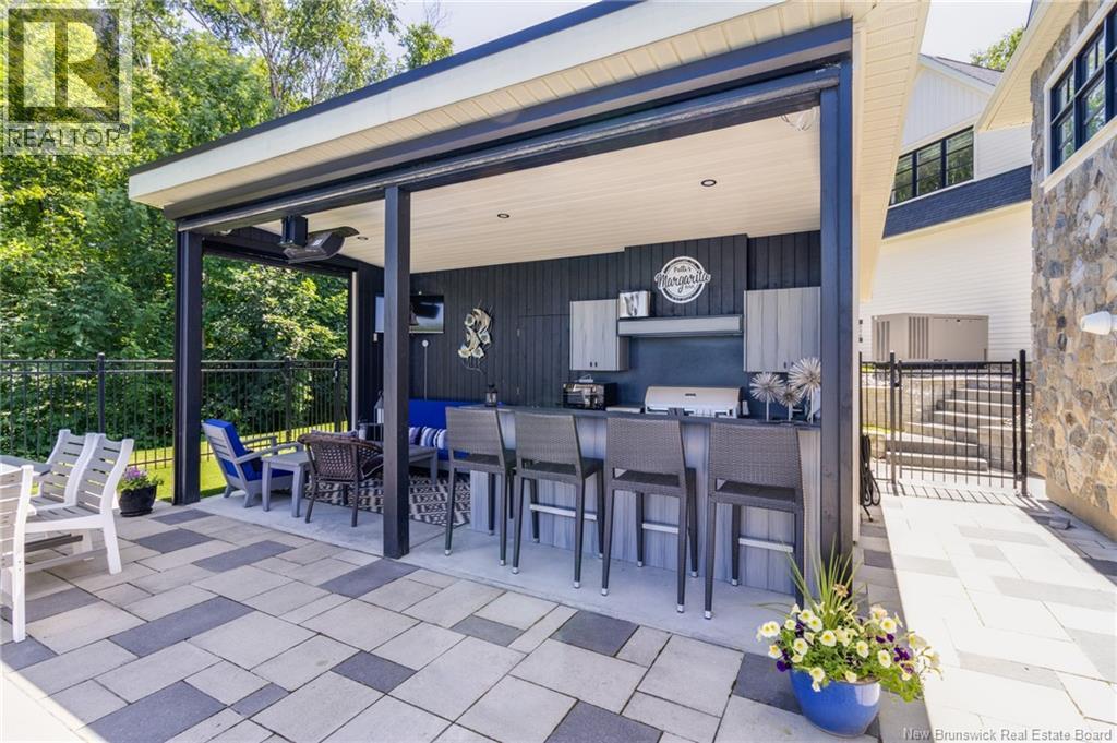 An exquisitely crafted, custom-built home situated on 1.5 acres in Fredericton South. No detail has been spared in the conception and construction of this remarkable estate-style property with over 5,300 sqft of finished space. The open-concept main living area features a spacious living room adorned with bespoke built-in cabinetry,23 foot ceilings, gas fireplace, and patio doors that lead to an outdoor sitting area offering serene river and overland views. The gourmet kitchen showcases a generous island, a eight-burner gas stove, dual dishwashers and a butlers pantry. The primary suite is a sanctuary of luxury featuring cathedral ceilings, a sprawling 15x18 walk-in closet and a spa-inspired bathroom featuring dual vanities, a custom-tiled shower and heated floors. At the opposite end of the home are two additional well-appointed bedrooms each with its own ensuite bath. A versatile fourth bedroom, currently utilized as a media room, and a large office complete this level. Staircase accessed from the mudroom, leads to the gym area and ½ bath located above the oversized 3 car garage. The lower level is partially finished including a 4th full bath, a spacious family room, and a children's secret room featuring a ball pit and climbing ladder. The outdoor amenities are equally impressive, with an exquisite in-ground pool, an expansive pool house complete with a bar and bathroom, and even an artificial turf putting green the perfect complement to this stunning estate. (id:19018)