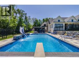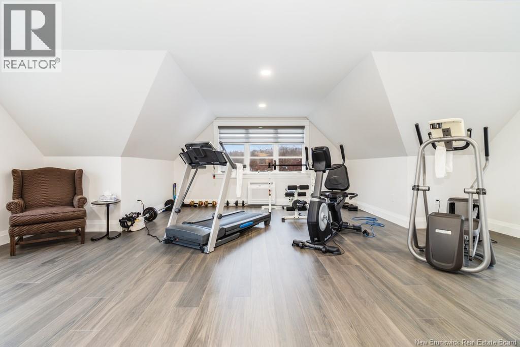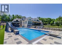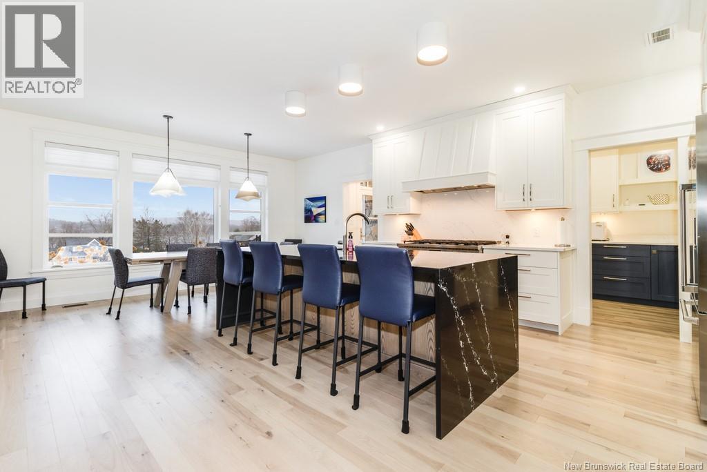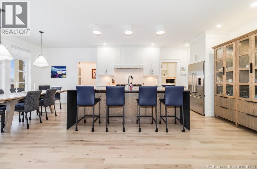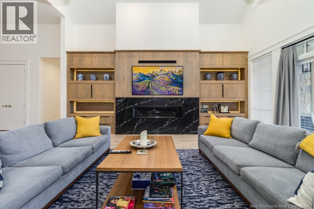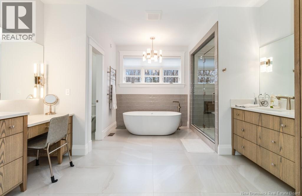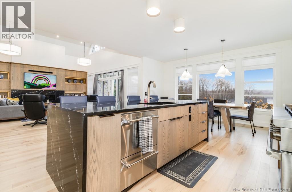 An exquisitely crafted, custom-built home situated on 1.5 acres in Fredericton South. No detail has been spared in the conception and construction of this remarkable estate-style property with over 5,300 sqft of finished space. The open-concept main living area features a spacious living room adorned with bespoke built-in cabinetry,23 foot ceilings, gas fireplace, and patio doors that lead to an outdoor sitting area offering serene river and overland views. The gourmet kitchen showcases a generous island, a eight-burner gas stove, dual dishwashers and a butlers pantry. The primary suite is a sanctuary of luxury featuring cathedral ceilings, a sprawling 15x18 walk-in closet and a spa-inspired bathroom featuring dual vanities, a custom-tiled shower and heated floors. At the opposite end of the home are two additional well-appointed bedrooms each with its own ensuite bath. A versatile fourth bedroom, currently utilized as a media room, and a large office complete this level. Staircase accessed from the mudroom, leads to the gym area and ½ bath located above the oversized 3 car garage. The lower level is partially finished including a 4th full bath, a spacious family room, and a children's secret room featuring a ball pit and climbing ladder. The outdoor amenities are equally impressive, with an exquisite in-ground pool, an expansive pool house complete with a bar and bathroom, and even an artificial turf putting green the perfect complement to this stunning estate. (id:19018)