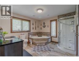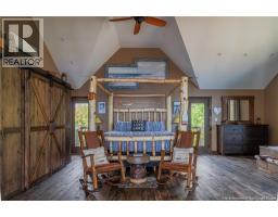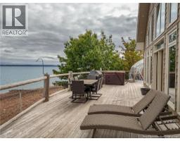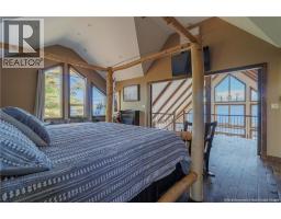 Discover lakeside luxury on Grand Lake, NB. Set on 1.69 private acres between Palmer Point and Grand Point and she's NEVER FLOODED! This fully furnished two-storey chalet offers approx. 246 feet of premium waterfront and stunning sunrise-to-sunset views.Designed for comfort and style, the home features 2 beautifully appointed bedrooms, 2 spa-inspired bathrooms, and a chefs kitchen with gas stove, double ovens, and upscale finishes. Triple-pane windows, vinyl cedar shake siding, and a concrete foundation with engineered lift ensure year-round durability and energy efficiency. A massive retaining wall provides added protection from high water.Enjoy top-tier outdoor living with a private hot tub, sauna, and fully furnished geodome loungeperfect for relaxing or entertaining. The property includes 80 feet of dock, boat mooring, an outdoor toilet and sink, and a fenced dog run. The approx. 7-foot clearance beneath the home offers flexible use as a covered patio or carport. This turnkey retreat is ready for immediate enjoymentjust bring your bags and start living the lake life in comfort and style. (id:19018)