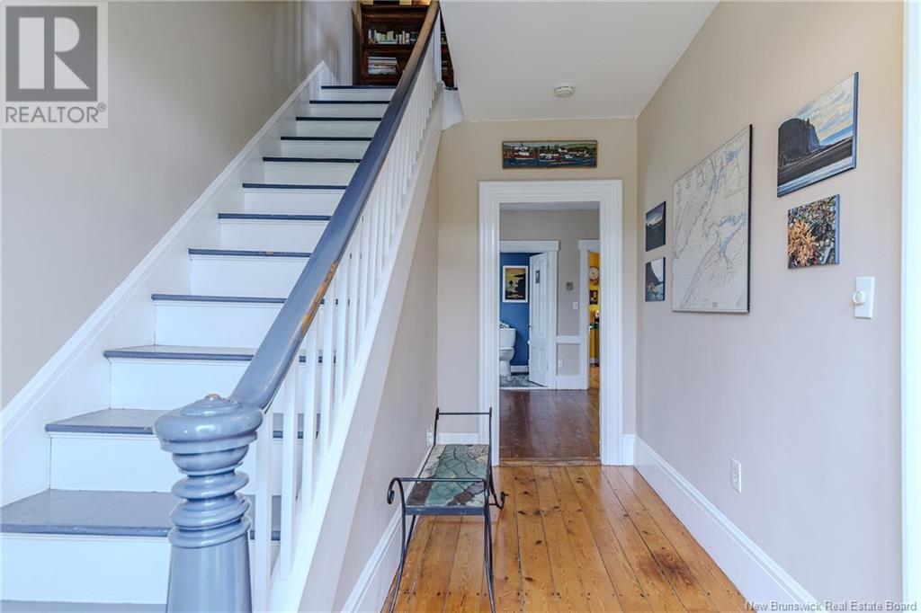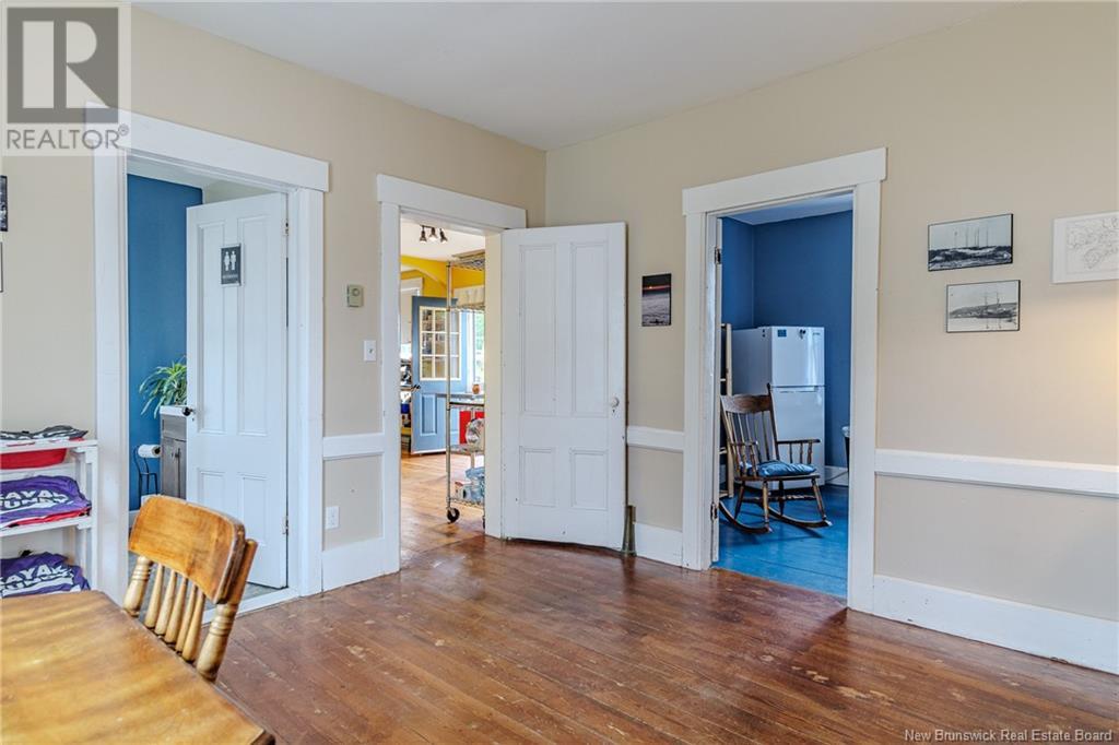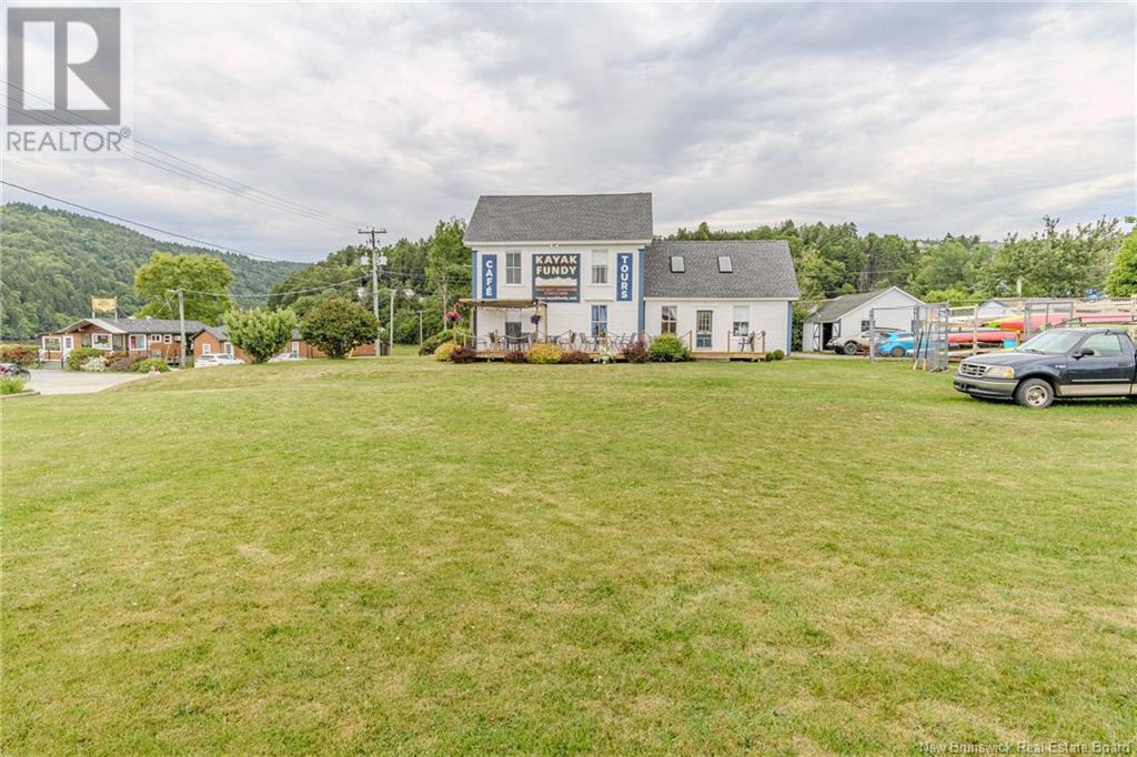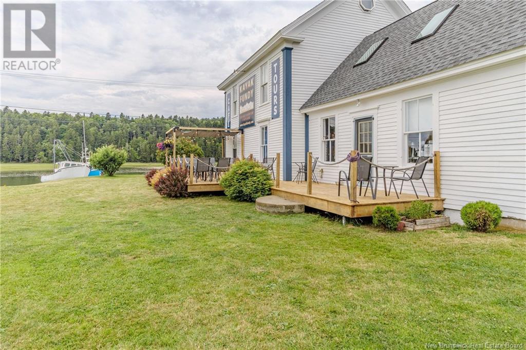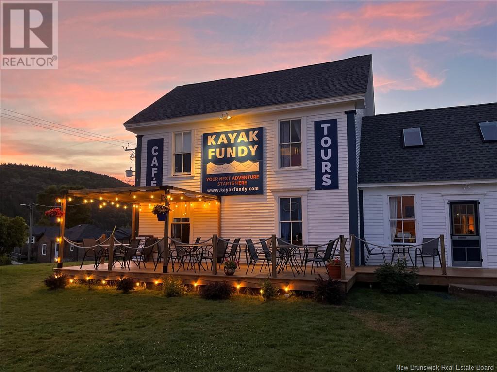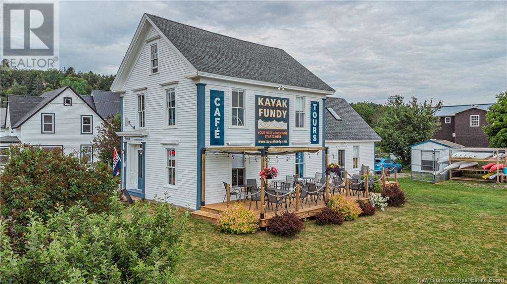 Whether you're seeking a family home by the sea, a vacation rental with character, or a small seasonal business, this is a rare offering in scenic Alma. This heritage property offers character, charm, and coastal views. Lovingly maintained, this story-and-a-half, three-bedroom residential/commercial zoned property has been operating as a seasonal kayak business and café. It presents an ideal opportunity to continue hosting guests or transition to residential living, with future potential for guest suites or expanded hospitality offerings. Inside, the generous rooms reveal historic pine wood floors, expansive windows that welcome sunlight into every cornerand offer breathtaking bay views. The kitchen flows seamlessly to an elevated deck, creating a perfect indoor-outdoor setting for breakfasts with a view or evening gatherings. Upstairs, the primary bedroom impresses with abundant space and scope to add an ensuite. A second bedroom, full bathroom, and skylit loft provide flexibilitywhether as relaxing retreat, office, or guest space. Unique heritage details aboundeach entry to the home features a one-of-a-kind grindstone step, hinting at its storied past. A large dry basement provides space for utilities and storage, and existing outbuildings add workshop or studio potential. Located a short walk from the entrance of Fundy National Parkwith its trails, waterfalls, and, beaches, this property offers lifestyle and commercial possibilities in equal measure. (id:19018)