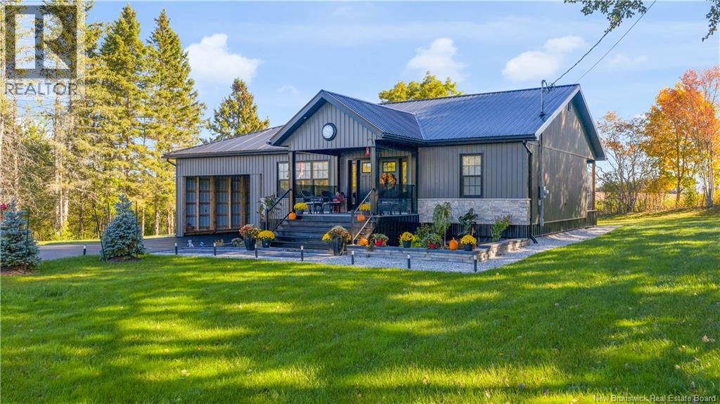 Welcome to your brand-new country home! Located only five minutes from Sussex and one minute from the number 10 highway, this newly constructed single-level living home offers many upgraded features. Enjoy your beautifully landscaped property, including lit walkways, large paved driveway, 12X16 gardening shed, front composite decking and flowerbeds. There is a large deck on the back of the home and a separate hot tub area where you can sit back and enjoy the pastoral views. The home itself is modern and move-in ready with two bedrooms with walk-in closets, an en suite bath with walk-in shower and heated floors, and an open concept living/dining and kitchen area. The kitchen has an island, quartz countertops and new appliances. Access to the large carport is directly off the kitchen and a laundry closet off the primary bathroom (also with heated floors and tub) can be found at the back of the home. A 22,000 BTU heat pump will keep everything comfortable throughout the year and a 750 gallon septic means everything is bigger and better. This home offers privacy, convenience, beauty and ease of living, call today for your private viewing! (id:19018)