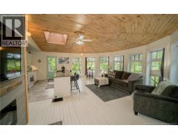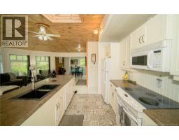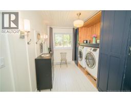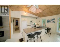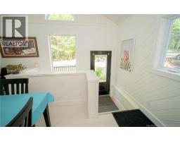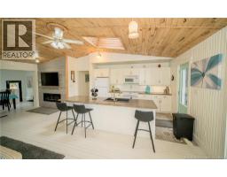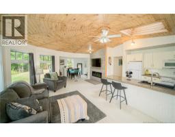 Tucked away this beautiful bungalow blends privacy, comfort, style offering a bright inviting layout with thoughtful design throughout. The open-concept layout features a dining area flowing into the kitchen living room. A striking curved wall of windows showcases serene views of the private backyard. The kitchen includes an island with seating, skylight and direct access to the expansive deckperfect for gatherings and enjoying the view, with glimpses of the Miramichi. The living room is enhanced by a striking curved wood ceiling, adding warmth and architectural charm.The bathroom is generously sized, both a shower and a soaking tub and skylight. A bedroom perfect for family or guests, while the primary suite offers plenty of space and large closet. The mudroom, with excellent storage and a convenient laundry area, leads straight to the oversized double garageoffering room for cars and all your essentials. The lower level offers storage and includes a room that could serve as a bedroom (currently non-conforming). Close to local amenities and nearby NB Trail, this property combines privacy, comfort, and convenience in a desirable setting. From the backyard, a sloping incline leads to the River, perfect for enjoying the natural surroundings. Unpack and enjoy the stunning views! All measurments are approx & to be confirmed by purchaser. (id:19018)