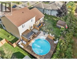165 Erinvale is a spacious two-storey 3 bedroom home in the desirable Grove Hamlet subdivision, close to schools, parks, and amenities. The entire interior was freshly repainted last year, giving the home a bright, updated feel throughout. The main level offers a large kitchen with quartz countertops, an extra-large island with generous stone surface and a brand-new KitchenAid induction range. A bright dining area, powder room, fully updated laundry room with new washer and dryer and a beautiful sunroom overlooking the backyard complete this level. The living room features a natural gas fireplace with a stone accent wall, and the double garage provides excellent storage and convenience. The home is also equipped with central air and an owned on-demand natural gas hot water heater and natural gas furnace. Upstairs, youll find three bedrooms and two full bathrooms, including the primary suite with a walk-in closet and updated ensuite. The finished basement includes a spacious TV/games room with in-floor heating, a spare bedroom, and a newly added half bath. Outside, the home offers a new composite front veranda, a fully fenced backyard, a saltwater pool and a brand-new hot tub. Bathrooms throughout have been updated with new cabinets, counters, and sinks, creating a perfect combination of comfort, function and style in one of Monctons most popular neighbourhoods. (id:19018)