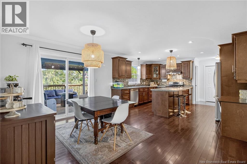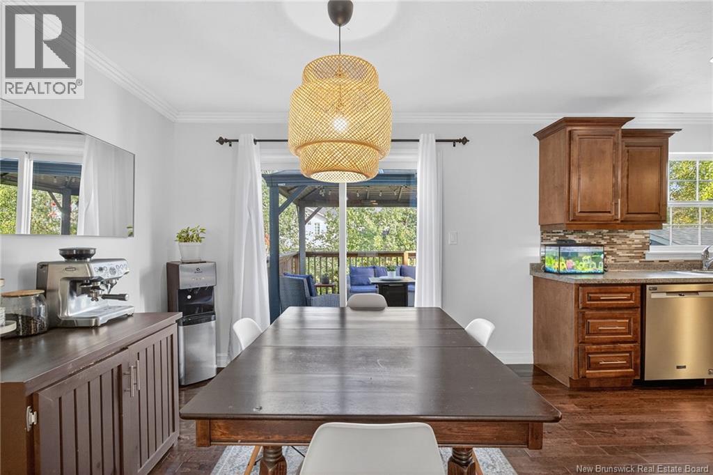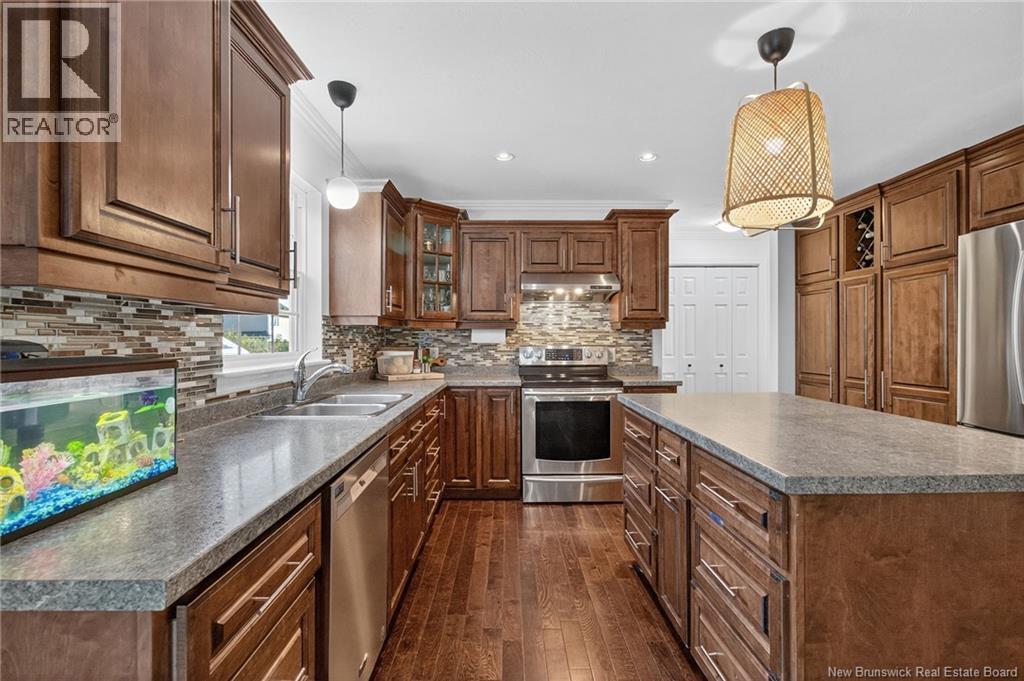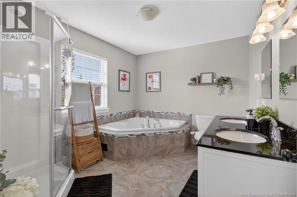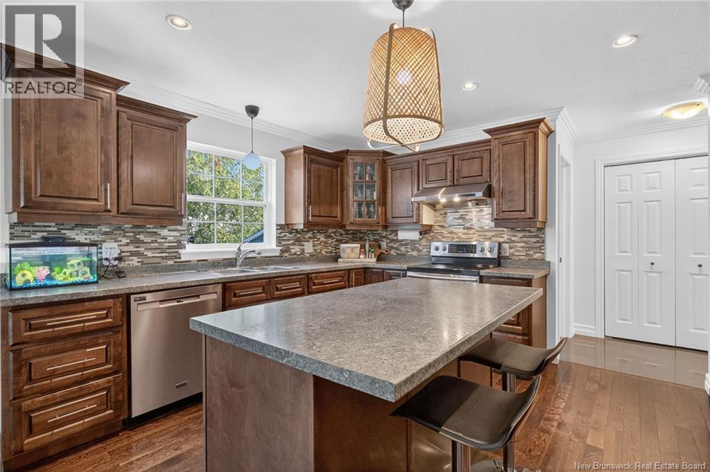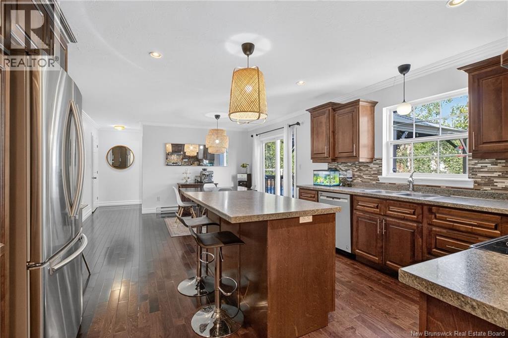 Welcome to 167 Coriander Street a beautifully maintained 3+1 bedroom family home in sought-after Moncton North! Freshly painted and move-in ready, this spacious property blends comfort, functionality, and modern style, making it the perfect place to call home. Step inside to a bright and welcoming foyer with ample storage, leading into a sun-filled living room featuring rich hardwood floors, crisp white walls, and oversized windows that flood the space with natural light. The open-concept kitchen is a chefs dream with its large center island, stainless steel appliances, built-in desk, and exceptional storage. T dining area offers seamless indoor-outdoor living with sliding doors that open to your back deck, complete with gazebo. A convenient 2-piece bath, laundry room, and garage access complete the main level. Upstairs, discover two generous bedrooms and a full 4-piece bath. The primary retreat features a spacious walk-in closet and a spa-like ensuite with double vanity, stand-up shower, and a relaxing jetted tub. The lower level features a cozy family room, fourth bedroom or office, plus a versatile partially finished area ready to transform into a home gym, playroom, or creative space. Outside, enjoy the fully fenced backyard with mature trees and a detached storage shed for all your outdoor essentials. Located in a desirable family-friendly neighborhood, close to schools, daycares, parks, shopping, and all amenities, this home truly has it all. (id:19018)