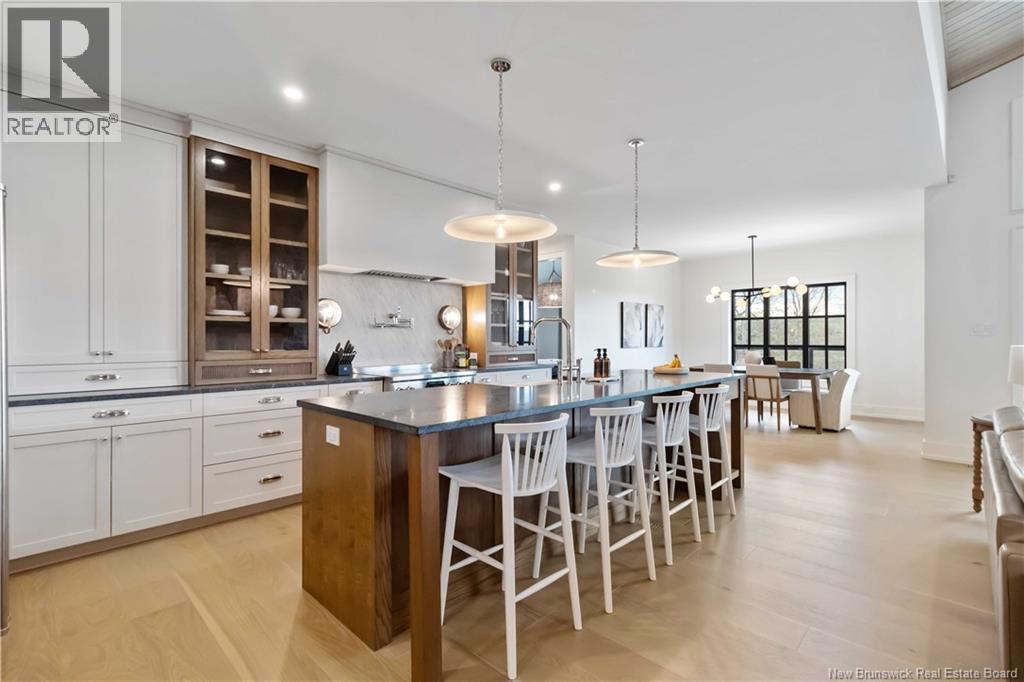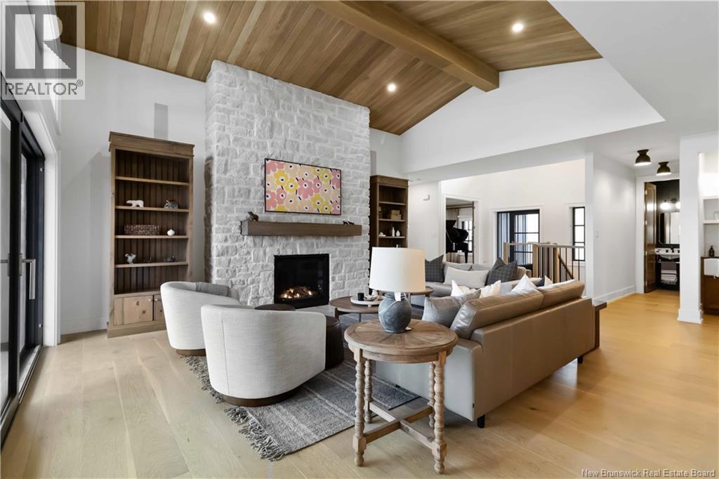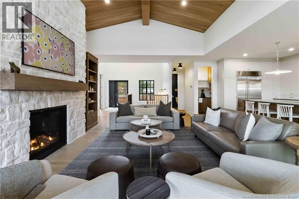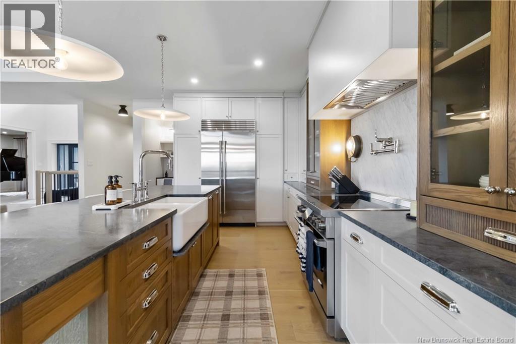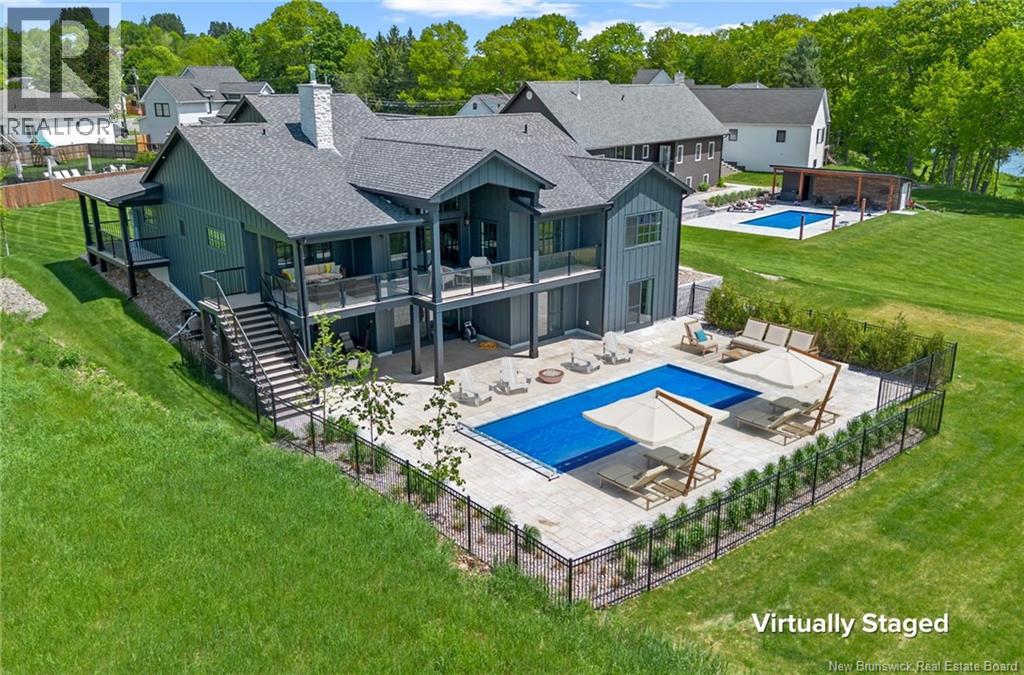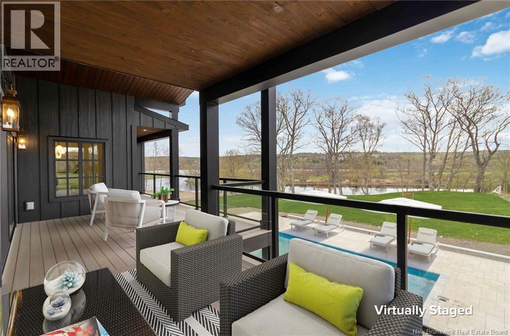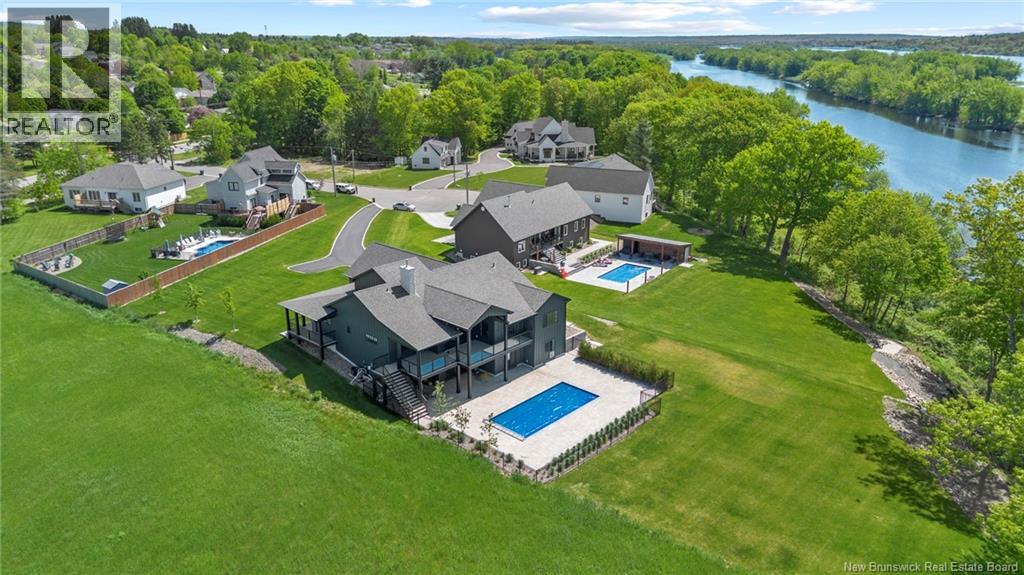 The thing about luxury isits not just about the flashiest finish or the biggest square footage. Its about what makes your shoulders drop when you walk through the door. Quality, intention and the ease that comes with a home that's built the way it should be. Thoughtfully designed & built by Holland Homes, Frederictons premier luxury builder's flagship CHMA award-winning home sitting on 1.2 acres of city waterfront. Striking exterior w/ black engineered wood siding, 3-bay garage & paver stone parking. Inside, timeless modern design meets meticulous craftsmanship; Soaring foyer leads to den w/wooden 8ft French doors, and stunning cathedral-style Great Room w/ oak plank ceiling & stone-faced gas FP. Queenstown kitchen w/ soapstone countertops, & dining which opens to covered outdoor living space facing the Southwest sunsets. Owners suite w/marble walk-in shower, custom closet cabinetry & direct access to the mudroom & laundry, and a private guest suite w/full ensuite bath. Lower level is equally impressive, walking out to the inground pool & fully finished w/ spacious entertainment room, wet bar, den w/ custom library wall, home gym & soundproofed music room. Plus, a separate guest wing incl two bdrms - both with patio doors to the walkout terrace - & full bath. With direct access to the trail system, a private path leading to the shoreline where your future boat docks just steps from your door, this 4,868 sqft home is more than a dream; its a rare opportunity to live it. (id:19018)