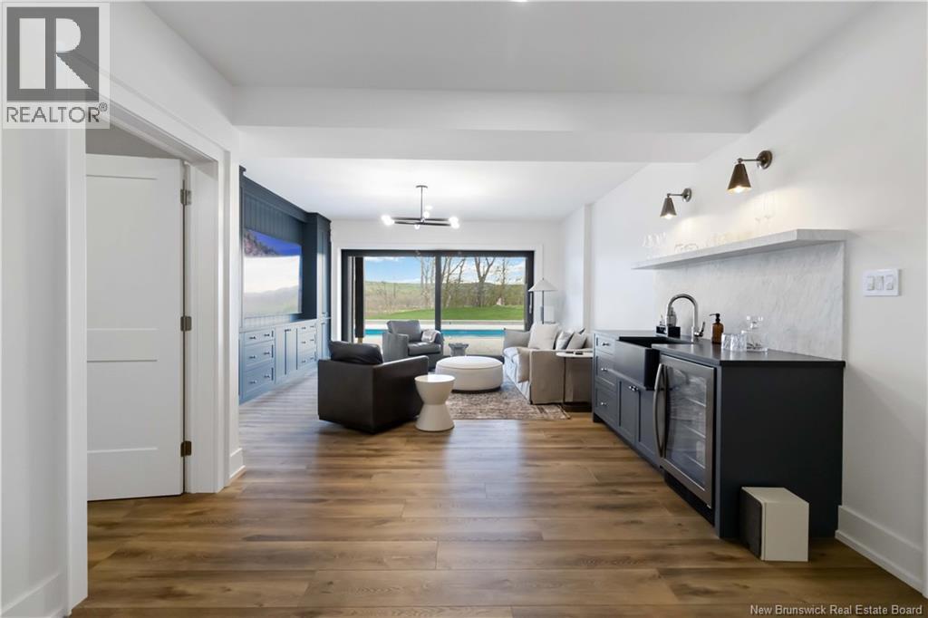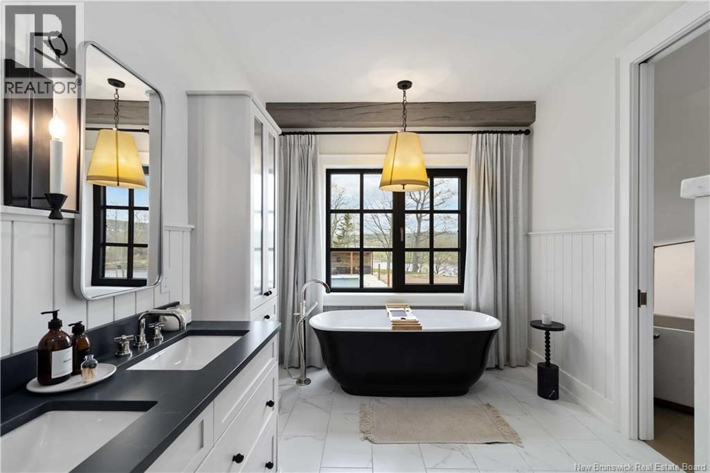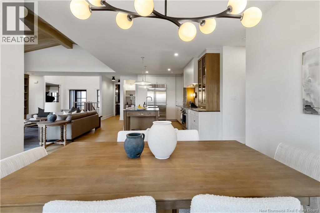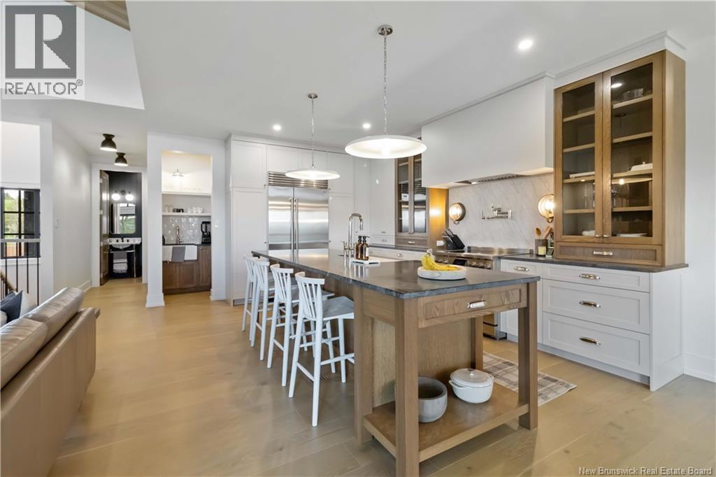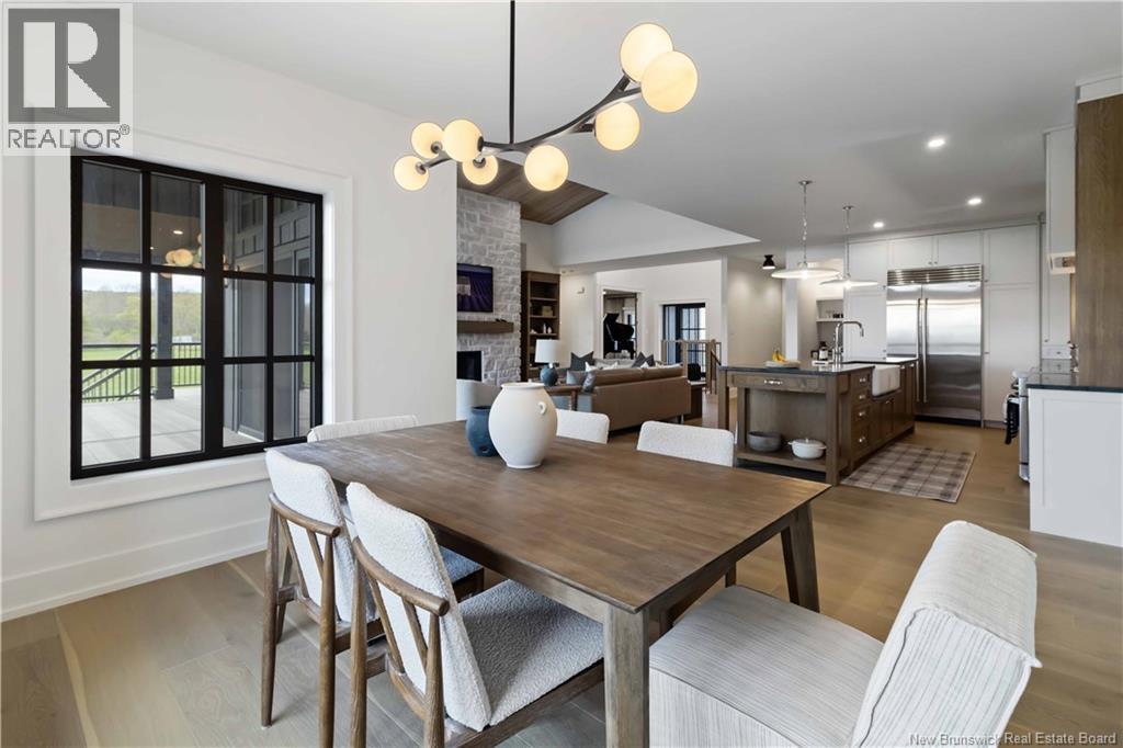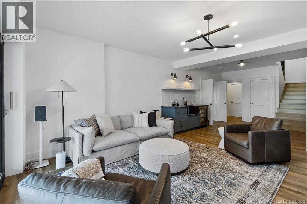 The thing about luxury isits not just about the flashiest finish or the biggest square footage. Its about what makes your shoulders drop when you walk through the door. Quality, intention and the ease that comes with a home that's built the way it should be. Thoughtfully designed & built by Holland Homes, Frederictons premier luxury builder's flagship CHMA award-winning home sitting on 1.2 acres of city waterfront. Striking exterior w/ black engineered wood siding, 3-bay garage & paver stone parking. Inside, timeless modern design meets meticulous craftsmanship; Soaring foyer leads to den w/wooden 8ft French doors, and stunning cathedral-style Great Room w/ oak plank ceiling & stone-faced gas FP. Queenstown kitchen w/ soapstone countertops, & dining which opens to covered outdoor living space facing the Southwest sunsets. Owners suite w/marble walk-in shower, custom closet cabinetry & direct access to the mudroom & laundry, and a private guest suite w/full ensuite bath. Lower level is equally impressive, walking out to the inground pool & fully finished w/ spacious entertainment room, wet bar, den w/ custom library wall, home gym & soundproofed music room. Plus, a separate guest wing incl two bdrms - both with patio doors to the walkout terrace - & full bath. With direct access to the trail system, a private path leading to the shoreline where your future boat docks just steps from your door, this 4,868 sqft home is more than a dream; its a rare opportunity to live it. (id:19018)