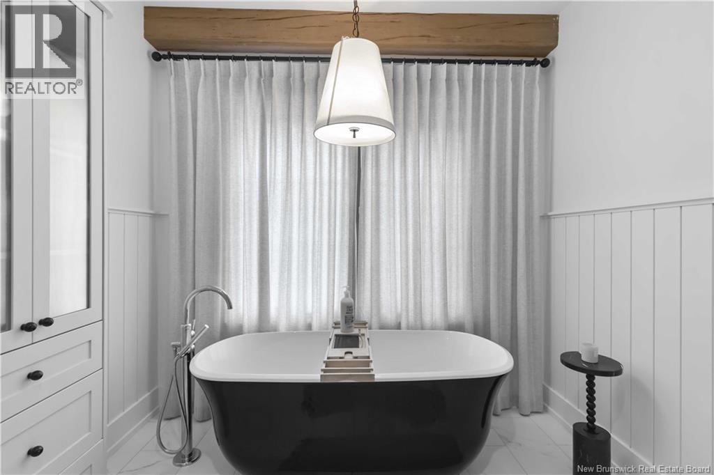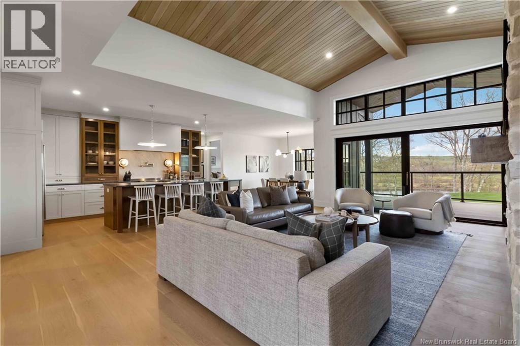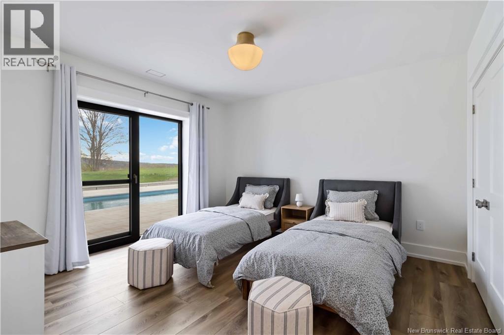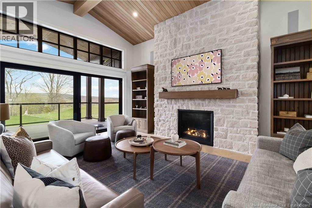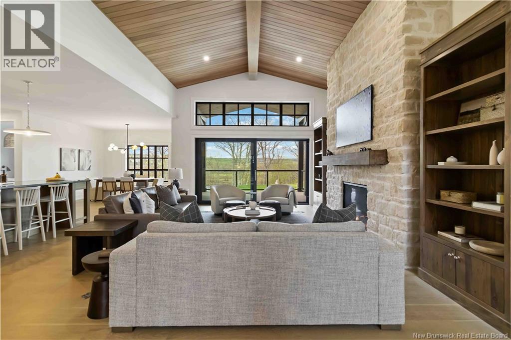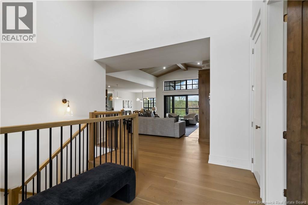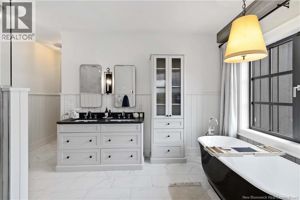 The thing about luxury isits not just about the flashiest finish or the biggest square footage. Its about what makes your shoulders drop when you walk through the door. Quality, intention and the ease that comes with a home that's built the way it should be. Thoughtfully designed & built by Holland Homes, Frederictons premier luxury builder's flagship CHMA award-winning home sitting on 1.2 acres of city waterfront. Striking exterior w/ black engineered wood siding, 3-bay garage & paver stone parking. Inside, timeless modern design meets meticulous craftsmanship; Soaring foyer leads to den w/wooden 8ft French doors, and stunning cathedral-style Great Room w/ oak plank ceiling & stone-faced gas FP. Queenstown kitchen w/ soapstone countertops, & dining which opens to covered outdoor living space facing the Southwest sunsets. Owners suite w/marble walk-in shower, custom closet cabinetry & direct access to the mudroom & laundry, and a private guest suite w/full ensuite bath. Lower level is equally impressive, walking out to the inground pool & fully finished w/ spacious entertainment room, wet bar, den w/ custom library wall, home gym & soundproofed music room. Plus, a separate guest wing incl two bdrms - both with patio doors to the walkout terrace - & full bath. With direct access to the trail system, a private path leading to the shoreline where your future boat docks just steps from your door, this 4,868 sqft home is more than a dream; its a rare opportunity to live it. (id:19018)