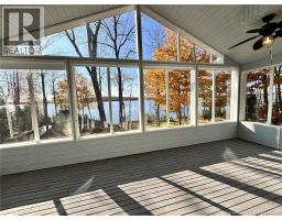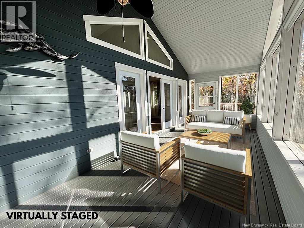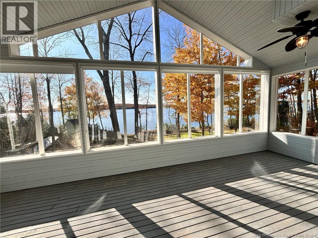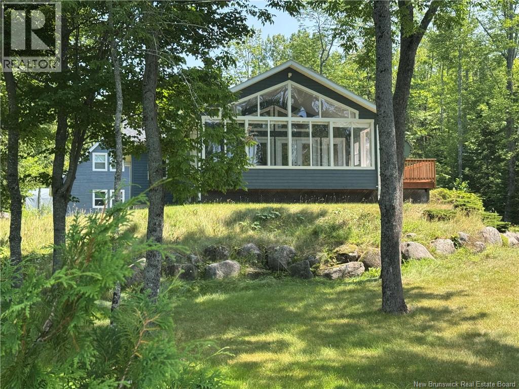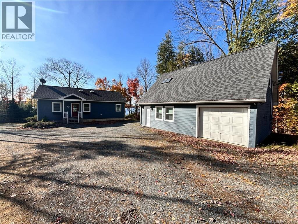 This beautiful year round home sits on a 180 ft water frontage of the pristine water of 22 mile east grand lake where the boating is awesome and if you like to fish you will be in heaven as there is land locked salmon, pickerel, perch and trout. The lake also connects with North Lake and is minutes from 2 border crossings. The home is heated with a geothermal system and a wood burning fireplace. The main floor has open concept kitchen living room. Main floor primary bedroom and ensuite with an air jet tub. here is a 3 season porch across the front of the home. Two other bedrooms , laundry and office area complete that level. If you have an overflow of guests the bunkhouse is ready. There you have 2 more bedrooms a 3/4 bath kitchen with counter top stove and living room and eating area as well as a room for laundry. Garage is heated. Two electrical panels and 1 meter. The bunkhouse has been renovated including floors, plumbing, electrical, new kitchen and electric fireplace. Arsenic filter, iron filter, water softener system including UV filter last serviced 2023. Geo thermal serviced in 2023. Septic emptied 2023. Property only occupied 2 months since then. Both units painted through, New deck and stairs at front door and new porch steps at back door, installed bedroom closet. Grayson Lane is maintained by a community group costing $200 a year. Taxes reflect non owner occupancy. (id:19018)
