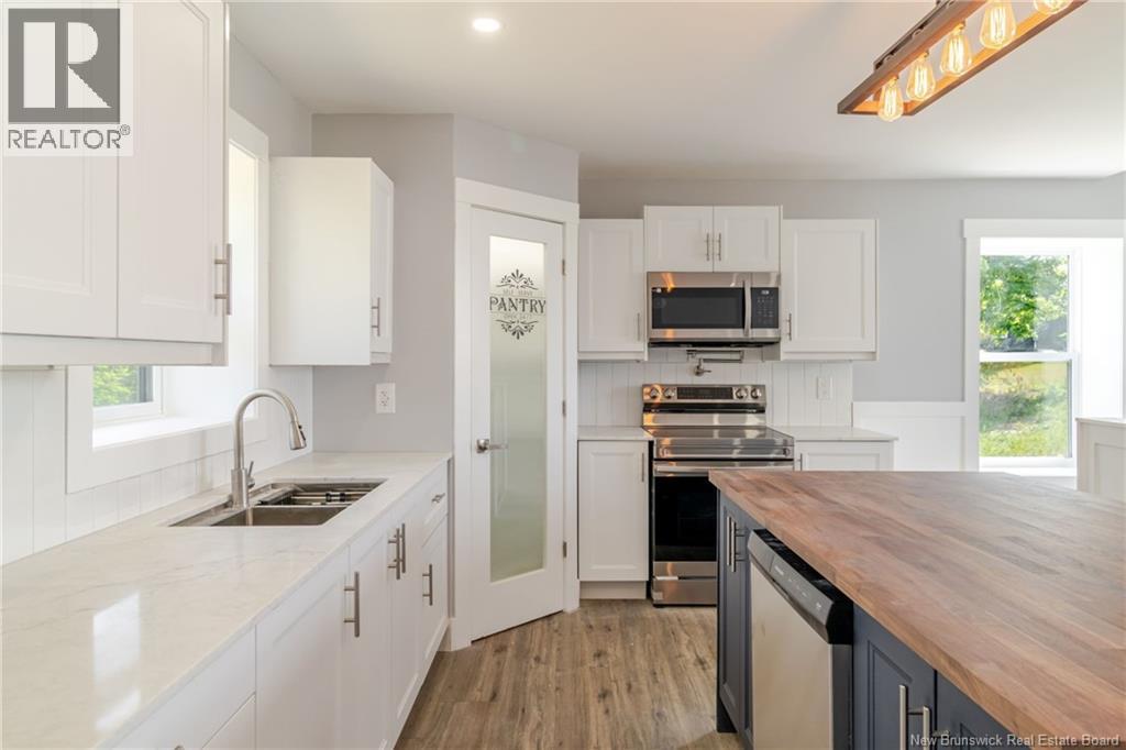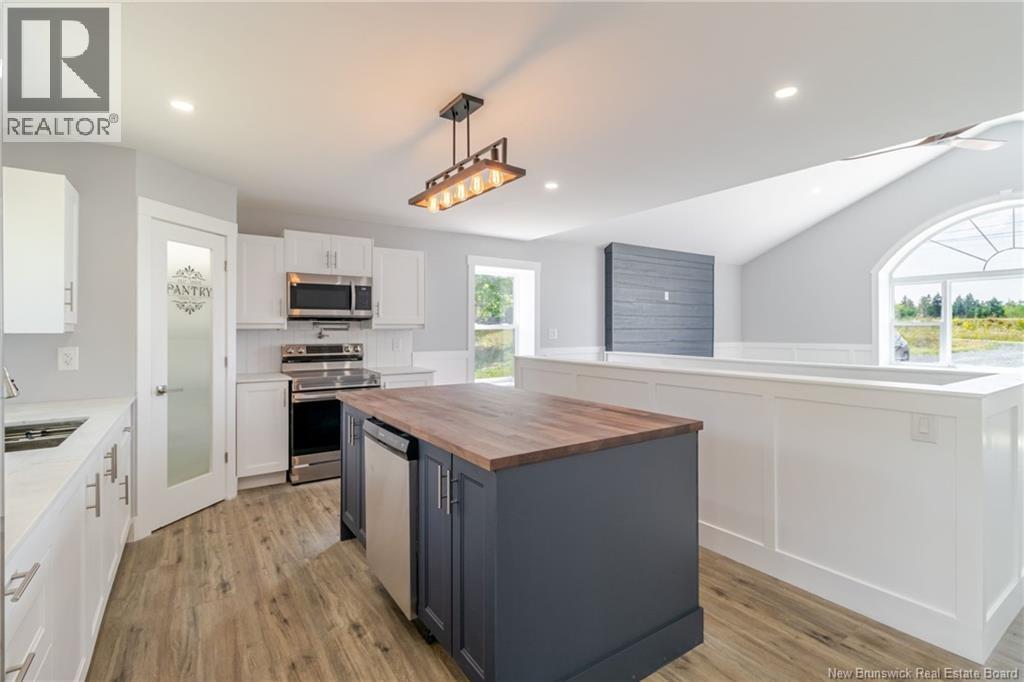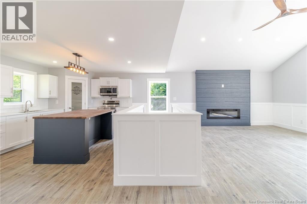 Build with ICF from the ground up, all the foundation and the walls are ICF which gives you a very well insulated home to keep you cozy and warm in the winter months without the extravagant power bill. Welcome to country living at its best. Twenty minutes from downtown Fredericton. This modern new construction has all the bells and whistles. The main level has three good size bedrooms, the primary bedroom has a 3-piece ensuite with walk-in shower and double sink and a large walk-in closet. The beautiful eat-in kitchen is open to a huge living room with cathedral ceiling, a large island with butcher block countertop, lots of beautiful shaker door cupboards, lots of counterspace space, modern appliances, and large pantry. Living room has wall decorative electric fireplace cathedral ceiling and very large arch window to light up your modern open space. Sliding doors to deck off of the dining space area. From the open space is a wide staircase that leads you to a walk out basement. The basement is fully finished with 2 more bedrooms and a three-piece bath. There also is an office, a large theater room, get the popcorns ready for your movie night to entertain your family and friends. 16x24 Detached Garage. This home is modern, 20 minutes from Fredericton and close to Harvey and Nackawic. Very easy commute from the 2-lane highway. (id:19018)