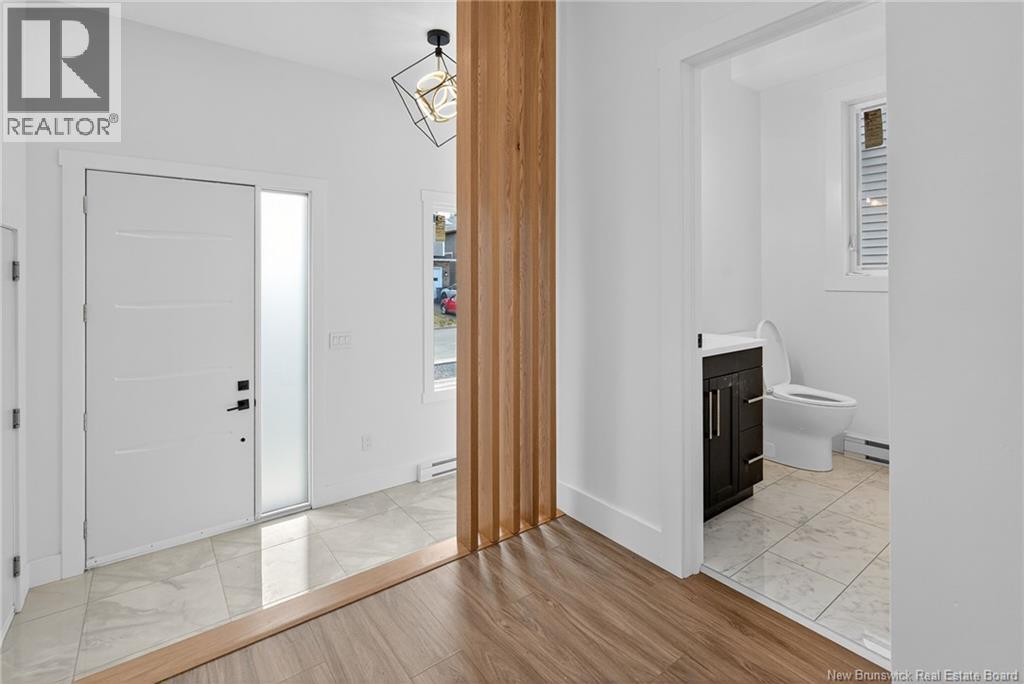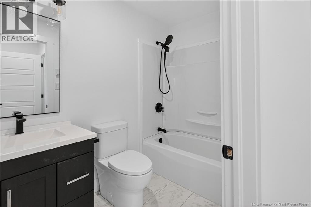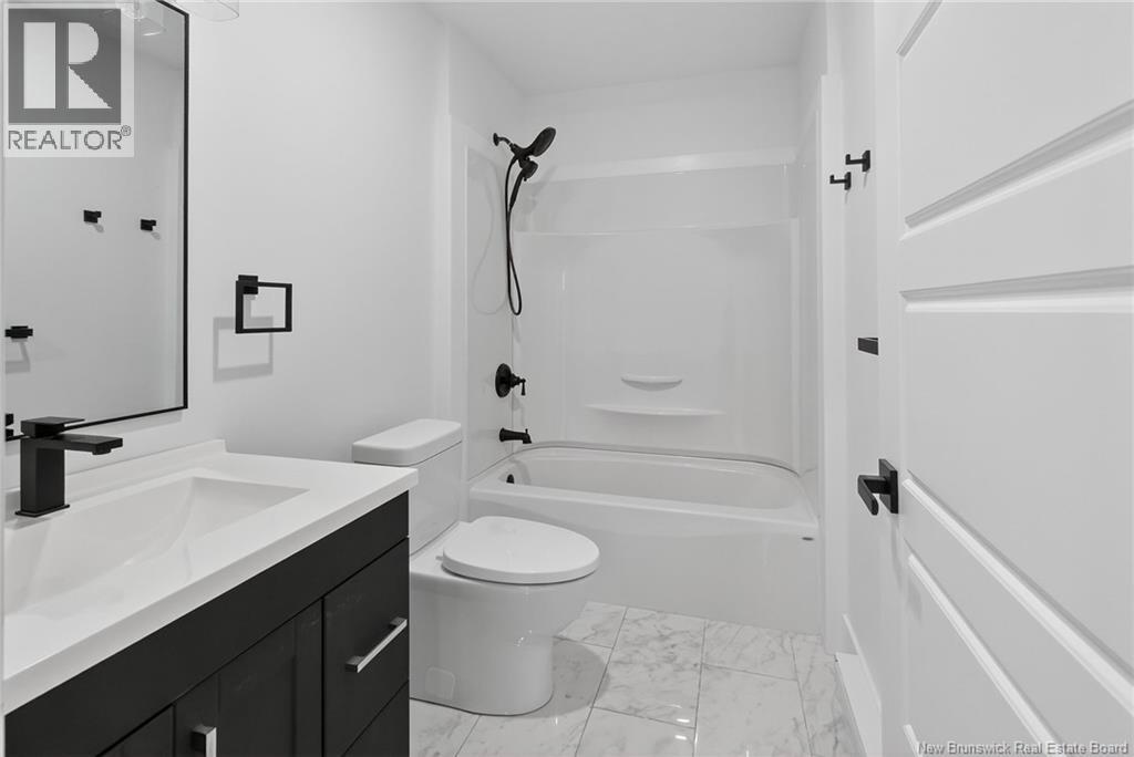 18 Weavers Way is a NEW CONSTRUCTION (5 bdrm+3.5 bath) ready for a family to move in. An energy efficient home, ICF FINISHED BASEMENT, with 9-foot ceiling on main floor & rigid insulation on the exterior walls . It is within the city, where you can enjoy full family life: 8 min to Fredericton downtown and 4 min. To Walmart/kent/Canadian Tire & 3 min to Willie O Ree Sport Complex. It has everything to offer a family with cozy and comfortable living. When you enter through a covered front veranda (concrete deck), it leads into a spacious high ceiling 11ft front foyer & a two piece guest bathroom. The living area is open concept that creates a fluid space between the living room, dining space, and kitchen area. The custom kitchen comes with an island, quartz countertop,lots of counter space. The patio door from the dining area gives you access to a deck perfect for barbecues and family relaxation. The upper level has 3 very spacious bedrooms and a den/office (can be a bedroom too), a main bath & laundry closet. The master suite has a walk-in closet, ensuite bath with soaker tub, stand-alone shower & double vanity. The basement area is FULLY FINISHED with a full bath, a large bedroom, a family room & storage space. Home comes with 7 years Atlantic Home Warranty, ductless heat pump with baseboard backup. The listing REALTOR® is a director for the company who is the vendor & is a Licensed REALTOR®. Builder rebate goes to builder. Garage door: 9ftx9ft (id:19018)