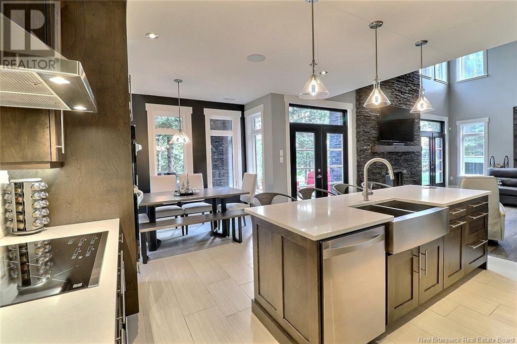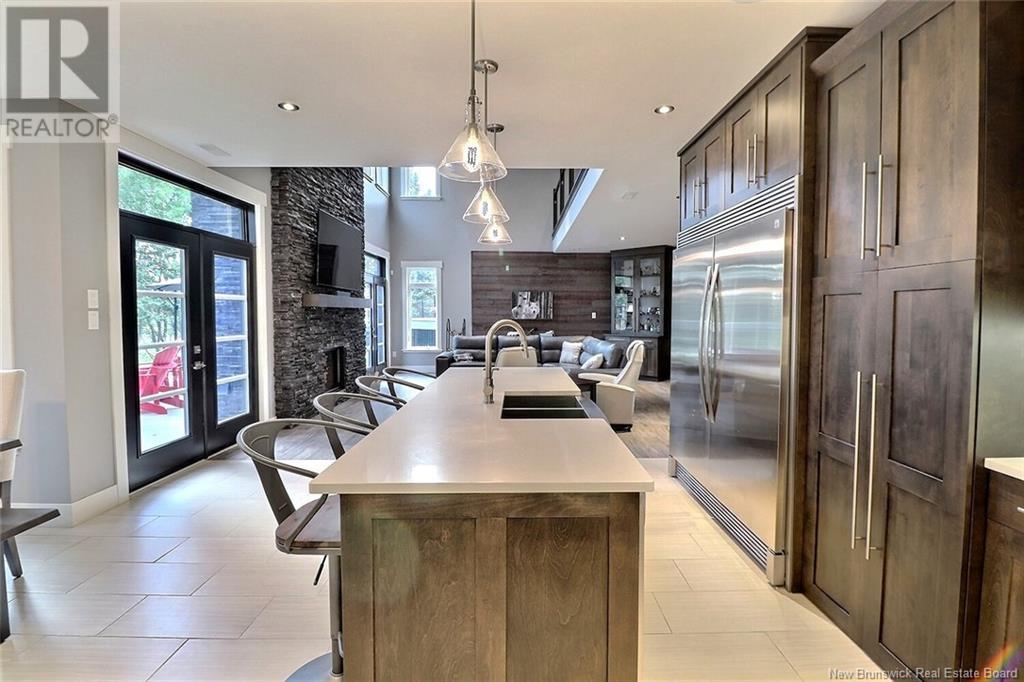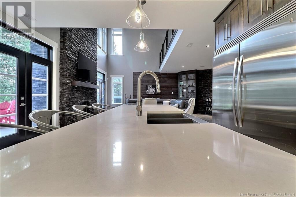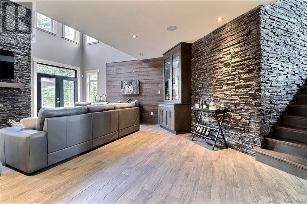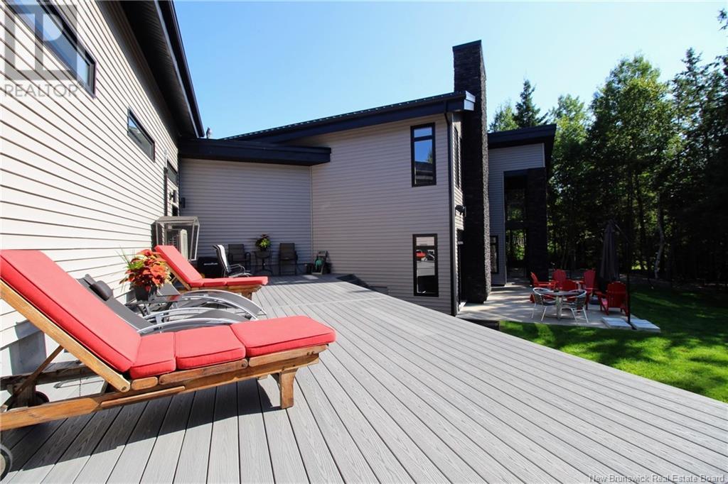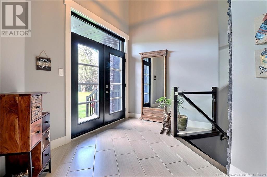 AMAZING RESORT- STYLE LIVING - WATERFRONT HOME - LUXURY THROUGHOUT Architecturally stunning, this custom home has lots to offer. From fishing in your backyard to enjoying a beautiful sail on your kayak, canoe or small watercraft. Sitting on 1.8 acres on the Kouchibouguac River, this house has an attached 50x35 (12ceilings) three garage doors including a 10' high door giving you access to store all your toys, boat an RV, with newly installed mini split in 2021 giving you a heat/cool/humidity control working environment year round.This home is a must see to appreciate the stunning views of the river and modern and sleek design of the upper and lower levels exquisitely finished with cultured stone, high end glass railings, 24 sloped ceilings and ceramic tiles throughout with in floor radiant heat roughed-in for the entire living space on lower level.This home also features a beautiful floor to ceiling custom luxury in-wall wood stove fireplace and modern mantel, a state of the art kitchen with QUARTZ countertops, hidden walk in pantry and high end stainless steel appliances. The lower level also has a full bathroom and extra room that could be an office.Upstairs, the loft is overlooking the river and the living room area and fireplace. The master bedroom is complete with balcony overlooking the river, tray ceiling, walk in closet, soaker tub and cheater door to the 4 pieces bathroom with laundry. This level also features two other bedrooms. (id:19018)