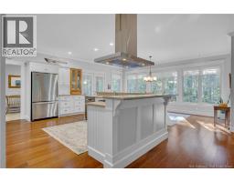 Breathtakingly beautiful architect designed home in the heart of coveted K Park. Perfectly crafted by Glenhar Construction, premier high end builders with the best of building specifications & materials throughout. Lifestyle at its very finest in this amazing family oriented neighbourhood, so nicely located and surrounded by the Kennebecasis River with its own private beach, school, and a variety of community activities like no other. Main level boasts an impressive open concept plan, kitchen with generous pantry, large L shaped island, dining area with wall of windows overlooking an incredible backyard oasis. Large primary bedroom/ensuite and walk-in closet are luxuriously appointed, office with built ins is nicely designed amazing + delightful sunroom, and large mudroom with half bath complete the main level. Lower level is also fully finished with 2 generous bedrooms, large bath and expansive family room all boasting large bright windows along with a large laundry area also equipped with an amazing high end ceder sauna. Nothing spared in this home, from elegant crown moulding throughout, finest quality materials, 9-foot ceilings on both levels, hot water in floor heating on the lower level, fully ducted heat pump system throughout and ICF foundation, (laundry hookups in place on main level). Absolutely spectacular curb appeal as well with impressive front porch area + back deck surrounded by incredible landscaping. Rare opportunity to own this perfect home Is here. (id:19018)