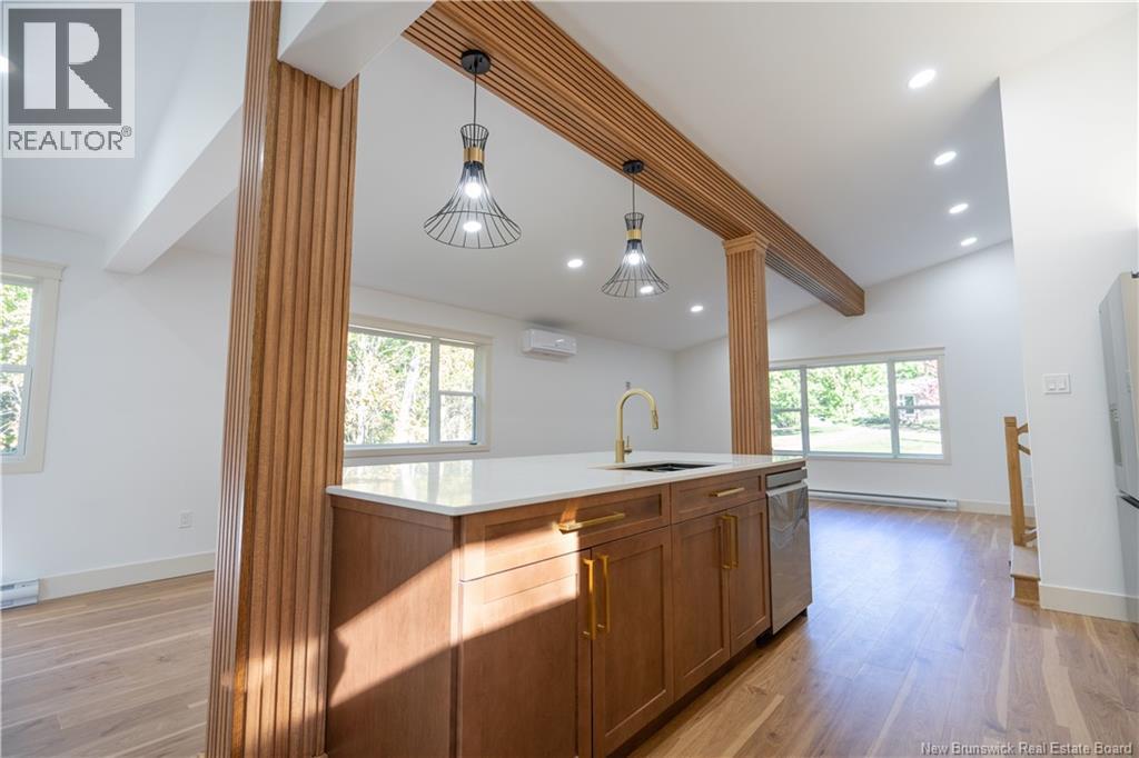 Welcome to 2 Ian Crescent a stunning 4-bed, 2-bath home in beautiful Rothesay. Completely rebuilt from the core, this home offers the comfort and peace of mind of a brand-new property. The main level makes a bold first impression with heated white-tile floors in the entry, a spacious office (or spare bedroom), a 3-piece bath, large laundry, and a bright mudroom with secondary entry perfect for messy days. The second level is the heart of the home, with soaring ceilings and an open-concept living, kitchen, and dining area. A coffee bar adds convenience, while patio doors lead to the large back deck for effortless access from the kitchen to the barbecue. Upstairs features a large primary bedroom, two additional bedrooms, and a spacious 3-piece bath. The fully finished basement adds versatility with a fourth bedroom, storage, and a large living room with an electrical fireplace. Perfect for those cozy movie nights. Outdoors, enjoy .79 acres and a landscaped yard, and an attached storage shed ideal for gear, tools, kayaks, etc. The newly constructed detached double garage offers plenty of space for your vehicles, storage, or even a workshop, or all three. Extensive upgrades include new roof, windows, doors, insulation (R24 walls/R50 attic), electrical, sewer line, plumbing, flooring, driveway, landscaping, garage, and a complete interior renovation effectively a brand-new home ready for its next chapter. (id:19018)