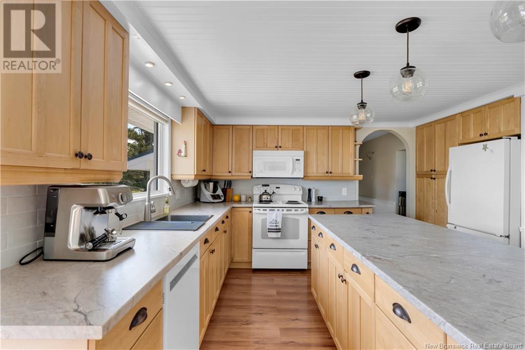Welcome to 20 Chemin Jaillet, nestled in the heart of beautiful, Grande-Digue New Brunswick, this well-maintained home is a rare gem thats sure to impress. The house is literally steps away from a gorgeous beach and all your water sport activities awaits. Proudly owned and cared for over the last 15 years, this property sits on a triple lots, so you have room to expand or simply more land to enjoy. The home offers stunning ocean views and a layout designed for comfort and relaxation. The kitchen views alone are breathtaking. Inside, youll find 3 bedrooms and 2 full bathrooms. Two bedrooms are located on the main floor, while the third is in the finished basement. The primary suite includes a private ensuite with a soaker tub, and the second bathroom features a full tub/shower combo. The updated kitchen includes modern appliances, and the mini-split system ensures comfort year-round. A wood stove in the living room adds a cozy touch for winter evenings spent with family and friends. Outside, the home has been remodelled with a durable steel roof and features a spacious detached garage, perfect for hobbyists or extra storage. In the backyard, enjoy a private deck and a 3-year-old hot tub the perfect way to unwind after a day at the beach, just a short walk away. Whether youre looking for a charming cottage or a year-round home by the sea, this property delivers it all. Book your showing today with your favourite realtor. (id:19018)