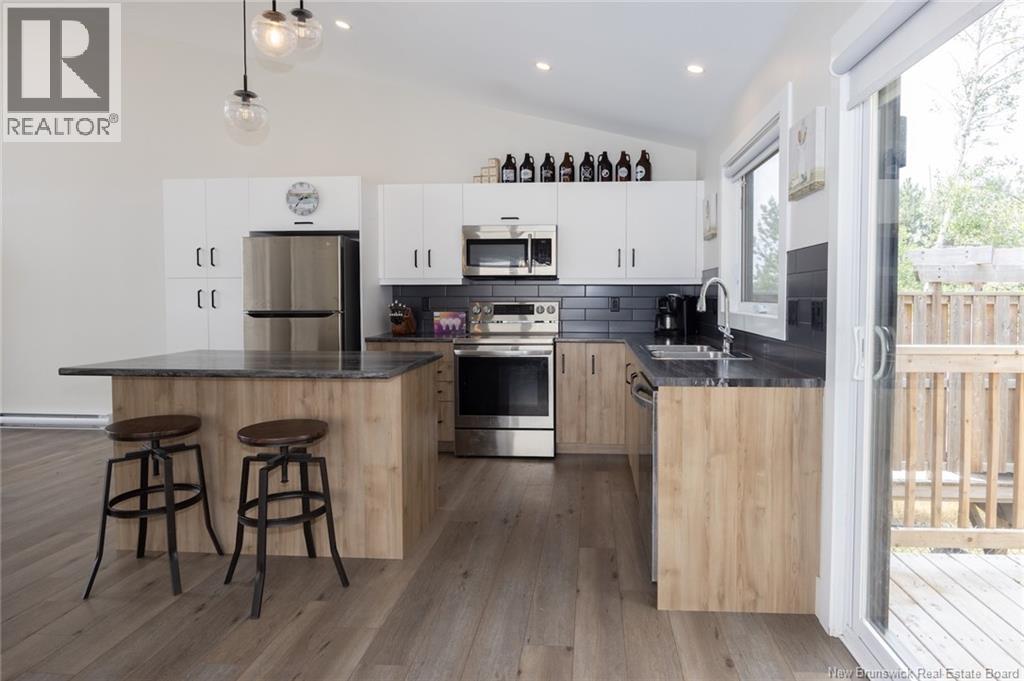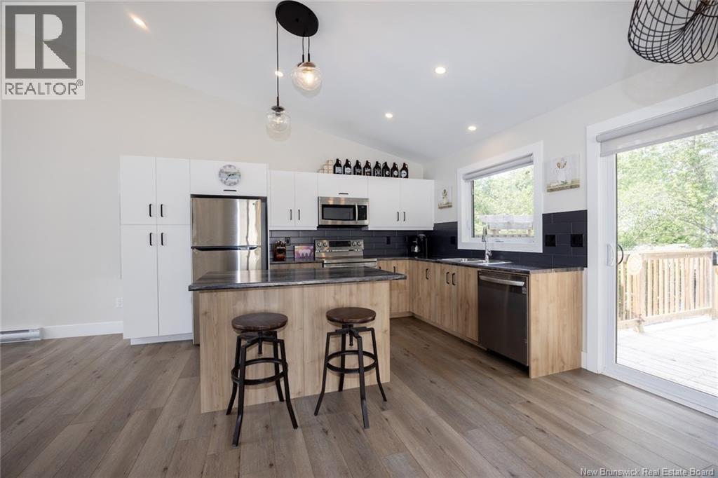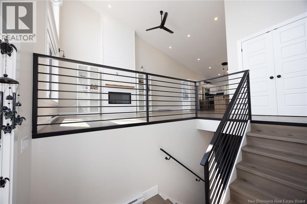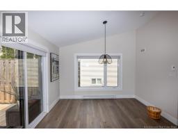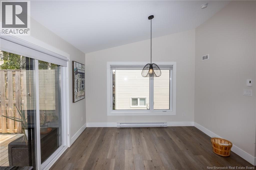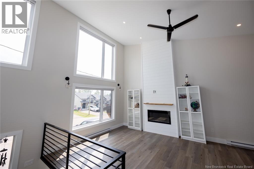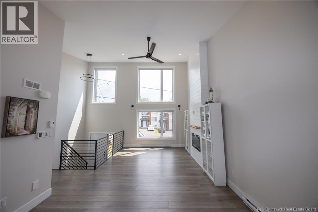 Stylish, modern, and move-in ready! This stunning end-unit townhome boasts 16-ft cathedral ceilings, large windows, and a sleek architectural design that maximizes light and space. The open-concept main floor features a bright kitchen with centre island, beautiful finishes, and all appliances included. The dining and living areas flow seamlessly, highlighted by a shiplap accent wall and built-in electric fireplace. A 2-pc bathroom and sliding door open to a 12x12 back deck and fully fenced yard, perfect for relaxing or entertaining. The fully finished split-level layout includes 3 spacious bedrooms downstairs, a 4-pc bathroom, laundry closet, and storage. Durable vinyl plank flooring runs throughout the home. Stay comfortable year-round with a heat pump providing cozy warmth in winter and cool relief in summer. Additional features include central vac, ECO HRV system, and extra outdoor space thanks to the end-unit location. Nestled in a quiet neighborhood just minutes from shops, the airport, and with easy access to beaches, this home offers the best of comfort, convenience, and East Coast living. A true gem in a prime location. (id:19018)