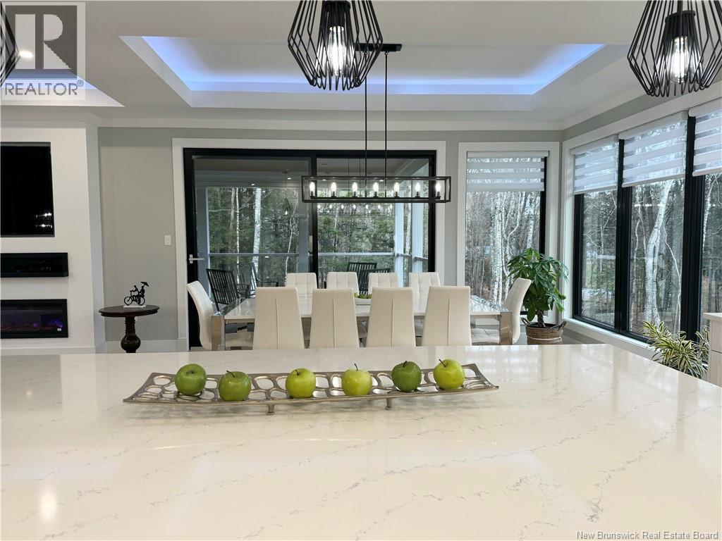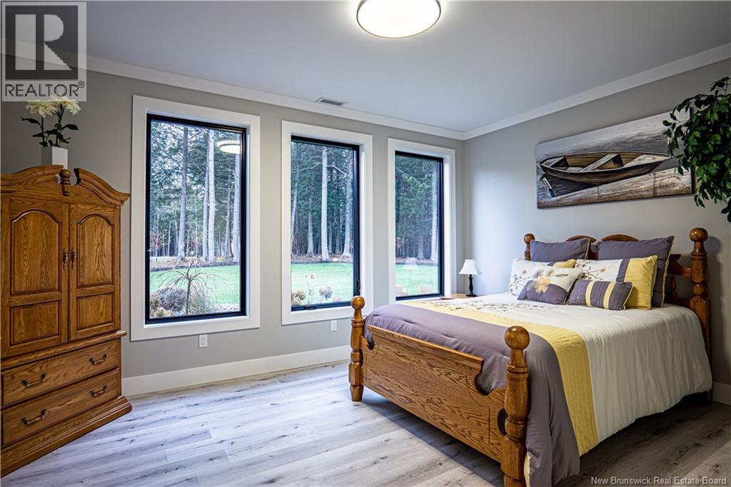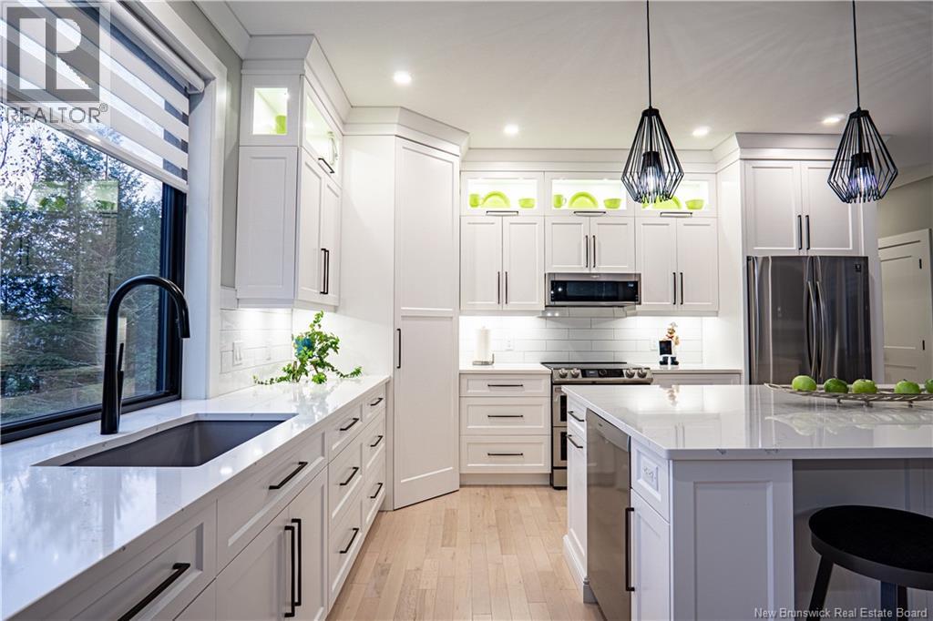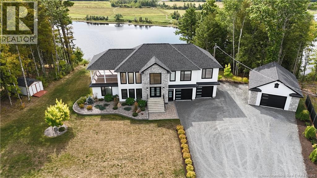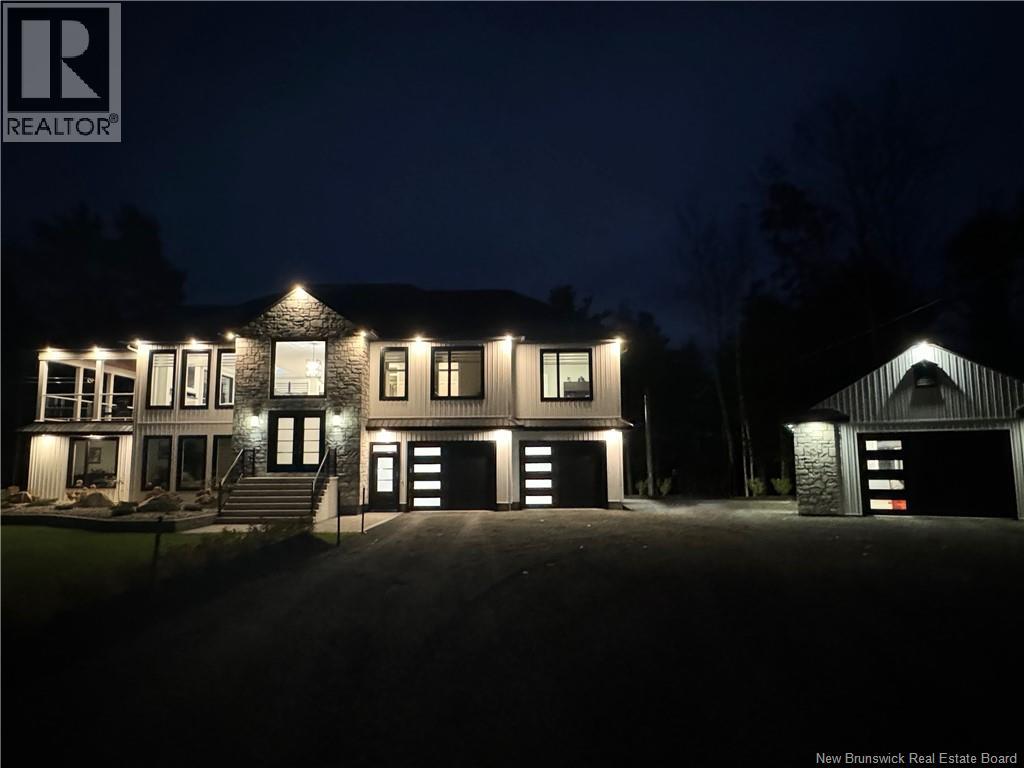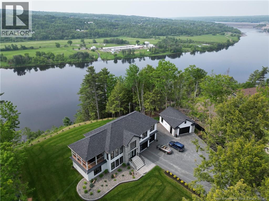 Looking for an escape from the city? Check out this little oasis that is only 15 minutes from Fredericton. Overlooking the Saint John River where you can enjoy the most amazing sunsets and sunrises. This custom built split entry has an open layout living area, 10' illuminated tray ceiling with a walkout to a covered balcony. The kitchen has quartz countertops accenting the white cabinetry with LED cabinet lighting, stainless steel appliances (all included), great walk-in pantry, and a huge 10' centre island to have a seat or always needed extra counter space. Cosy up with a good book next to the fireplace and take in the amazing views while sipping on your favourite Bourdeau. The primary has a spacious 5 piece ensuite, which also takes in the amazing view, has a Fleurco soaker tub & tiled shower, quartz counter with a double vanity, custom built walk in closet and the convenience of the laundry room just off the ensuite. The fully insulated garages (yes 2) are heated with ductless heat pumps, graded concrete floors to allow water escape via drain, and WiFi compatible door openers. The detached garage has an additional 100amp panel added for future power requirements & a central vac. The attached garage has vac ports as well as lots of storage room & hot/cold water. Once you drive up the LED lit driveway to this property, you will want to call this place HOME. (id:19018)