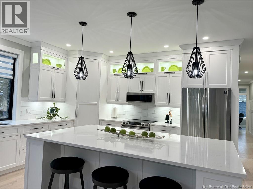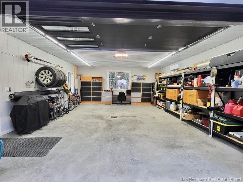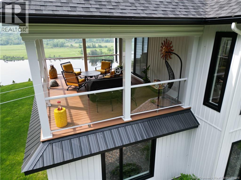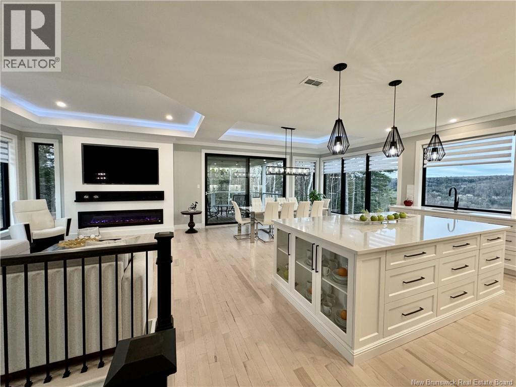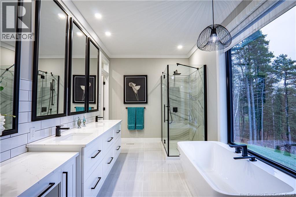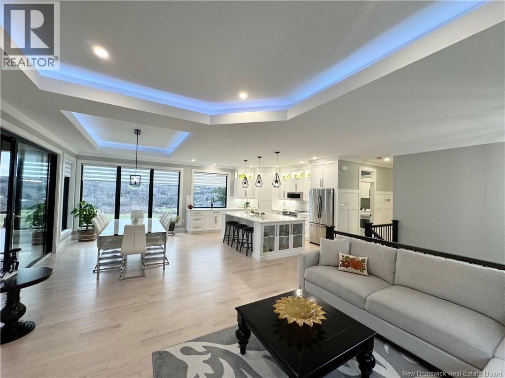 Looking for an escape from the city? Check out this little oasis that is only 15 minutes from Fredericton. Overlooking the Saint John River where you can enjoy the most amazing sunsets and sunrises. This custom built split entry has an open layout living area, 10' illuminated tray ceiling with a walkout to a covered balcony. The kitchen has quartz countertops accenting the white cabinetry with LED cabinet lighting, stainless steel appliances (all included), great walk-in pantry, and a huge 10' centre island to have a seat or always needed extra counter space. Cosy up with a good book next to the fireplace and take in the amazing views while sipping on your favourite Bourdeau. The primary has a spacious 5 piece ensuite, which also takes in the amazing view, has a Fleurco soaker tub & tiled shower, quartz counter with a double vanity, custom built walk in closet and the convenience of the laundry room just off the ensuite. The fully insulated garages (yes 2) are heated with ductless heat pumps, graded concrete floors to allow water escape via drain, and WiFi compatible door openers. The detached garage has an additional 100amp panel added for future power requirements & a central vac. The attached garage has vac ports as well as lots of storage room & hot/cold water. Once you drive up the LED lit driveway to this property, you will want to call this place HOME. (id:19018)