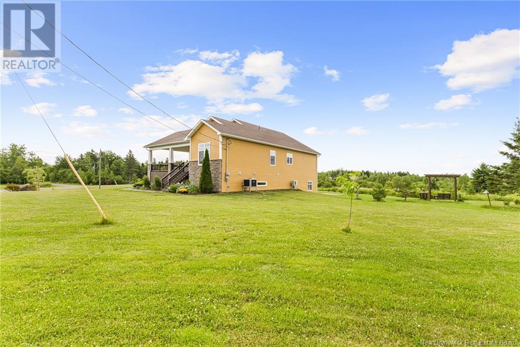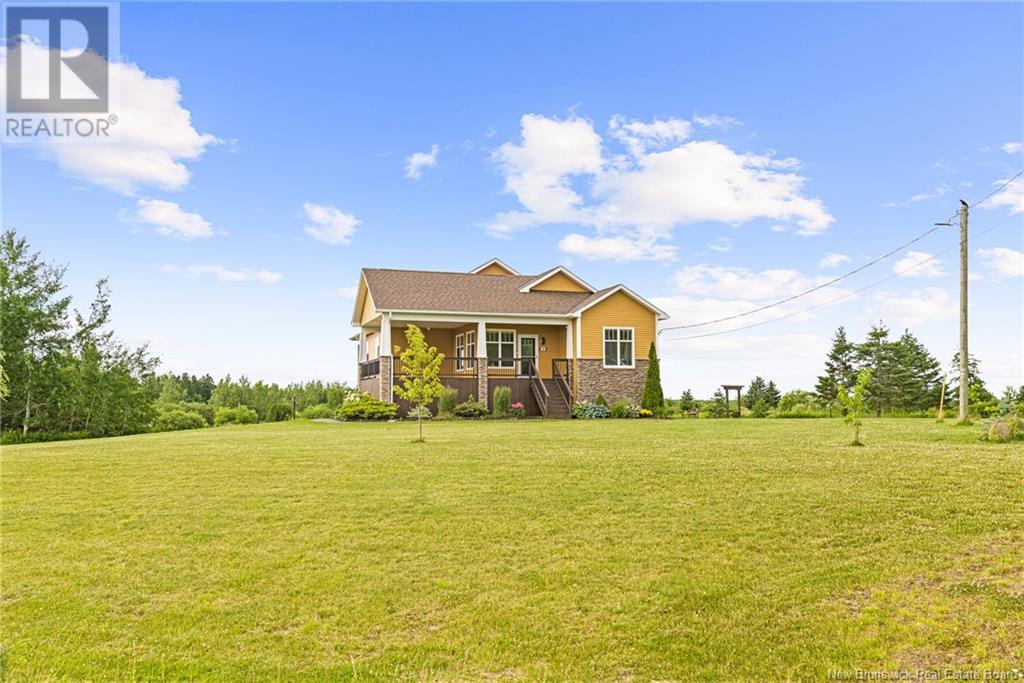*** CHARMING FULLY FINISHED BUNGALOW ON 1 ACRE LOT // HUGE ATTACHED GARAGE WITH MINI-SPLIT // FORCED AIR HEAT PUMP // BEAUTIFUL LANDSCAPING AND CURB APPEAL *** Welcome to 24 Briar Rose in Ammon, a well-maintained home nestled on a BEAUTIFULLY LANDSCAPED 1 ACRE LOT in a peaceful country setting, just minutes from Moncton. Built in 2017, this home offers nice curb appeal with its cultured stone exterior accent and massive wrap-around covered veranda with pot lights for an ideal evening setting. Inside, a welcoming main living area features 9 FT CEILINGS and LARGE WINDOWS for natural light. The MODERN white kitchen with ISLAND flows into the dining area with patio doors to a SECOND COVERED DECK overlooking your backyard that is ideal for summer nights by a fire pit. The living room features an ACCENT WALL with TV mount and ELECTRIC FIREPLACE. The main floor also includes a spacious primary bedroom, 2 additional good size bedrooms, 4pc bath with soaker tub and walk-in shower, plus a convenient laundry room with cabinets and sink. Downstairs, the fully finished basement adds a family room, office, and 3pc bath. The attached 32x25 GARAGE with a 23x12 BONUS BUMP-OUT offers endless flexibility for vehicles, hobbies, workshop, exercise space, or storage. Additional highlights include a huge paved driveway, year-round CLIMATE CONTROL, GENERATOR BACKUP PANEL AND PLUG, central vacuum, and air exchanger. This home does not disappoint! Be sure to visit soon! (id:19018)