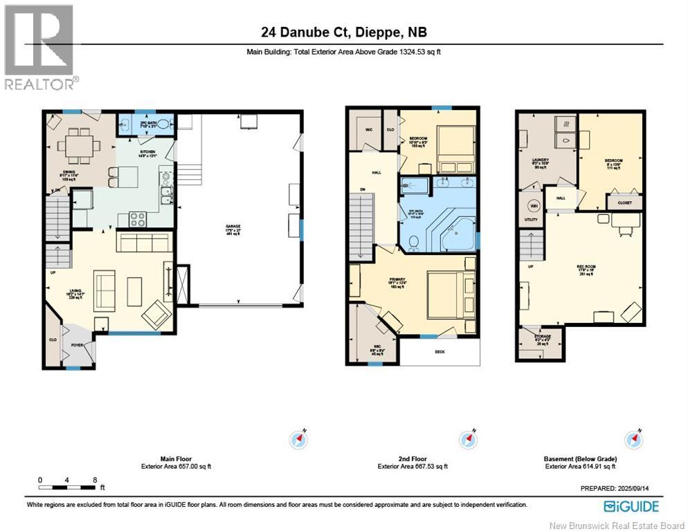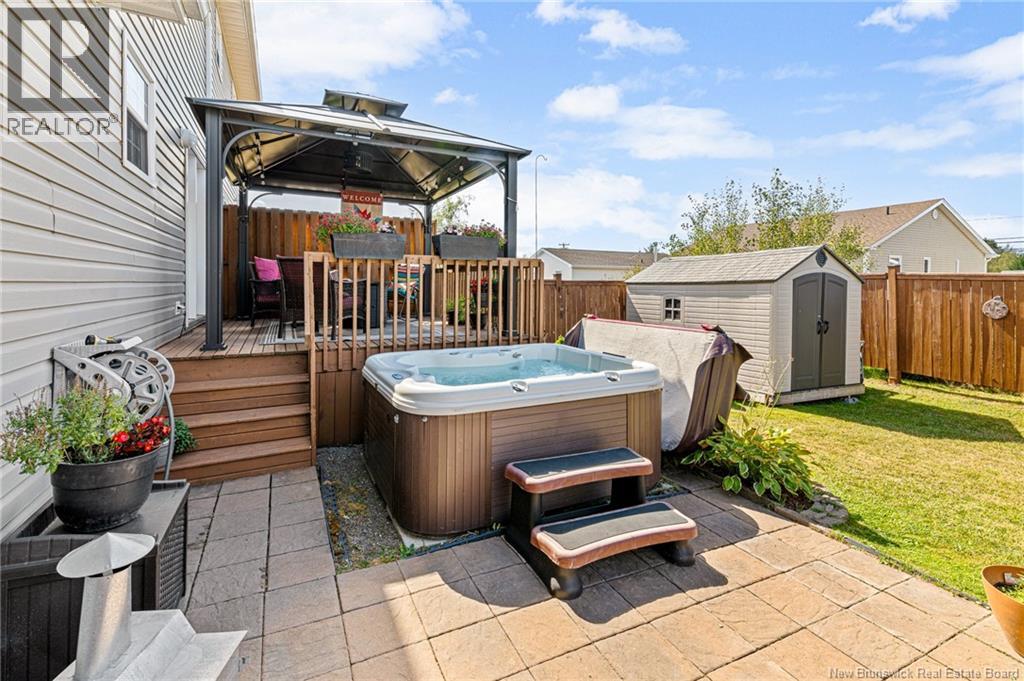 Welcome to 24 Danube a charming semi-detached home with attached garage, located on a quiet court in Dieppe. This well-maintained property features a brand-new garage door and a double paved driveway. Inside, youll find a spacious living room with hardwood floors, leading into an open-concept kitchen complete with a center island, birch cabinetry, pantry, and a convenient half bath. Upstairs, the primary bedroom impresses with a walk-in closet and patio doors to a private balcony. A second bedroom and a luxurious 5-piece bathroom complete the upper level, offering a double vanity, stand-up shower, and a large whirlpool tub. The finished basement adds even more living space with a large family room, dedicated office, and laundry/storage area. Outside, enjoy the FULLY FENCED YARD, ideal for kids or pets, plus a HOT TUB for year-round relaxation. Additional features include: 3 mini-split heat pumps, a 2-year-old roof, and excellent curb appeal in a desirable neighborhood. Call today for more info or for your private viewing. For your convenience floor plan and virtual tour attached. (id:19018)