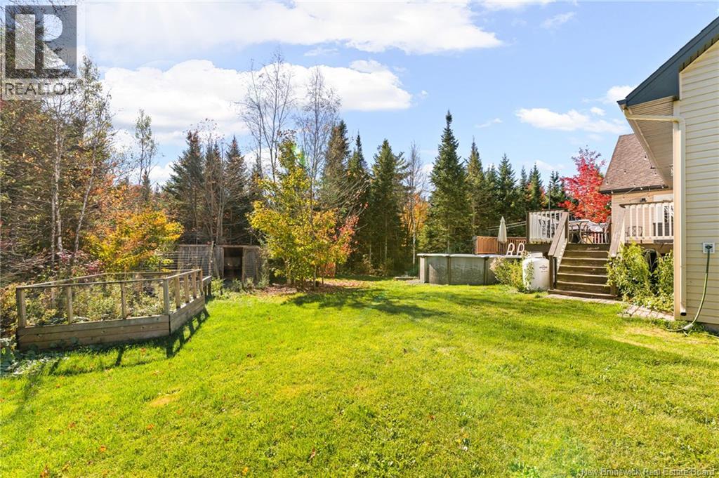 Welcome to 255 Malakoff in Scoudouc, a stunning Chris Franklin built bungalow that beautifully balances craftsmanship, warmth, and modern living. Tucked away on a private, 1 acre treed lot. This home offers the perfect retreat while still being just a short drive from city convenience. 15 mins from shediac, 17 mins from Moncton. Inside, youll find an inviting open-concept layout with vaulted ceilings and oversized windows that fill the home with natural light. The living rooms impressive stone propane fireplace adds rustic charm, while the stylish kitchen features white cabinetry, stainless steel appliances and a large butcher block island perfect for cooking, entertaining, or gathering with family. The main level also includes a spacious primary bedroom complete with a private ensuite and walk in closet, plus a convenient half bath for guests, main-level laundry, and a mudroom with direct access from the attached double garage. The fully finished basement provides even more living space with two additional bedrooms, a full bathroom, and a comfortable family room ideal for a home office, media room, or teen hangout. Step outside to your private backyard paradise featuring a heated above-ground pool and a large deck surrounded by trees the ultimate space for relaxing or entertaining. With ample parking, beautiful design, and the exceptional quality that comes with a qality built home. Call today for more info or for your private viewing. (id:19018)