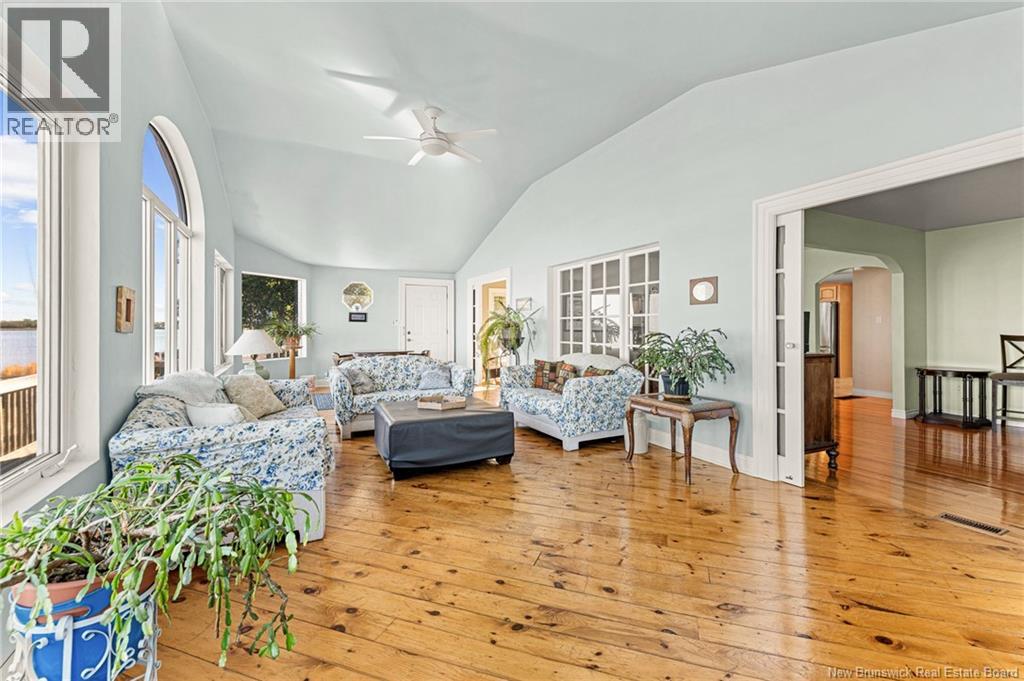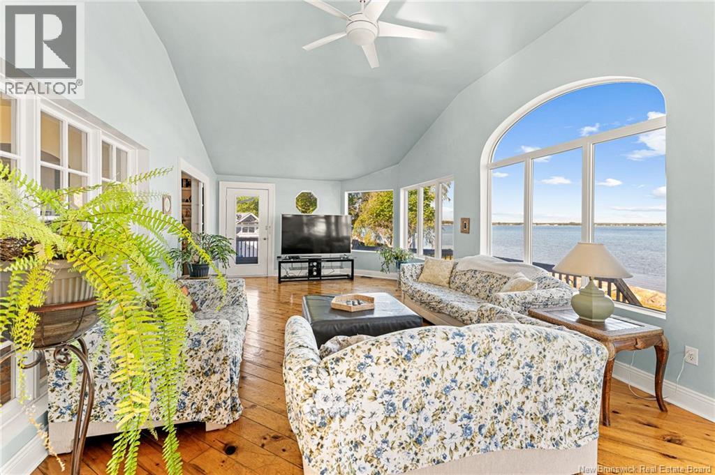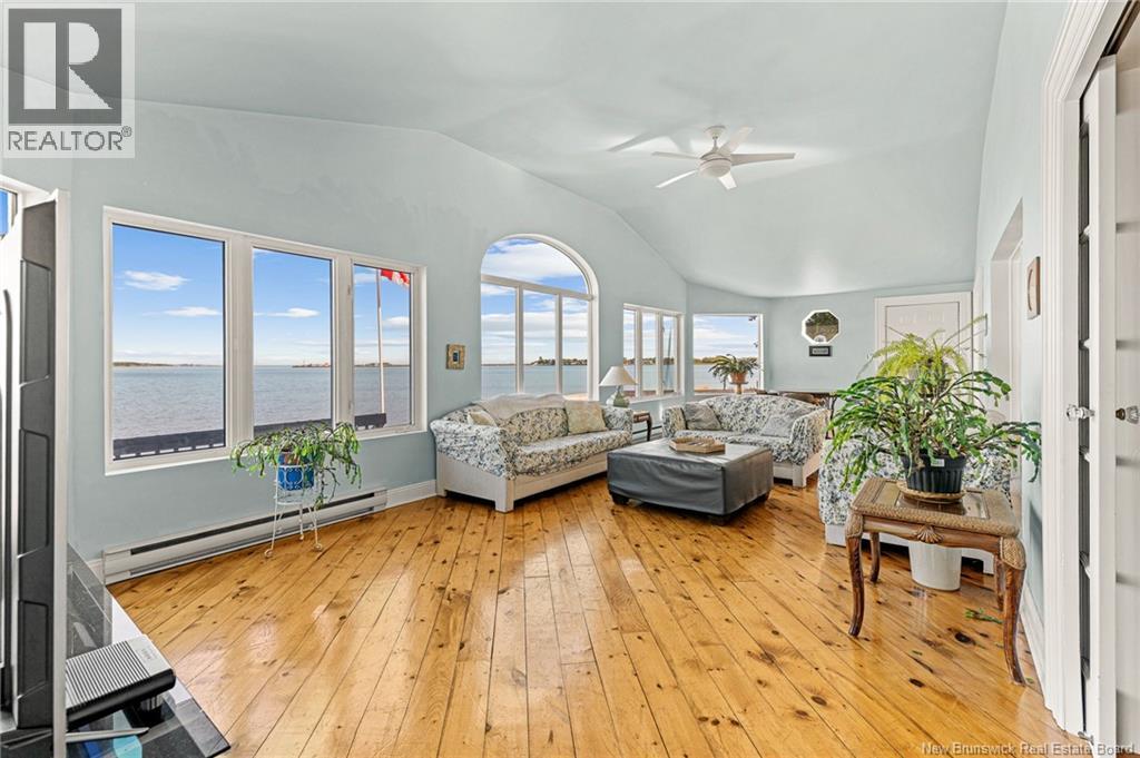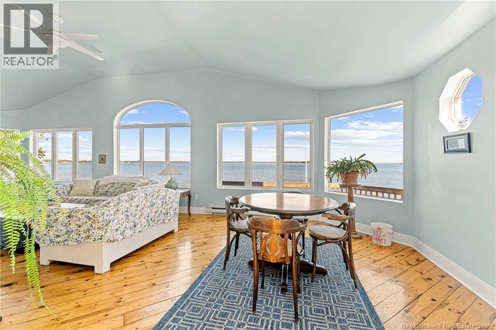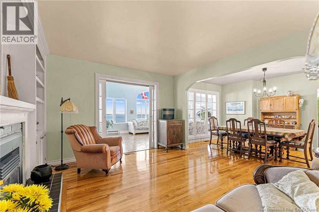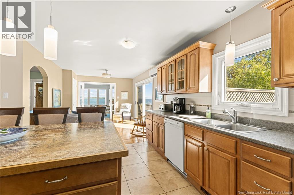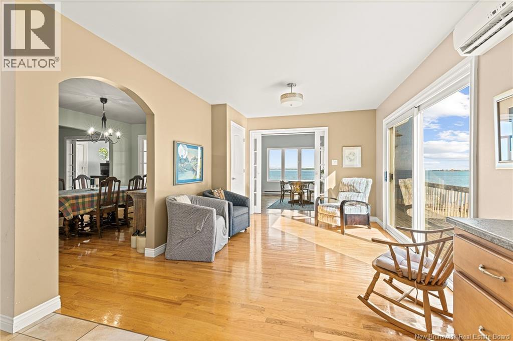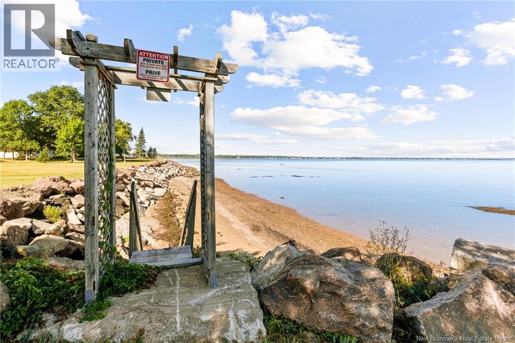 Welcome to this stunning GATED & PRIVATE, 1,961 sq. ft. waterfront home offering 180 feet of frontage on the Northumberland Strait located DIRECTLY IN SHEDIAC, NB (RARE OPPORTUNITY)!. The main floor features a spacious rear entrance, a large eat-in kitchen with adjoining dining area, a bright living room with propane fireplace, and an impressive 13' x 33' family room with cathedral ceiling and sweeping water views. A five-piece bath serves the level along with two bedrooms, including a primary suite with private three piece ensuite. The lower level offers a generous in-law suite with its own private entrance, a full kitchen, living area, bedroom, three-piece bath, and bright windows in this raised basement. Both units enjoy their own laundry, and the home is heated with geothermal plus two mini-split heat pumps. A detached studio (12' x 24') with open bedroom and three-piece bath adds versatile space for guests or a private office. Additional highlights include an updated kitchen (approx. 9 years ago), a large storage shed (25' x 14'), and stairs leading directly to the shoreline; perfect for enjoying all the beauty of coastal living. Great rental potential. (id:19018)