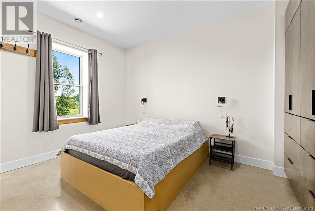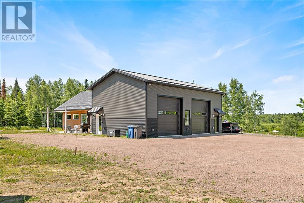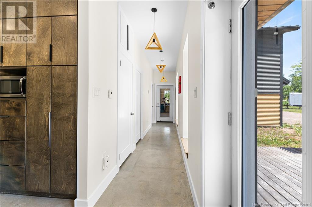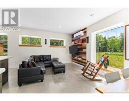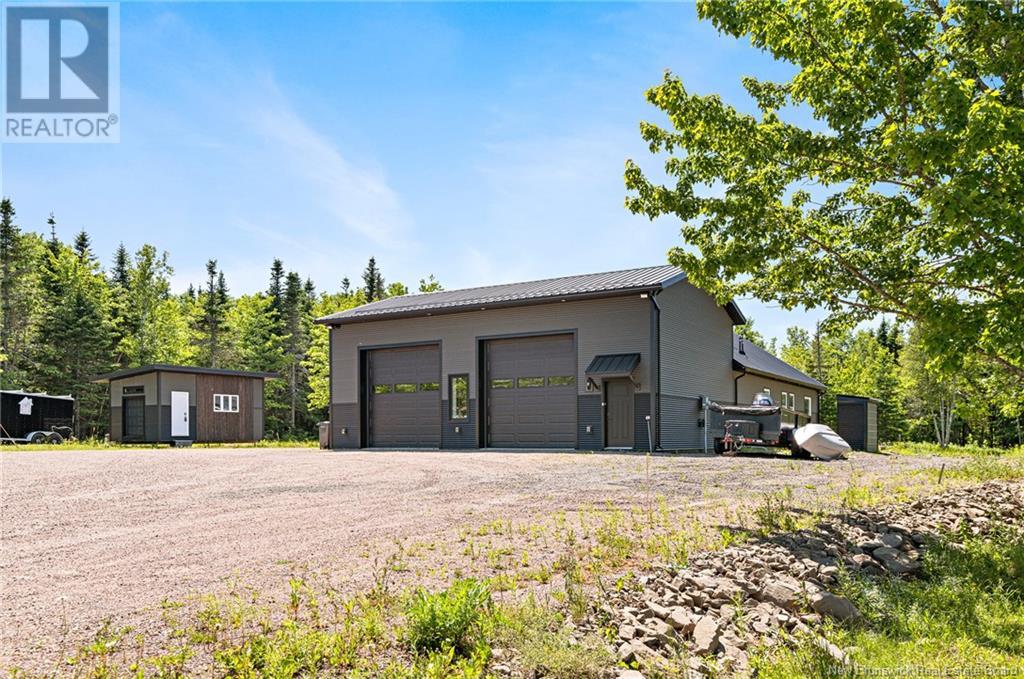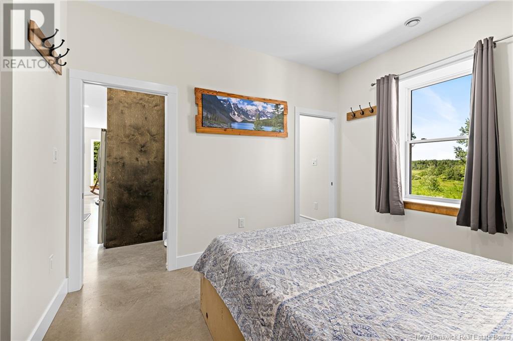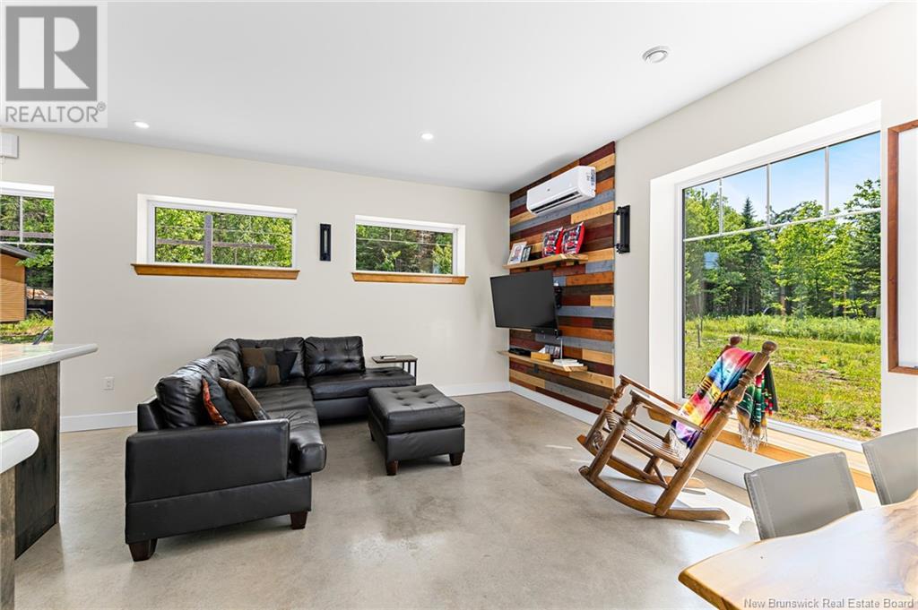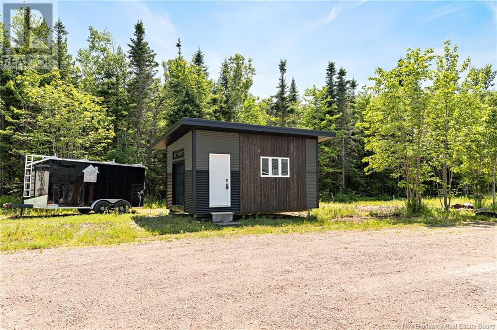 Modern High-Performance Home on 12.5 Acres | Scoudouc, NB Welcome to this one-of-a-kind, semi-passive home located in the peaceful rural community of Scoudouc, just minutes from Moncton. Built in 2020, this energy-efficient residence blends modern industrial design with premium performance features and sits on a 12.5-acre lot zoned agricultural/touristic, offering potential for 8 cottages, a motel, or other destination development. This property boasts 825 sq. ft. of beautifully finished living space plus an impressive 1,000 sq. ft. ICF-insulated garage with radiant in-floor heating in both house and garage (4 zones), triple-pane Kohltech windows, R-70 attic insulation, and a slab-on-grade ICF foundation with under-slab insulation for maximum efficiency. The main home includes 1 bedroom with custom built-ins, a luxurious ensuite with tiled rain shower, and high-end finishes such as cement floors, epoxy cement countertops, soft-close Russian plywood cabinetry, pocket doors throughout, and baseboard lighting. The fully wired garage features 12x12 doors, linear floor drains, a half bath, industrial shelving, and a 50 Amp EV/RV plug, making it perfect for both hobbyists and professionals. The property also includes a 12x24 deck, 12x24 storage shed on helical piles, U-shaped driveway large enough for a semi-truck, underground services, outdoor lighting with timers, and much more. Contact your REALTOR® today to schedule your private showing. (id:19018)