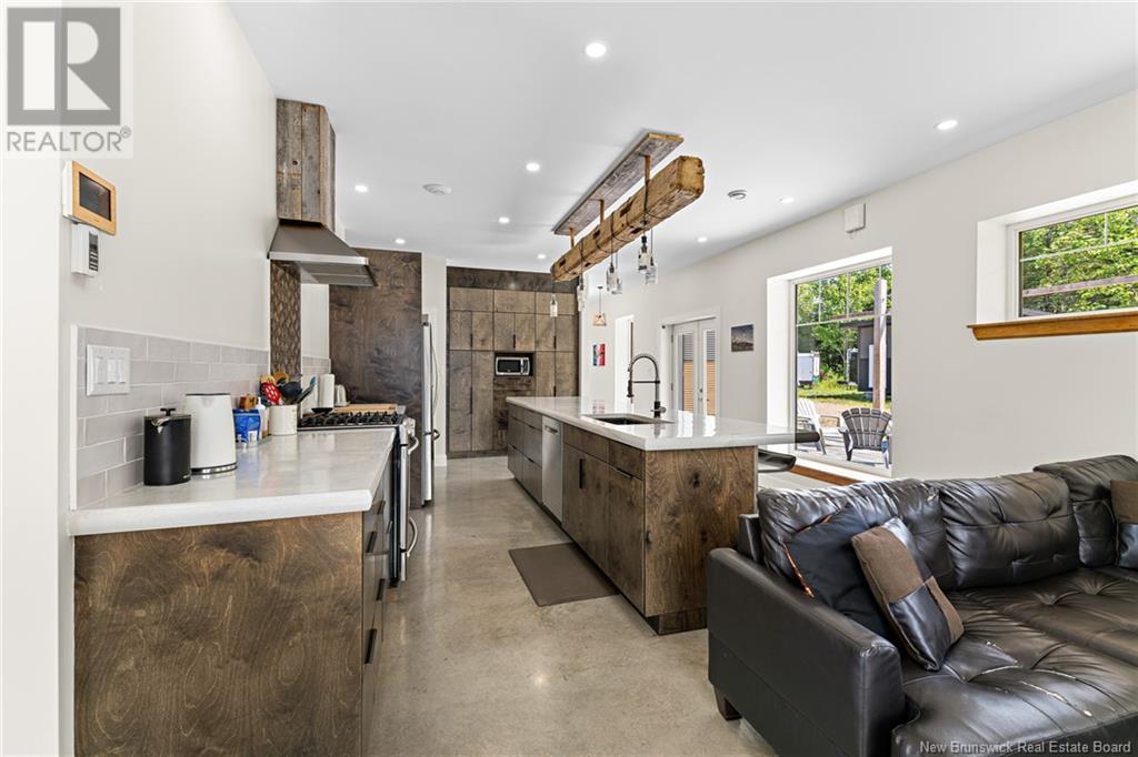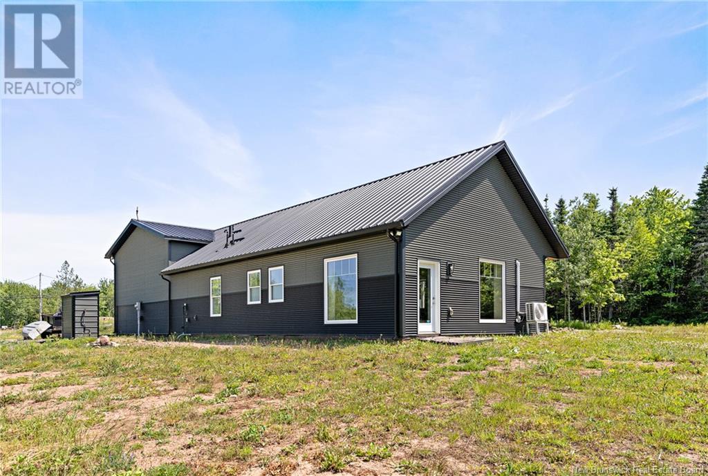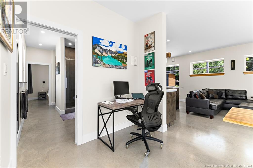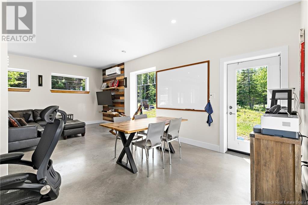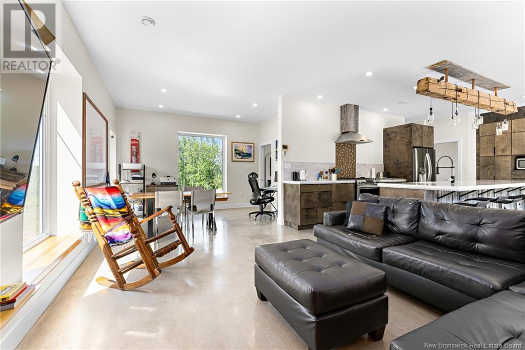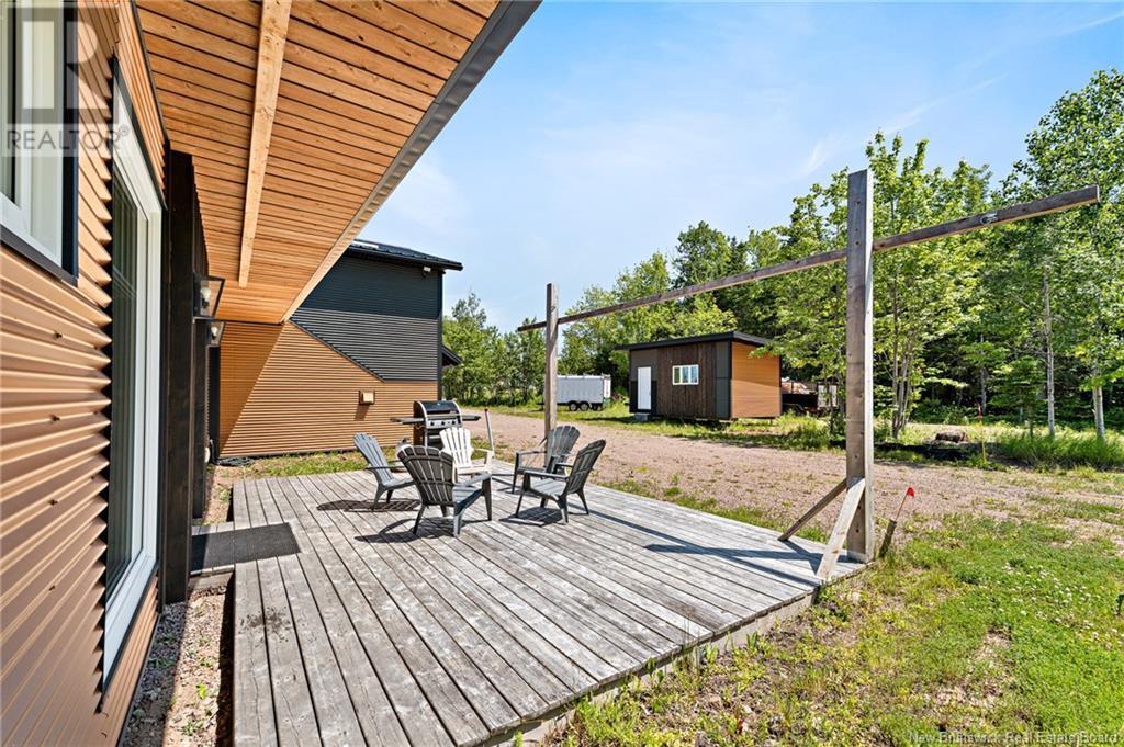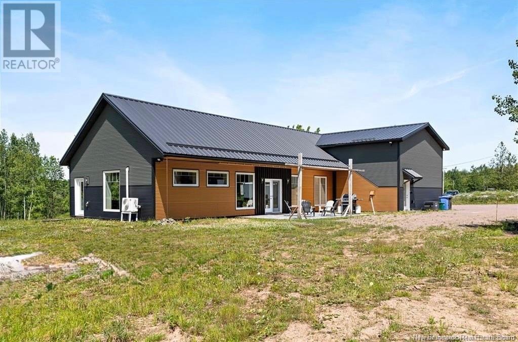 Modern High-Performance Home on 12.5 Acres | Scoudouc, NB Welcome to this one-of-a-kind, semi-passive home located in the peaceful rural community of Scoudouc, just minutes from Moncton. Built in 2020, this energy-efficient residence blends modern industrial design with premium performance features and sits on a 12.5-acre lot zoned agricultural/touristic, offering potential for 8 cottages, a motel, or other destination development. This property boasts 825 sq. ft. of beautifully finished living space plus an impressive 1,000 sq. ft. ICF-insulated garage with radiant in-floor heating in both house and garage (4 zones), triple-pane Kohltech windows, R-70 attic insulation, and a slab-on-grade ICF foundation with under-slab insulation for maximum efficiency. The main home includes 1 bedroom with custom built-ins, a luxurious ensuite with tiled rain shower, and high-end finishes such as cement floors, epoxy cement countertops, soft-close Russian plywood cabinetry, pocket doors throughout, and baseboard lighting. The fully wired garage features 12x12 doors, linear floor drains, a half bath, industrial shelving, and a 50 Amp EV/RV plug, making it perfect for both hobbyists and professionals. The property also includes a 12x24 deck, 12x24 storage shed on helical piles, U-shaped driveway large enough for a semi-truck, underground services, outdoor lighting with timers, and much more. Contact your REALTOR® today to schedule your private showing. (id:19018)