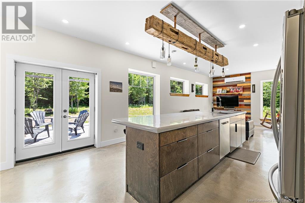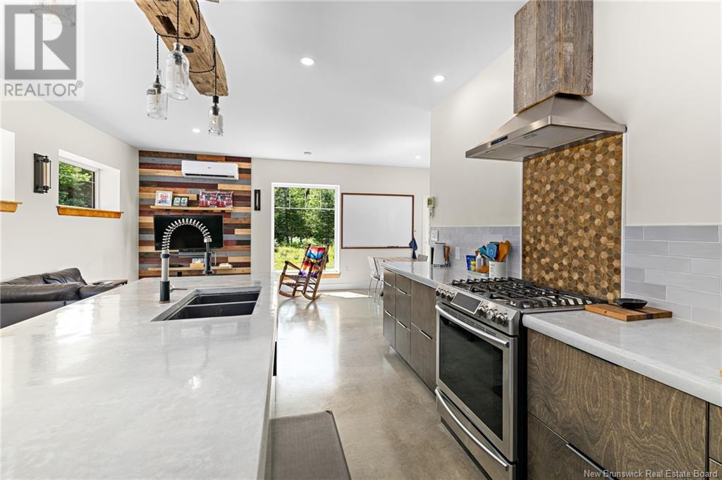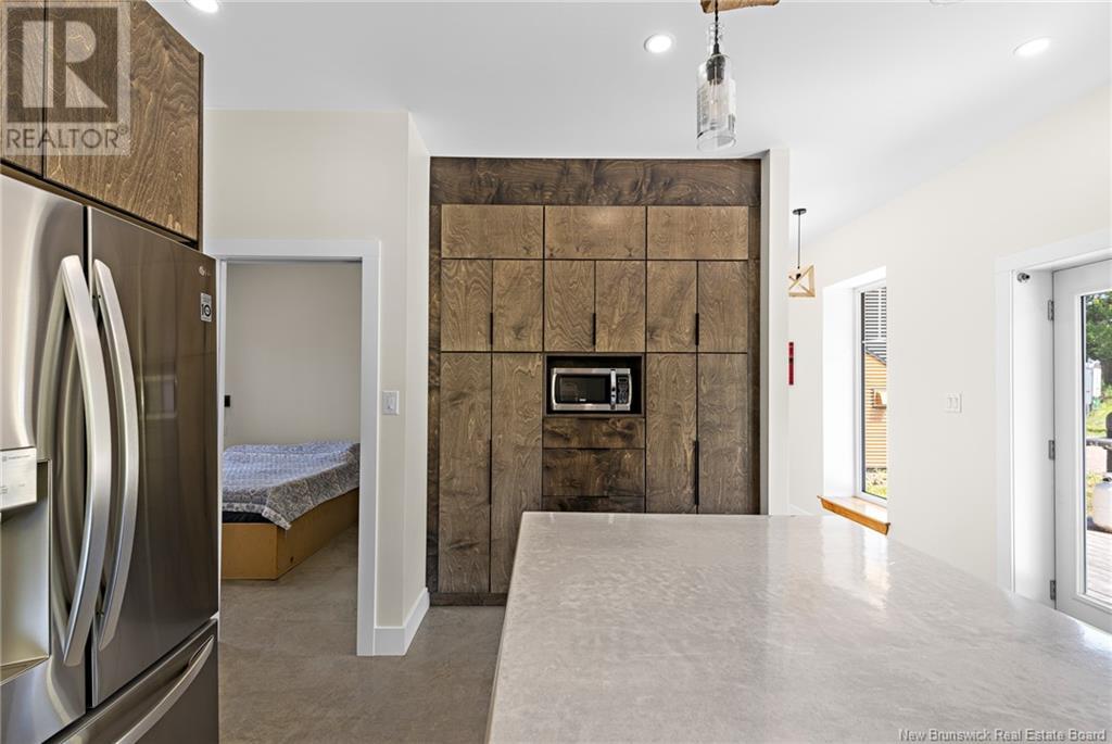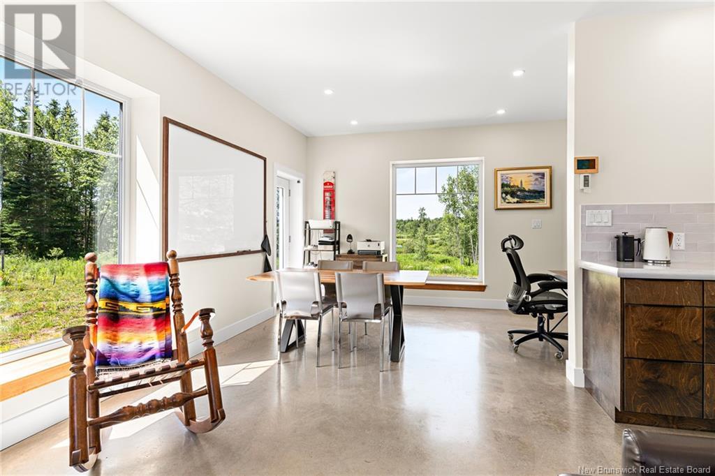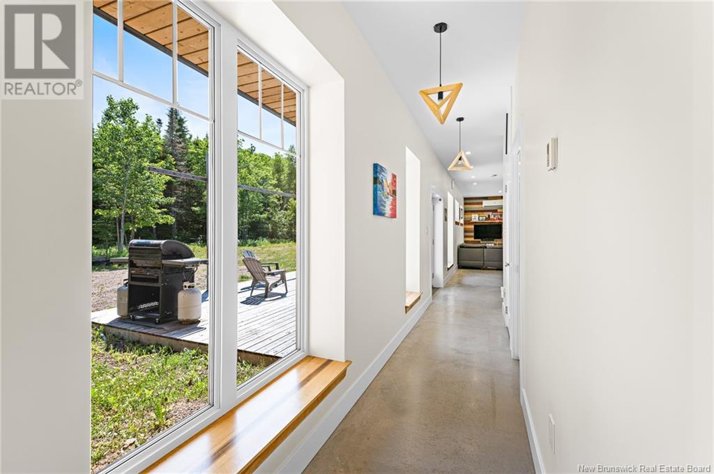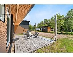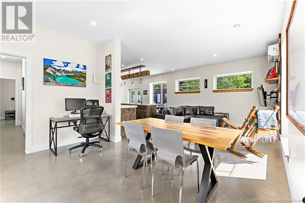 Modern High-Performance Home on 12.5 Acres | Scoudouc, NB Welcome to this one-of-a-kind, semi-passive home located in the peaceful rural community of Scoudouc, just minutes from Moncton. Built in 2020, this energy-efficient residence blends modern industrial design with premium performance features and sits on a 12.5-acre lot zoned agricultural/touristic, offering potential for 8 cottages, a motel, or other destination development. This property boasts 825 sq. ft. of beautifully finished living space plus an impressive 1,000 sq. ft. ICF-insulated garage with radiant in-floor heating in both house and garage (4 zones), triple-pane Kohltech windows, R-70 attic insulation, and a slab-on-grade ICF foundation with under-slab insulation for maximum efficiency. The main home includes 1 bedroom with custom built-ins, a luxurious ensuite with tiled rain shower, and high-end finishes such as cement floors, epoxy cement countertops, soft-close Russian plywood cabinetry, pocket doors throughout, and baseboard lighting. The fully wired garage features 12x12 doors, linear floor drains, a half bath, industrial shelving, and a 50 Amp EV/RV plug, making it perfect for both hobbyists and professionals. The property also includes a 12x24 deck, 12x24 storage shed on helical piles, U-shaped driveway large enough for a semi-truck, underground services, outdoor lighting with timers, and much more. Contact your REALTOR® today to schedule your private showing. (id:19018)