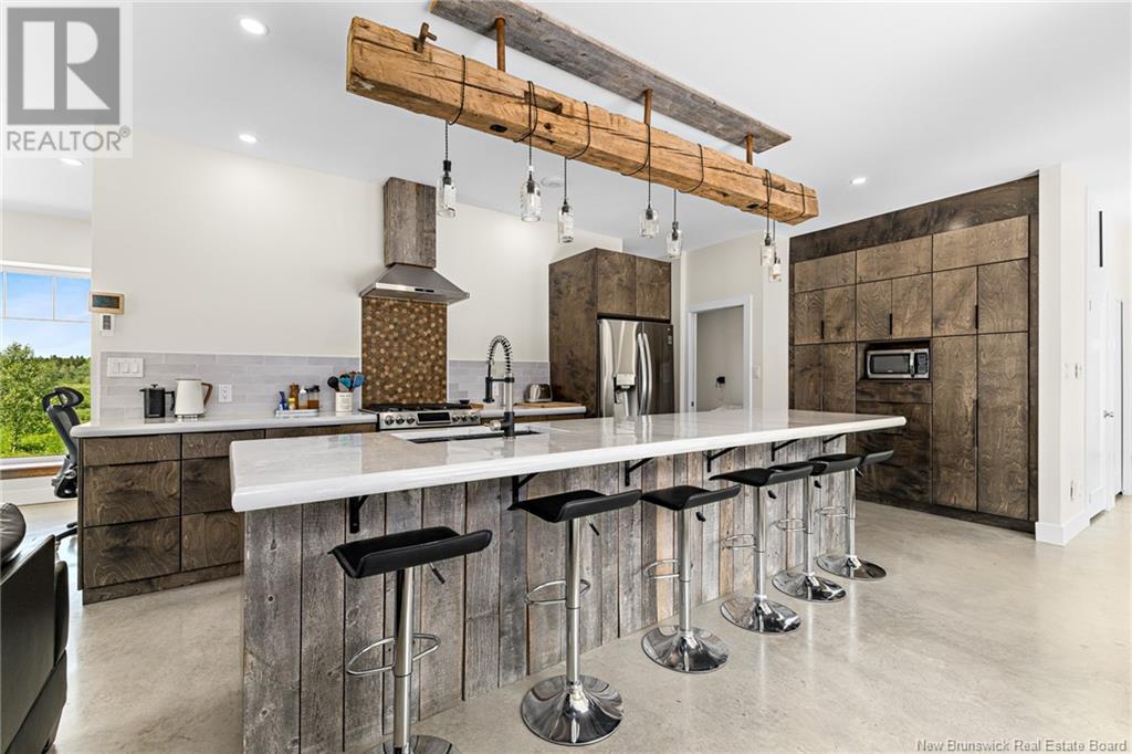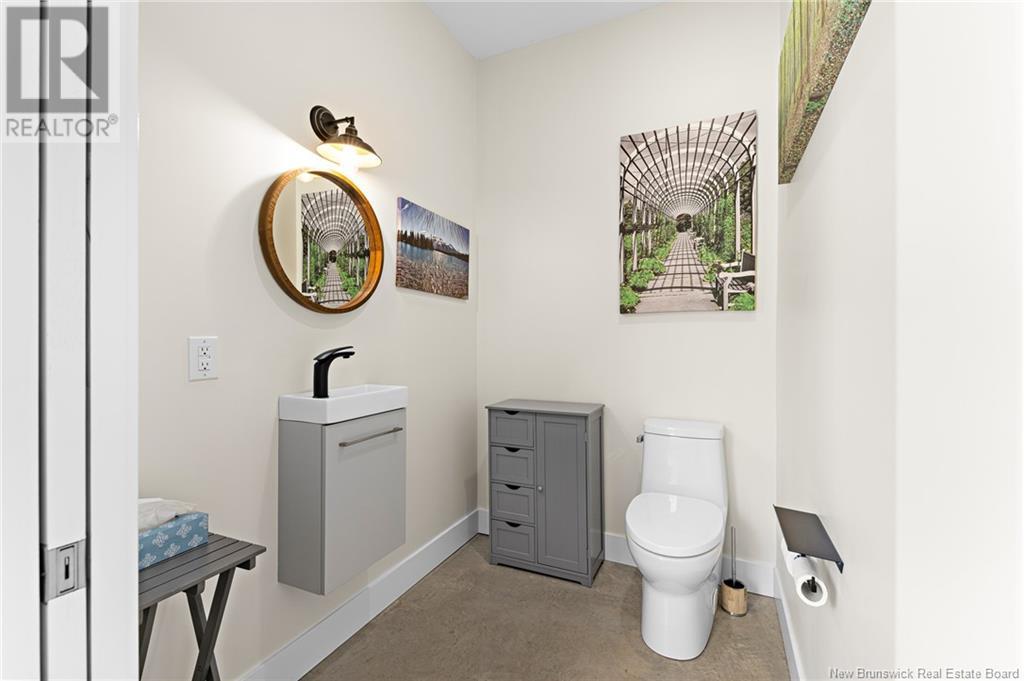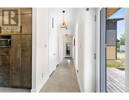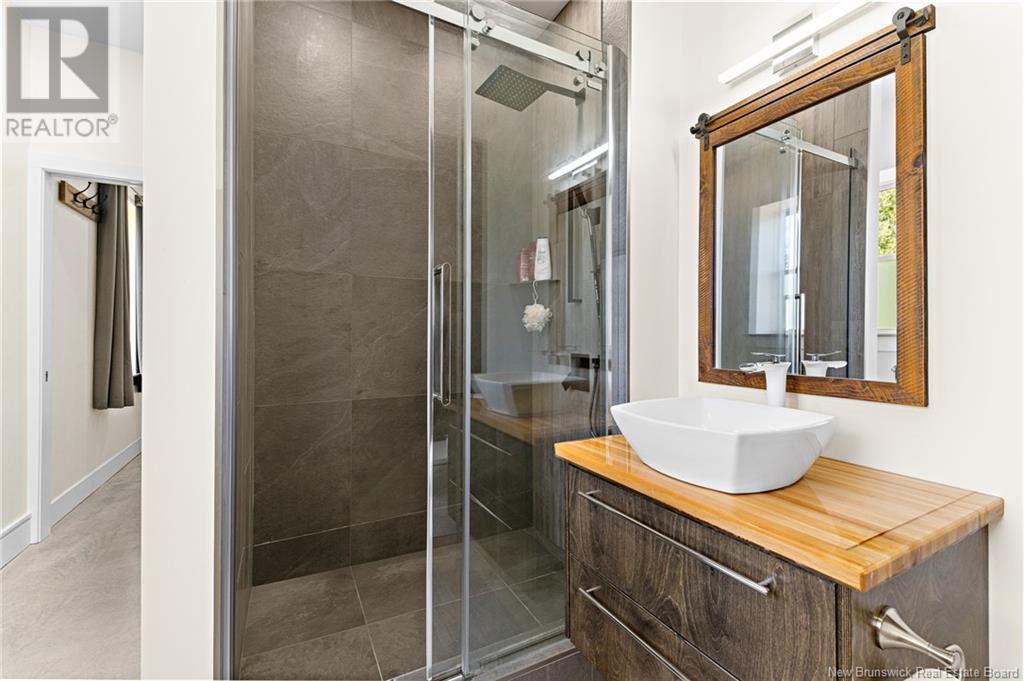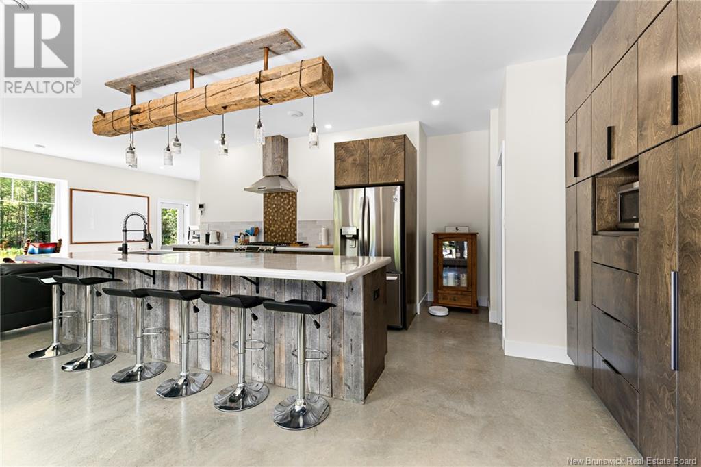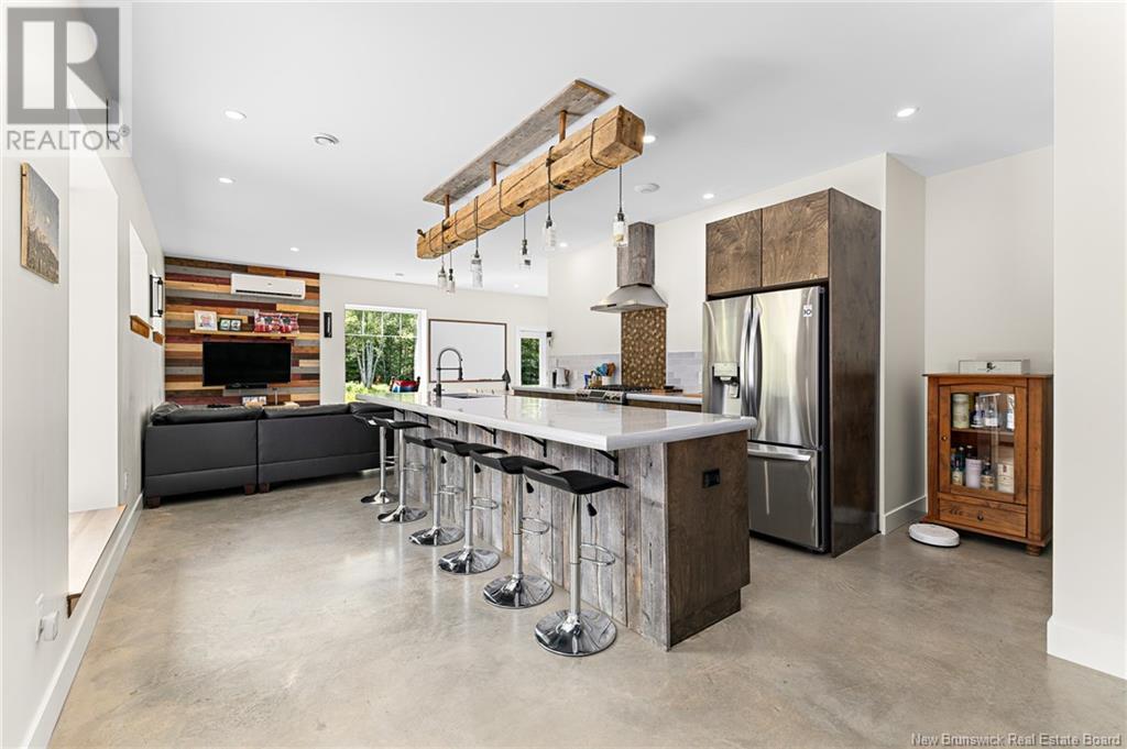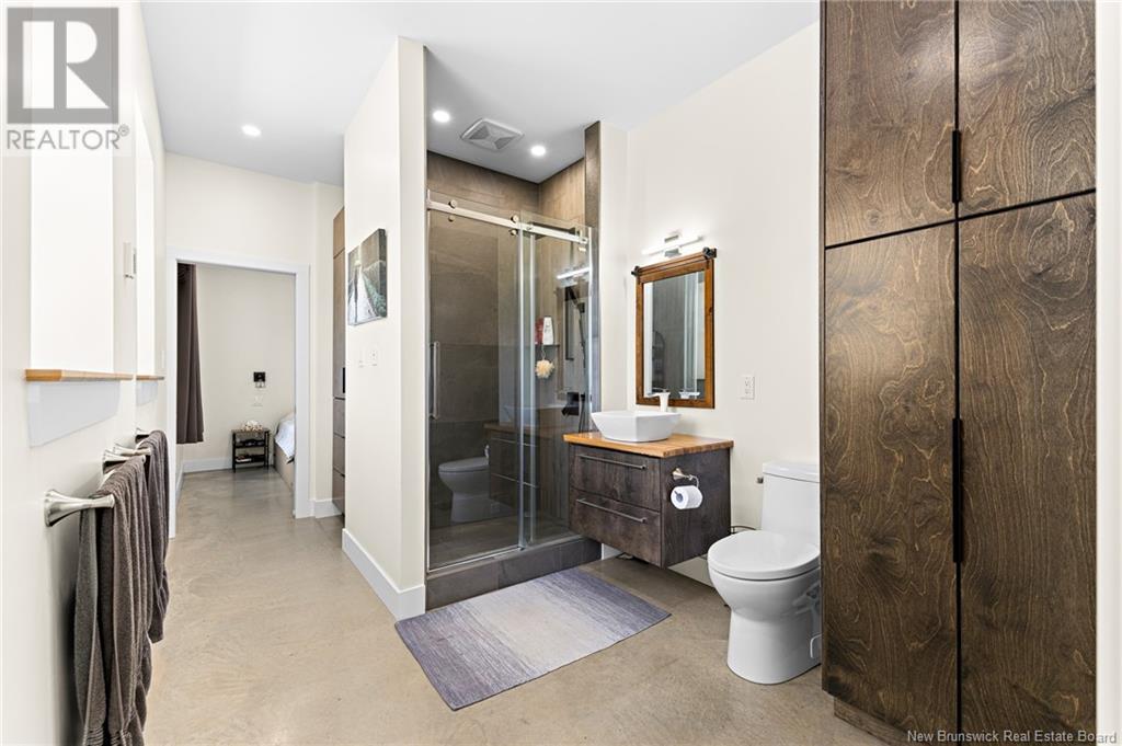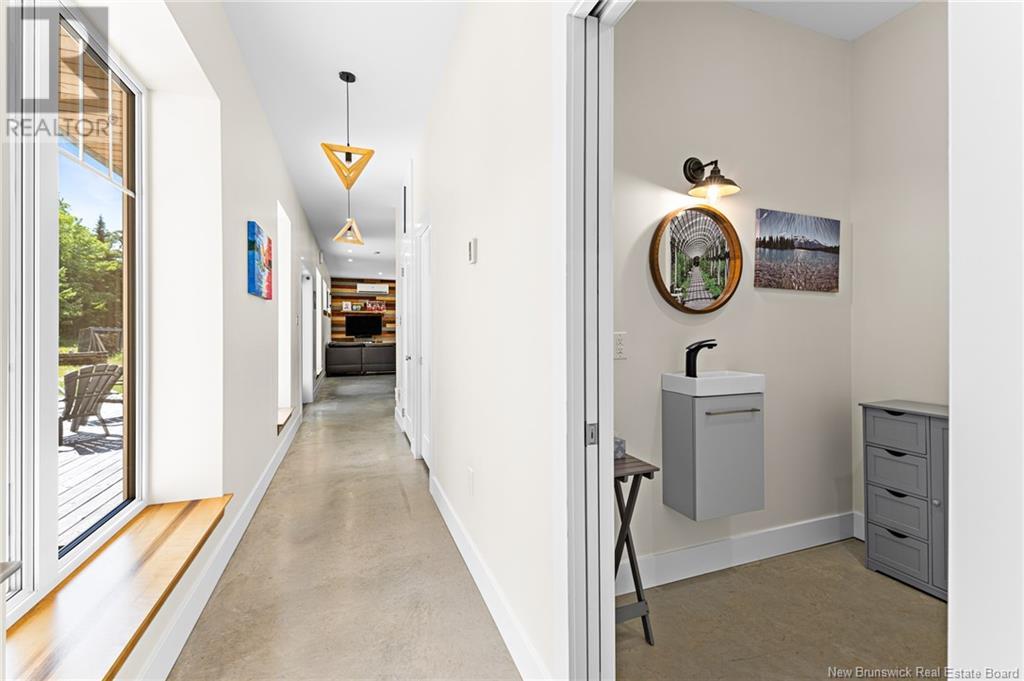 Modern High-Performance Home on 12.5 Acres | Scoudouc, NB Welcome to this one-of-a-kind, semi-passive home located in the peaceful rural community of Scoudouc, just minutes from Moncton. Built in 2020, this energy-efficient residence blends modern industrial design with premium performance features and sits on a 12.5-acre lot zoned agricultural/touristic, offering potential for 8 cottages, a motel, or other destination development. This property boasts 825 sq. ft. of beautifully finished living space plus an impressive 1,000 sq. ft. ICF-insulated garage with radiant in-floor heating in both house and garage (4 zones), triple-pane Kohltech windows, R-70 attic insulation, and a slab-on-grade ICF foundation with under-slab insulation for maximum efficiency. The main home includes 1 bedroom with custom built-ins, a luxurious ensuite with tiled rain shower, and high-end finishes such as cement floors, epoxy cement countertops, soft-close Russian plywood cabinetry, pocket doors throughout, and baseboard lighting. The fully wired garage features 12x12 doors, linear floor drains, a half bath, industrial shelving, and a 50 Amp EV/RV plug, making it perfect for both hobbyists and professionals. The property also includes a 12x24 deck, 12x24 storage shed on helical piles, U-shaped driveway large enough for a semi-truck, underground services, outdoor lighting with timers, and much more. Contact your REALTOR® today to schedule your private showing. (id:19018)