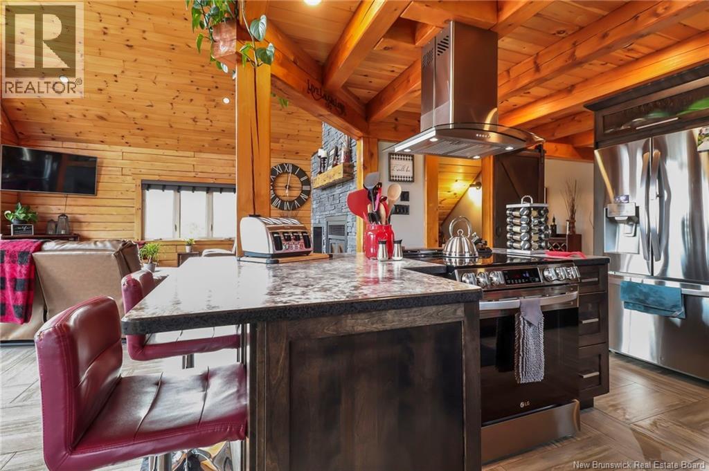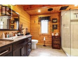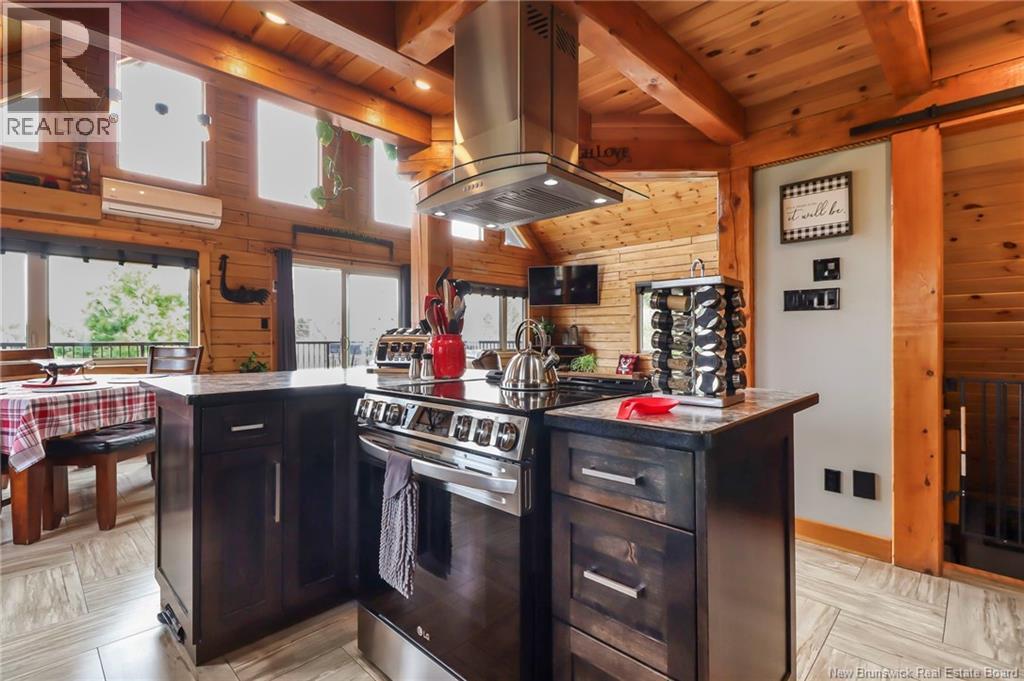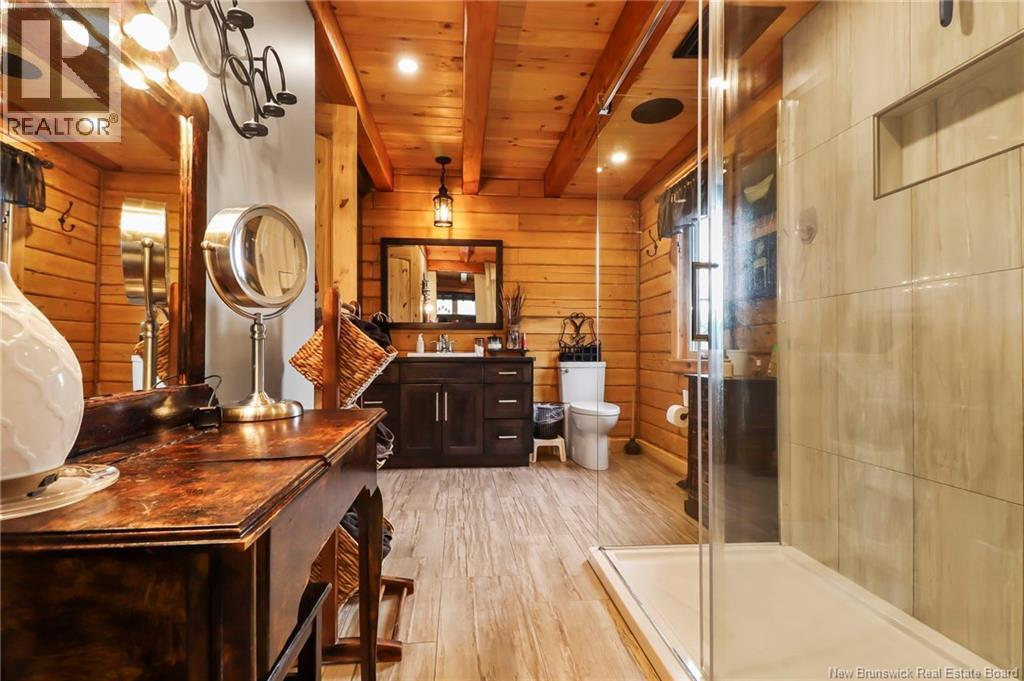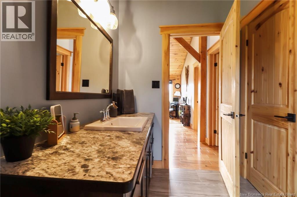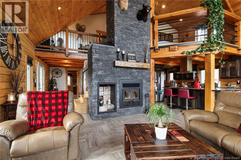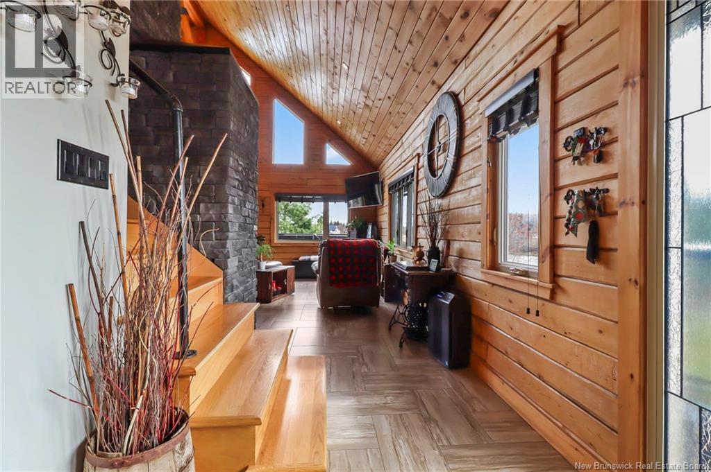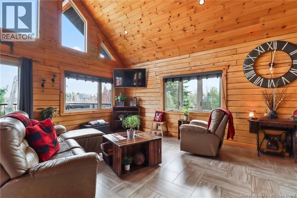 Welcome to 31 Clearview Road, nestled alongside the picturesque Aboujagane River . This charming log house boasts an abundance of natural sunlight that fills the living room and second floor. The spacious kitchen and living room feature soaring 20-foot ceilings and a stunning wood fireplace, creating a warm and inviting atmosphere. The primary bedroom, located on the main floor, offers a generous walk-in closet and an adjoining Jack-and-Jill bathroom. The upper level boasts a spacious bonus room with stunning views of the river, two generously sized bedrooms, and a three-piece bathroom. This layout is perfect for entertaining guests or enjoying a quiet retreat with picturesque scenery . Additionally, there are two generously sized bedrooms, perfect for family or guests, along with a well-appointed three-piece bathroom for convenience. This layout combines comfort and functionality, creating an inviting atmosphere. Lets not forget the hot tub off the main floor patio! The lower level has a great size Family room and also the garage is used as a walk-out to the backyard to fully enjoy summer BBQ season and has lovely views that comes with living on the river! Also the lower level has a laundry room , 3 pcs bath and plenty of storage. The family room has a pool table TV and will be great for family and friends. Now this is living on the river will look like . (id:19018)