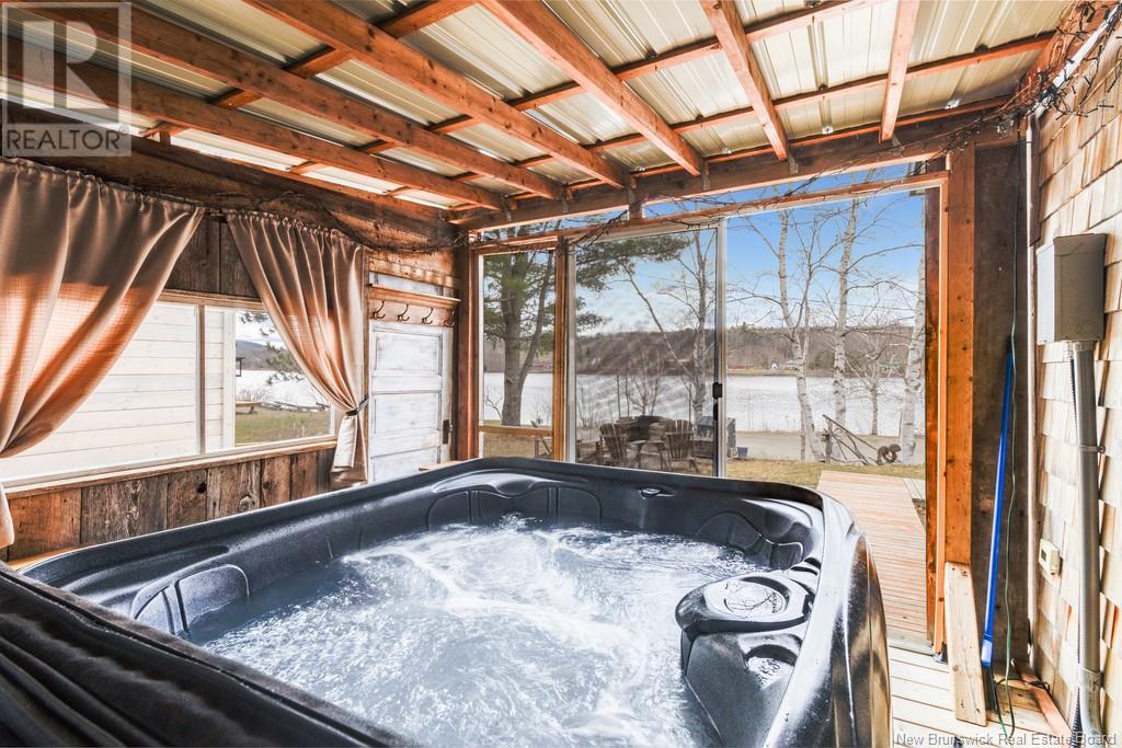Stunning Sunsets & Tranquil Mornings Await. This 3 bedroom, 2 bath Executive Bungalow holds unmatched panoramic views of the Saint John River, with world class fishing & boating right at your door step, making this a rare find & truly one level living at its finest. As an added bonus, the property includes a stand alone Luxury Cottage - 2 bedrooms, a full bath with open concept kitchen & living area, a private hot tub, steam sauna, & outdoor shower; perfect for guests or as potential income. With combined 2500 sq ft of finished space both dwellings were built with timeless style and comfort in mind. The main home centres around an open concept kitchen, living room with vaulted ceiling, exposed beam, cozy Pacific Energy Wood Stove, and hardwood floors throughout. The front of the home offers panoramic water views with access to multiple decks for dining, leisure and relaxation in a second covered hot tub. The kitchen has abundant storage with beautiful glass cabinetry, large centre island, walk-in pantry, and double farmhouse sink. The main bath is a real dream with heated floors, spacious barrier free tiled shower & double soaker bathtub. This is not your typical waterside property. This is a lifestyle where you can relax using your own spa like amenities, launch your boat right from your front yard and never worry about flooding, as the head pond is above the Mactaquac Dam. Vendors are related to the listing sales person who is licensed with the province of New Brunswick (id:19018)